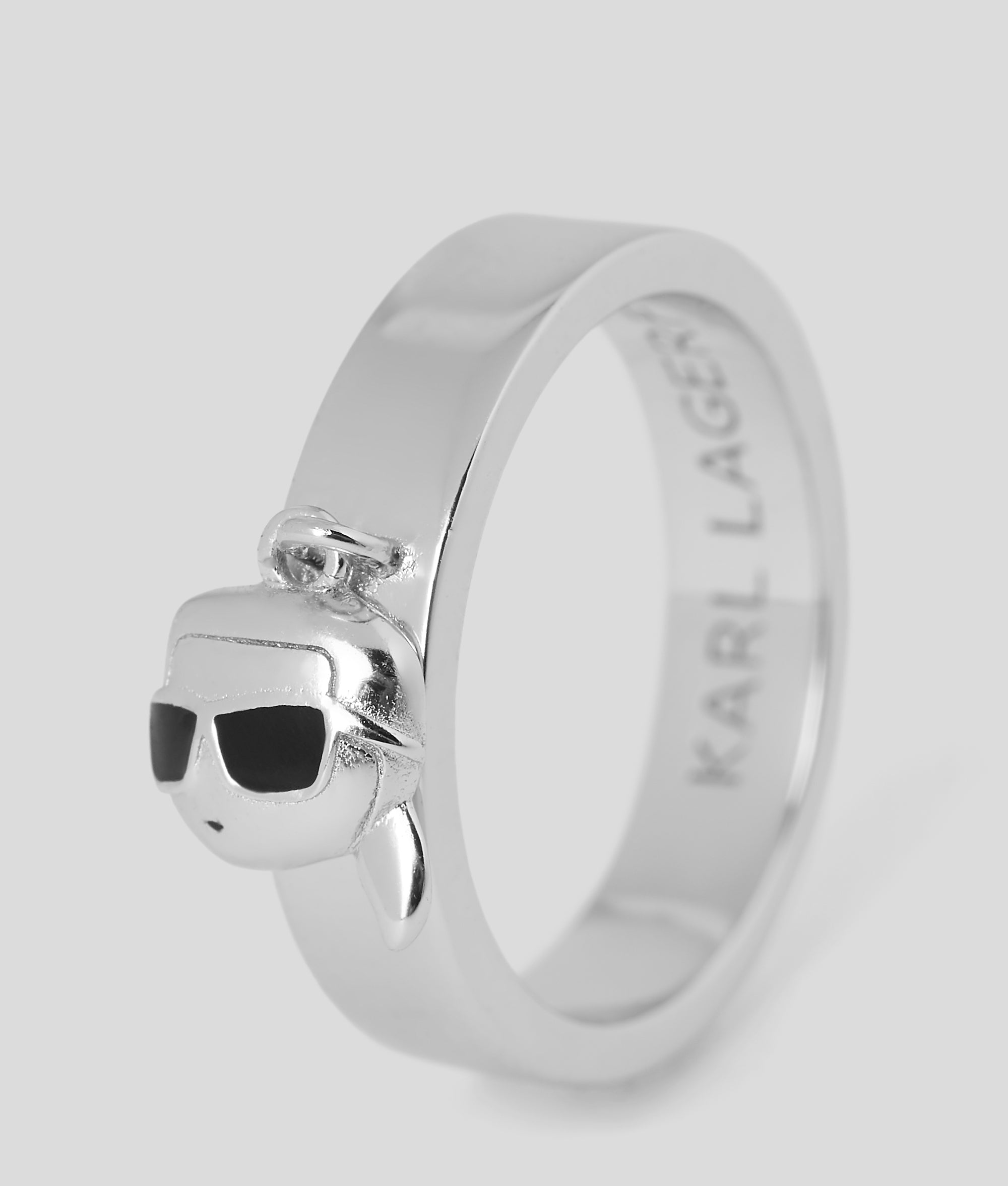 Ein massiver Bandring mit einem verspielten IKON Karl-Anhänger. Tragen Sie ihn einzeln als Statement-Teil oder im Rahmen eines kuratierten Lagenlooks.