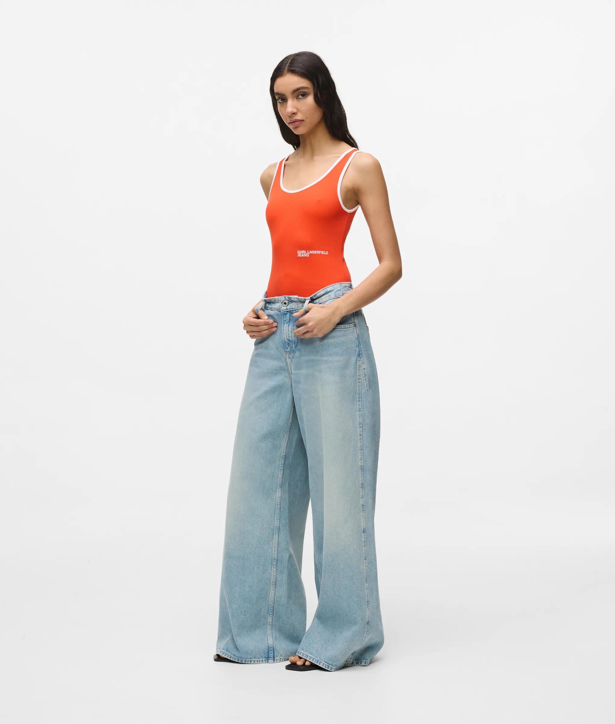 Entdecken Sie einen figurbetonenden Body, der mühelos Komfort und Stilsicherheit auf sich vereint. Das gerippte Gewebe erzeugt eine elegante Silhouette, die von einer farblich abgesetzten Paspelierung umrandet wird. Eine KARL LAGERFELD JEANS-Logostickerei rundet diesen für jede moderne Garderobe unverzichtbaren Style ab.