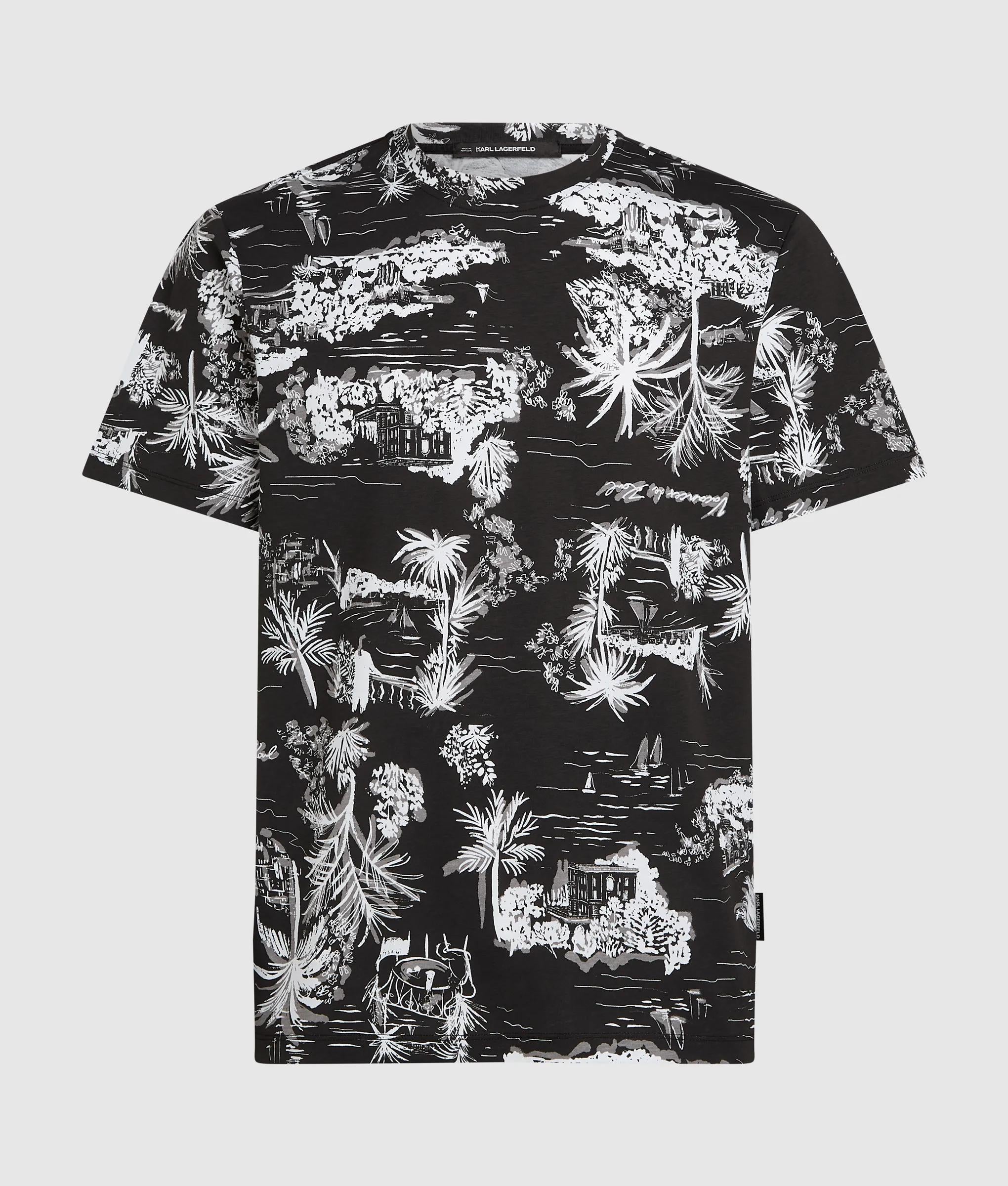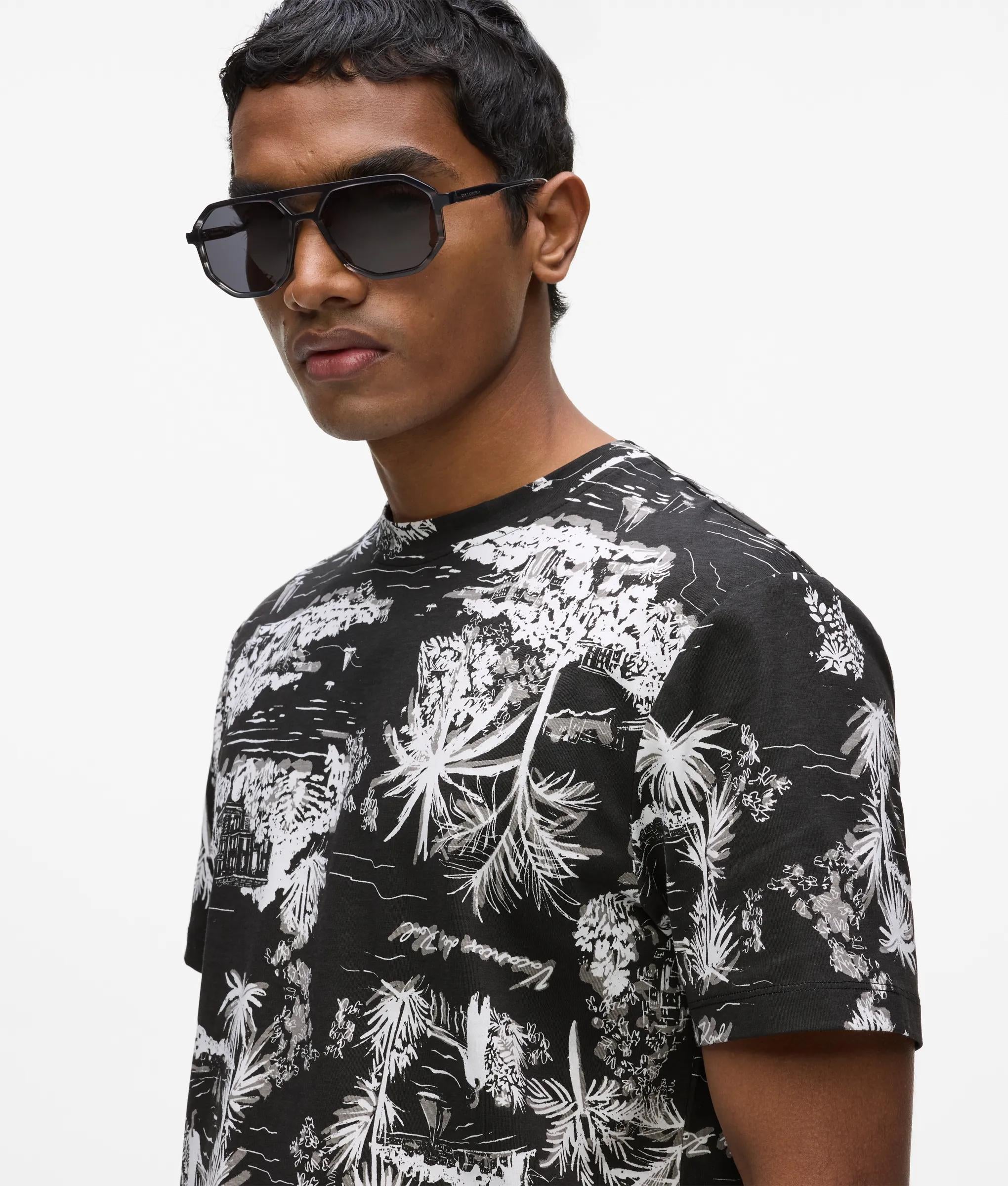 Sonnenlicht, das üppige tropische Gärten durchdringt, spiegelt sich in diesem klassischen T-Shirt mit Rundhalsausschnitt wider. Luftige Ärmel und Bio-Baumwolle sorgen für entspannten Tragekomfort, veredelt durch einen auffälligen, kunstvollen Aufdruck.