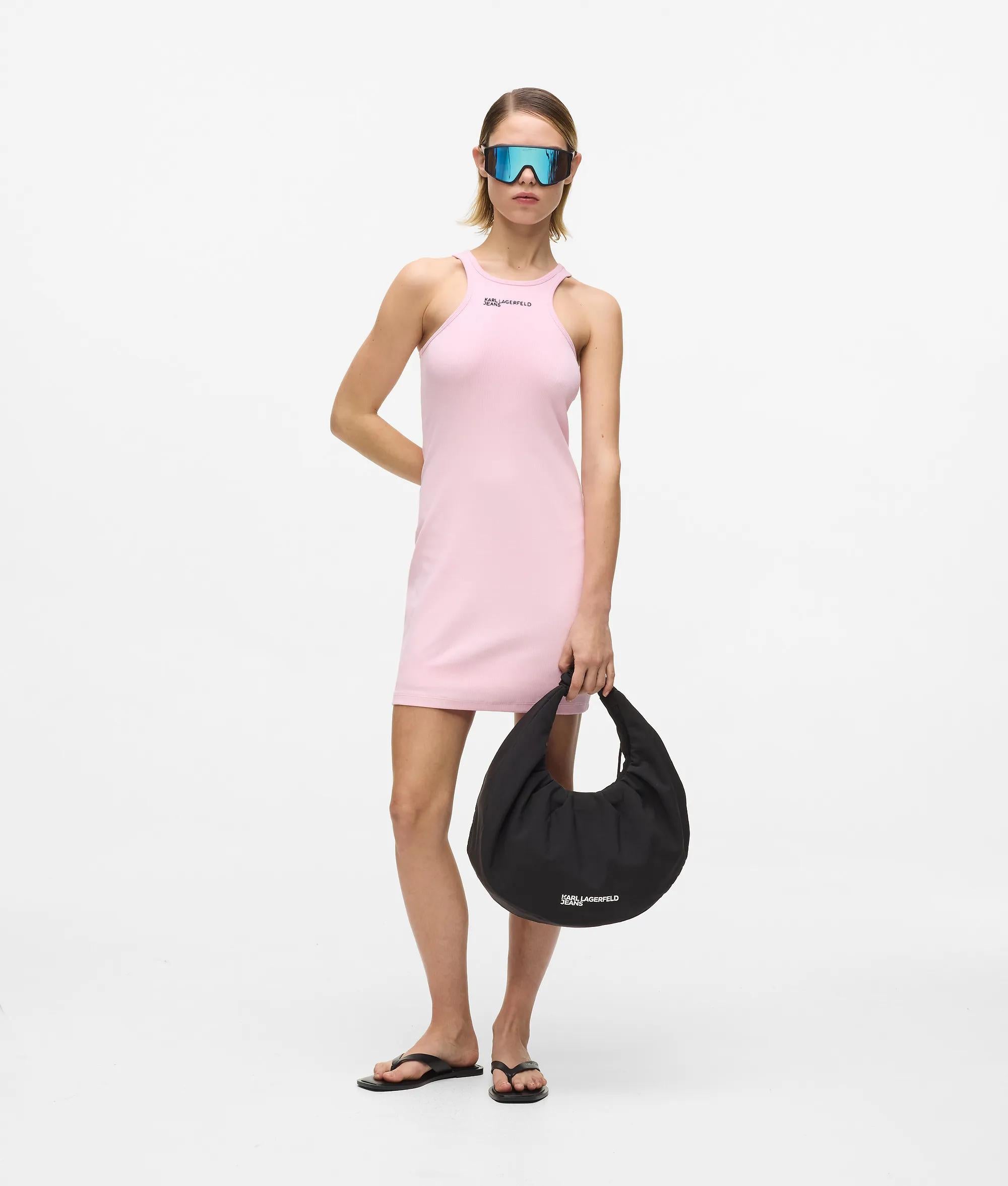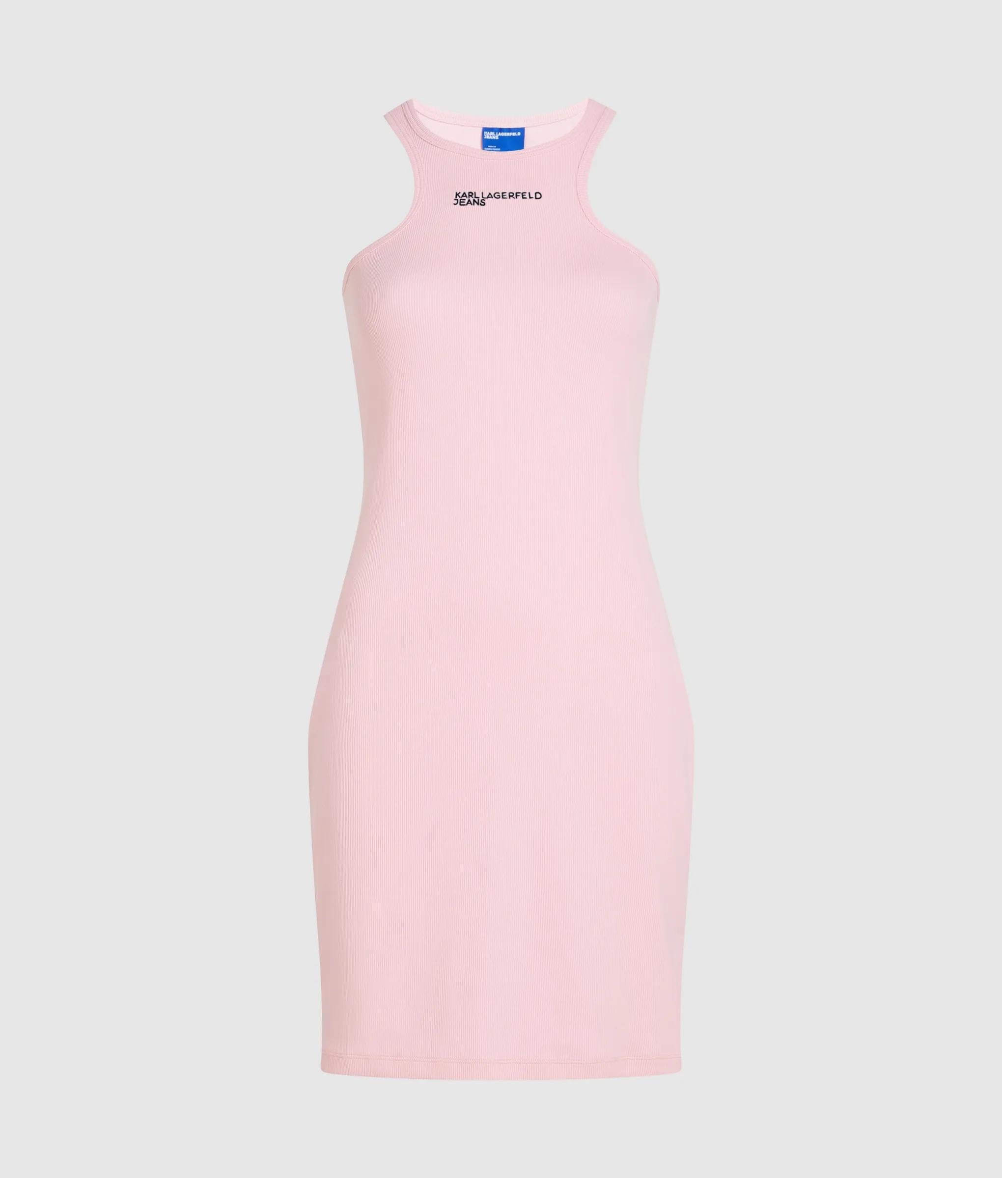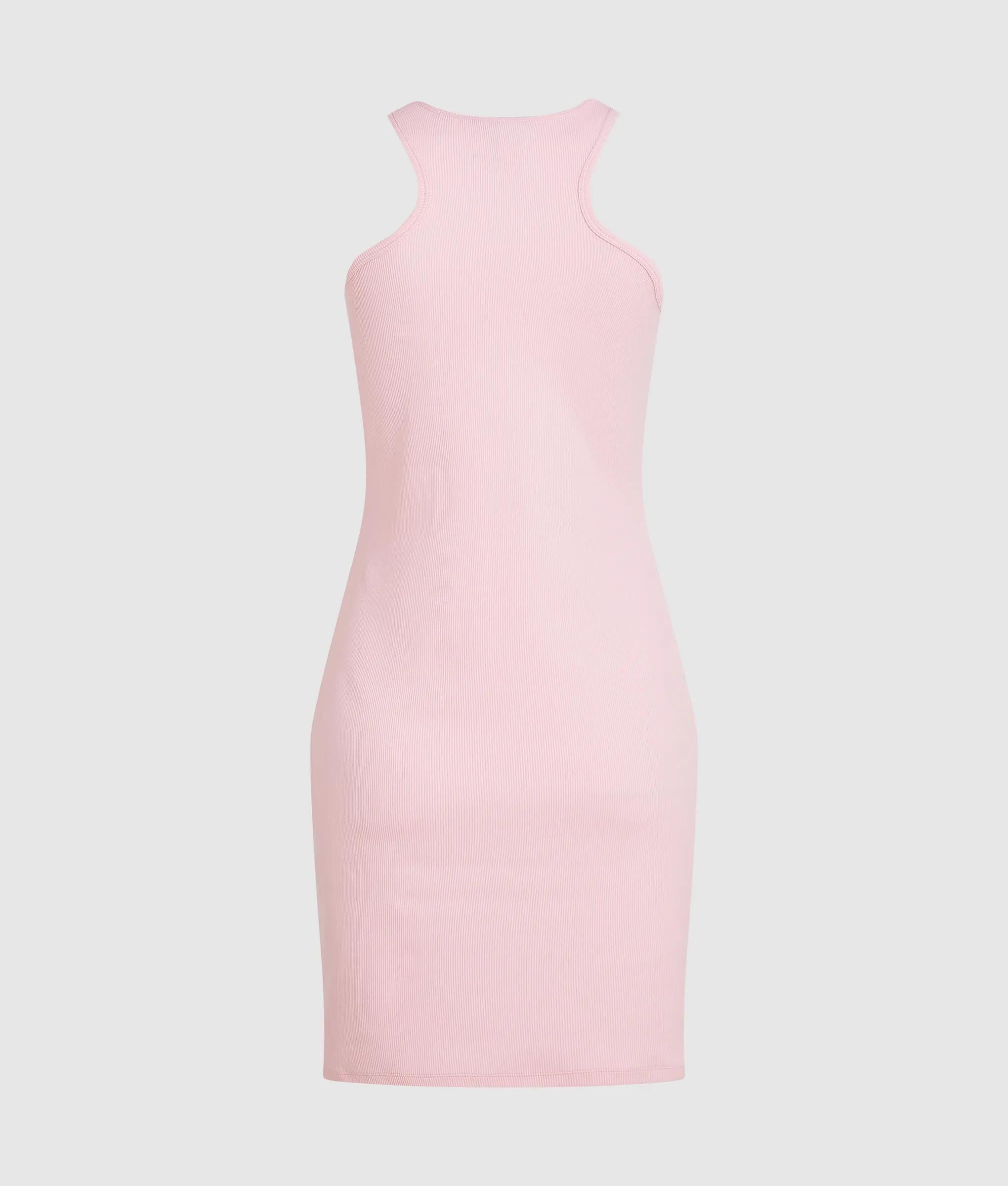 Ein elegantes, geripptes Racerback-Kleid aus weicher Bio-Baumwolle, das sich an Ihre Silhouette anschmiegt und mit markanten Logo-Details für einen mühelos coolen Look sorgt.