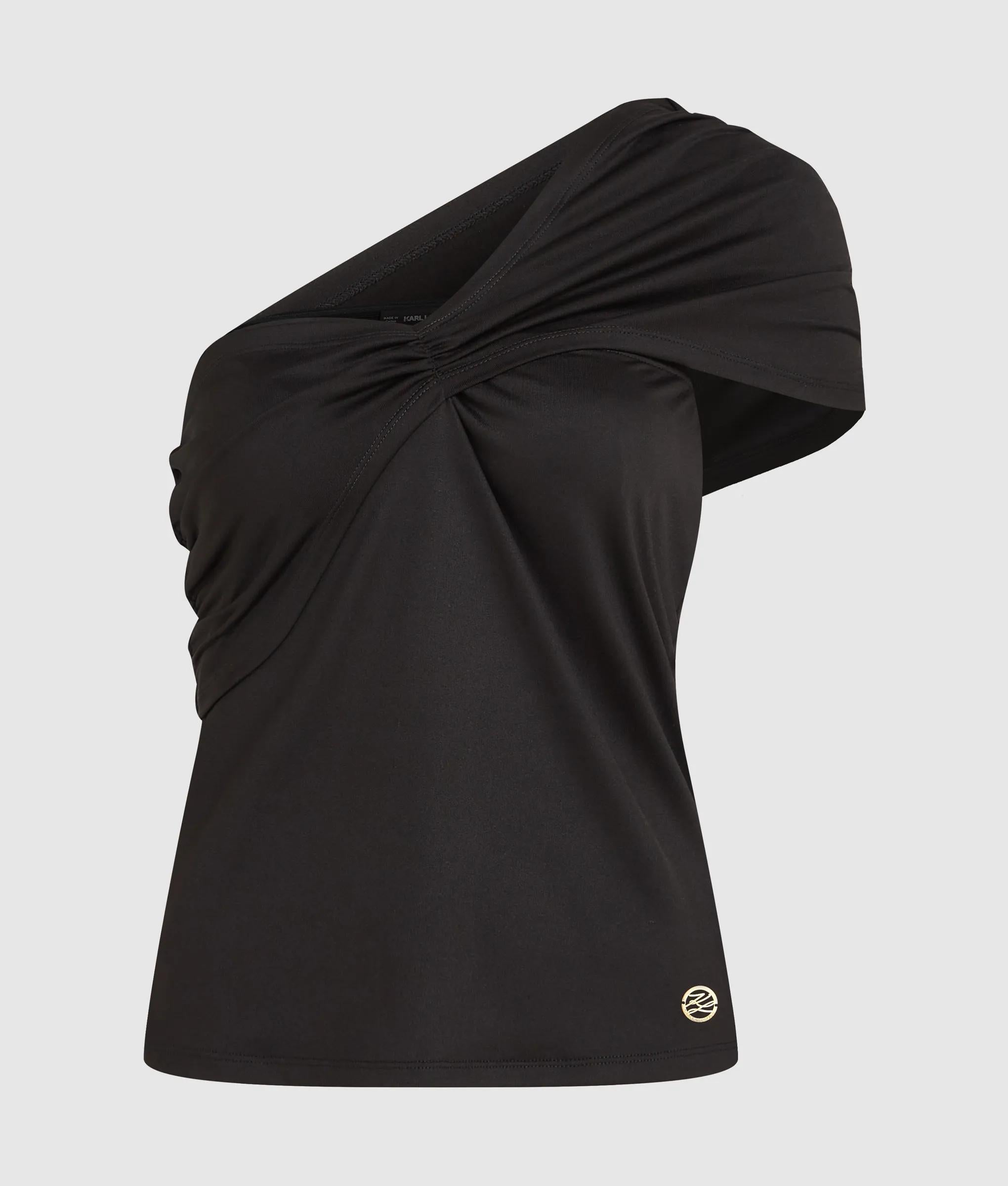 Der weiche Fall des Stoffes betont die asymmetrische Silhouette dieses One-Shoulder-T-Shirts. Aus leicht dehnbarem Gewebe gefertigt bietet dieses Piece perfekten Tragekomfort für lange Tage und Nächte.
