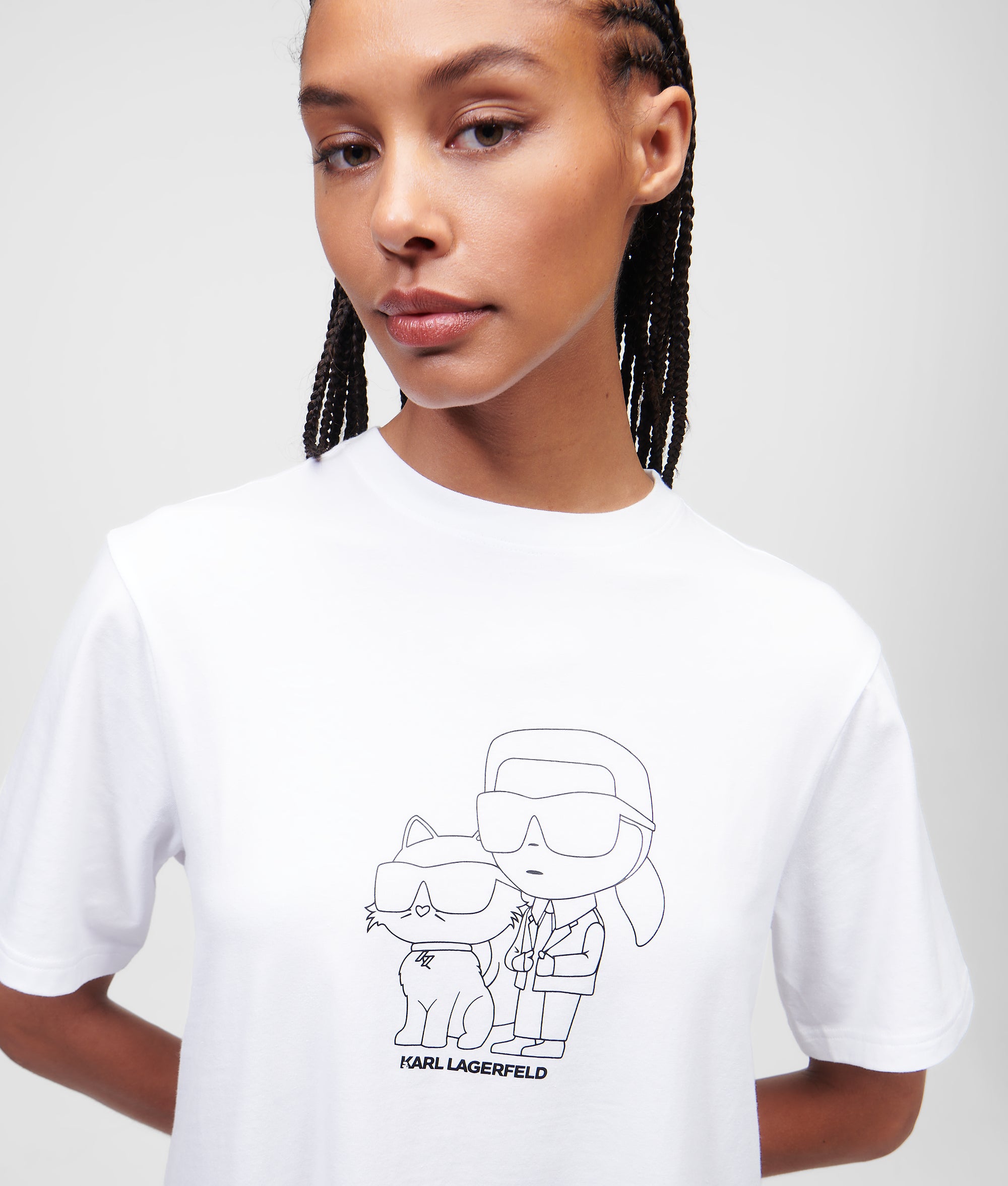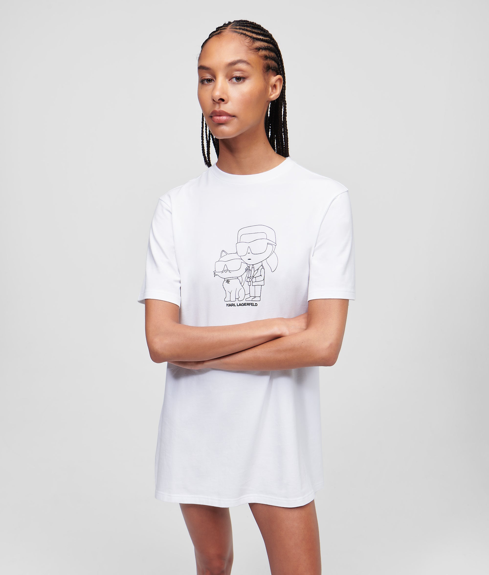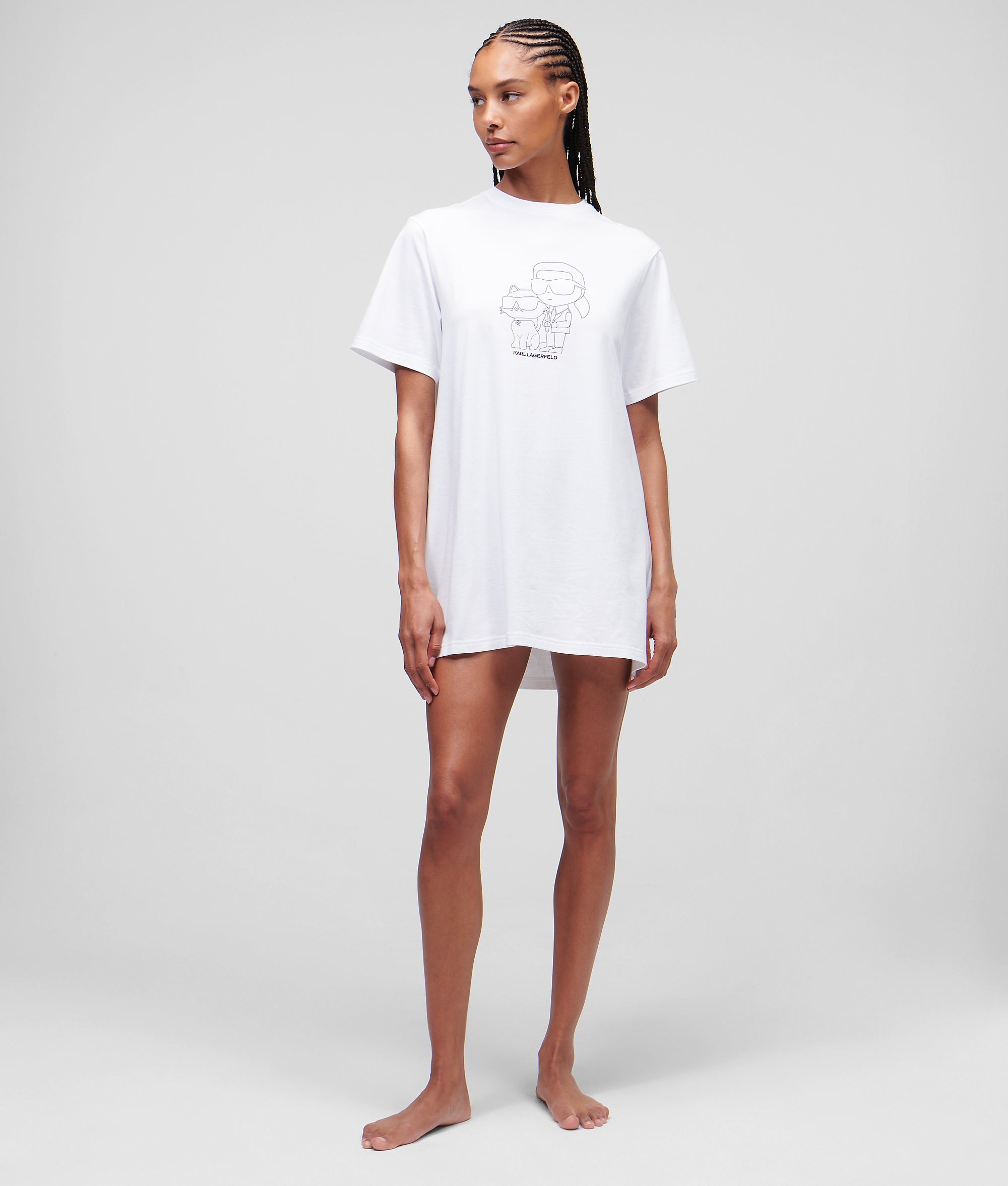 Veredeln Sie Ihre Auswahl an Nachtwäsche für warmes Wetter mit diesem übergroßen T-Shirt-Nachthemd. Die geräumige Silhouette besteht aus atmungsaktiver Bio-Baumwolle und verfügt über eine neu interpretierte IKON Karl-&-Choupette-Grafik auf der Brust.