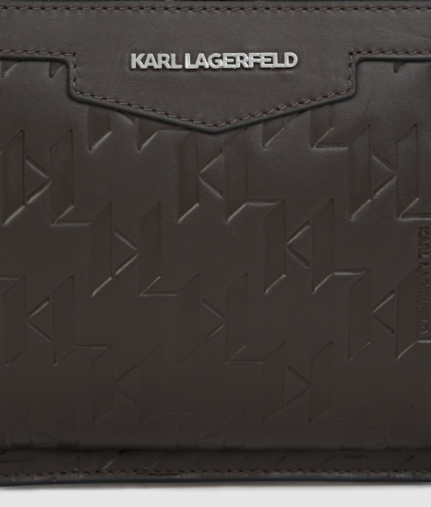 Der verstellbare Riemen mit Metallschnalle auf dieser eleganten KARL LAGERFELD-Gürteltasche sorgt für eine perfekte Passform, während ein durchgehendes, geprägtes KL-Monogramm-Design einen Hauch von Raffinesse verleiht. Der Zwei-Wege-Reißverschluss und die Vordertasche bieten einfachen Zugriff und sorgen für Ordnung.