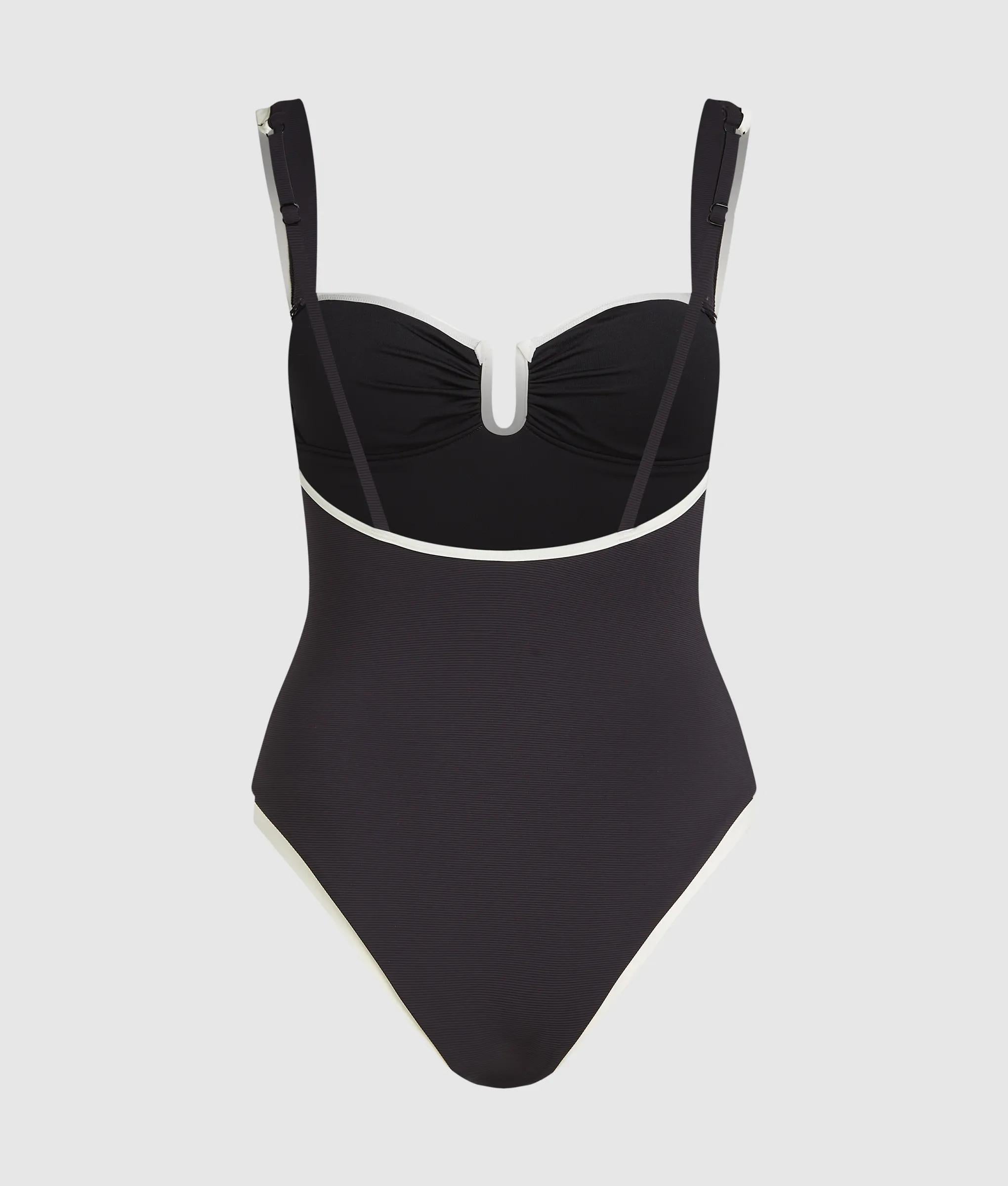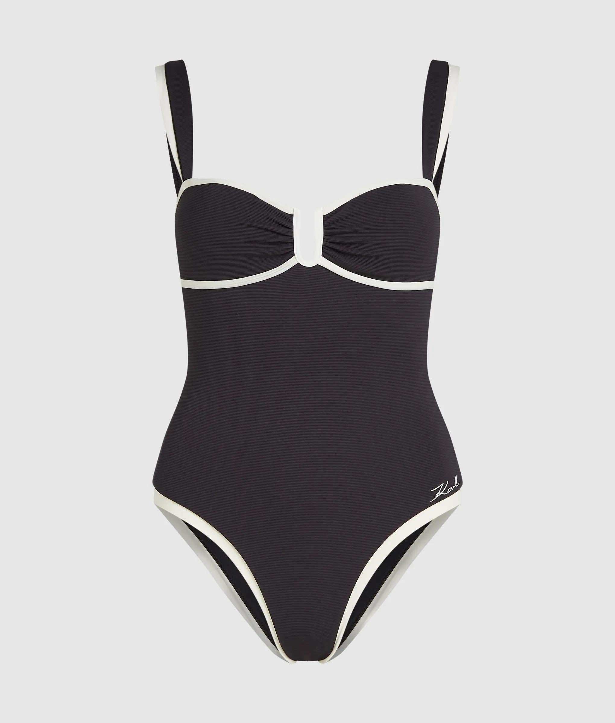 Bei diesem hochgeschnittenen Bandeau-Badeanzug fängt jede Kurve wunderschön das Sonnenlicht ein. Farblich abgesetzte Paspelierung und Signature-Logo-Details definieren die elegante, gut geschnittene Silhouette.