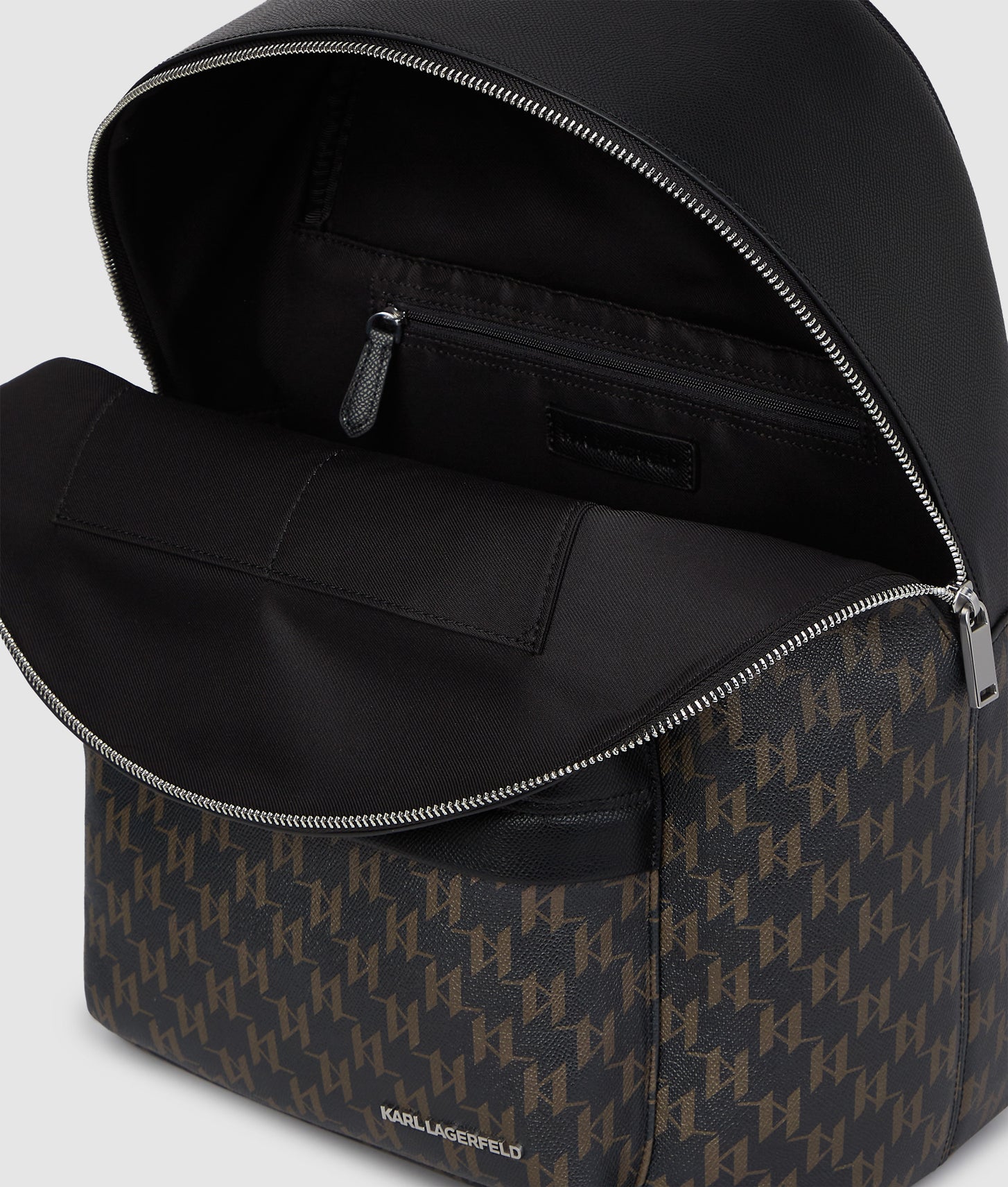 Perfekt für Abenteuer: Dieser Rucksack verbindet ein auffälliges Design mit maximaler Funktionalität. Ausgestattet mit einer Vordertasche mit Reißverschluss und Riemen zur Befestigung an den Griffen eines Rollenkoffers und mit einem durchgängigen KL-Monogramm versehen.