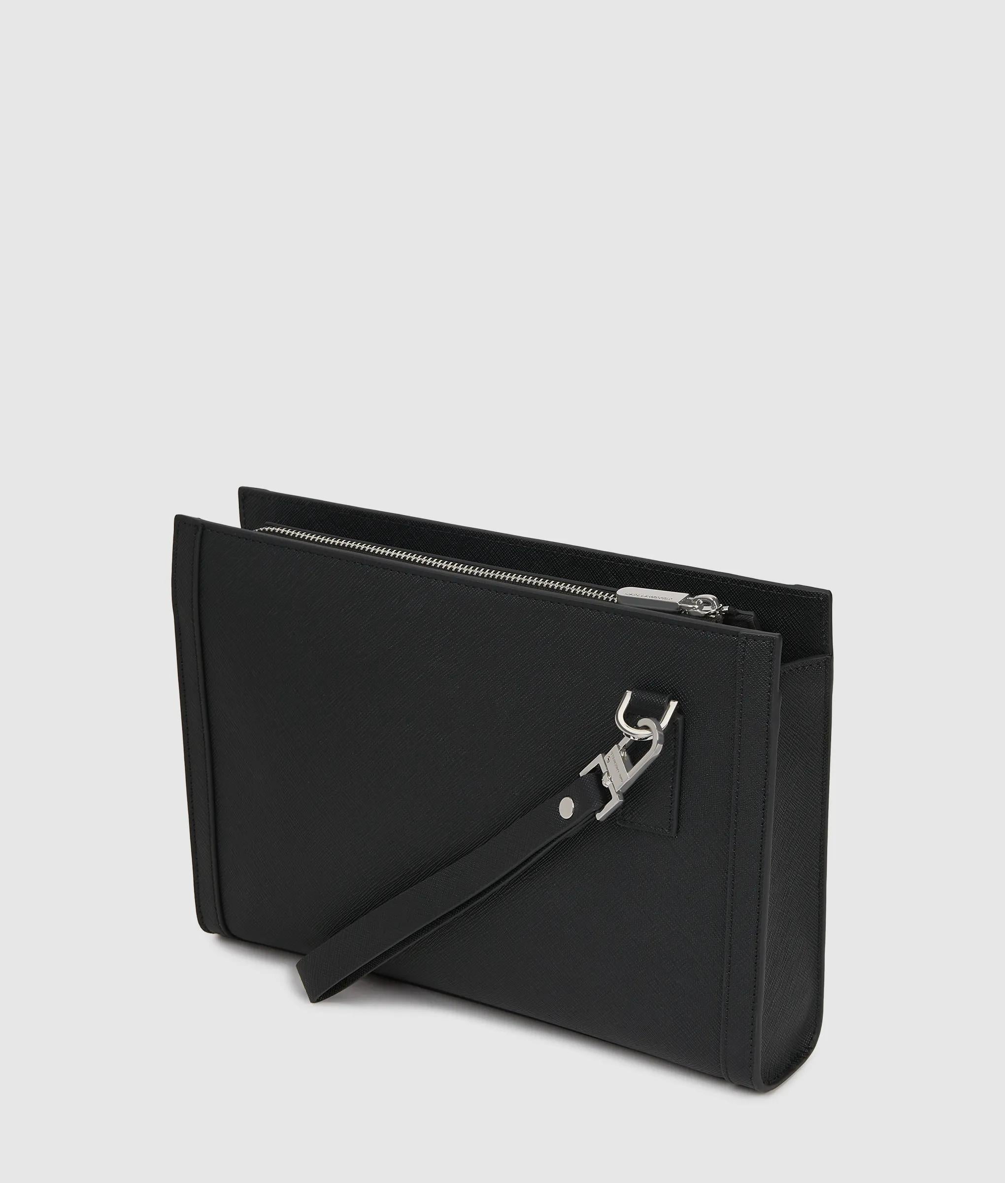 Diese schlanke, praktische vielseitig einsetzbare Beutel besticht durch einen Einsatz mit Signature-Logomuster auf der Vorderseite und Metallelemente mit Markenlogo. Der abnehmbare Handgelenksriemen und der sichere Reißverschluss verbinden Stil und Komfort.