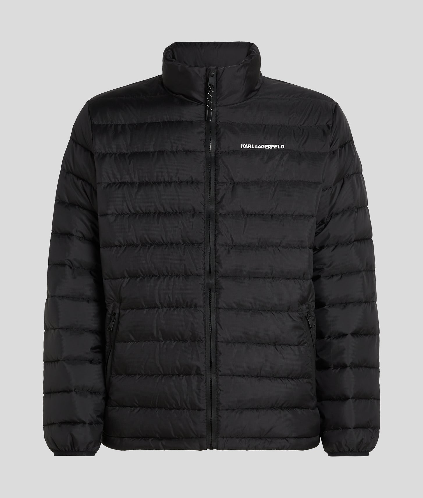 Modernize go-to outerwear with this lightweight puffer jacket from KARL LAGERFELD. Featuring a funnel neck and elasticated cuffs for weather protection, it boasts practical concealed zip pockets and a minimalist logo for a sophisticated finish.