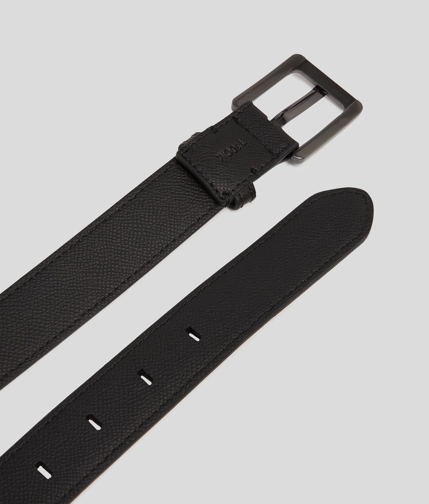 A classic leather belt combining timeless style with modern functionality. Featuring an adjustable buckle engraved with the iconic KARL LAGERFELD logo, it arrives beautifully presented in a branded gift box.