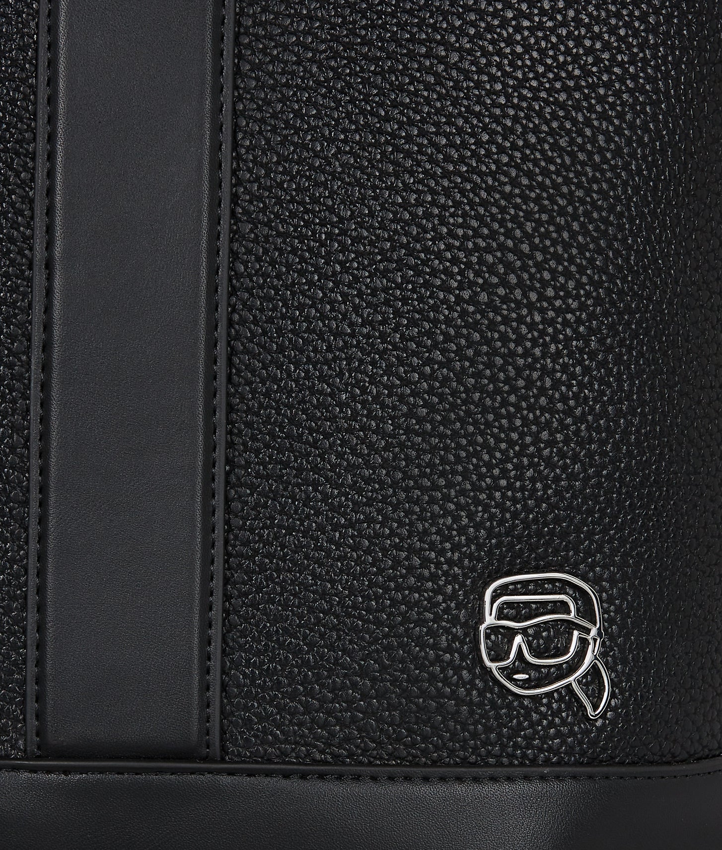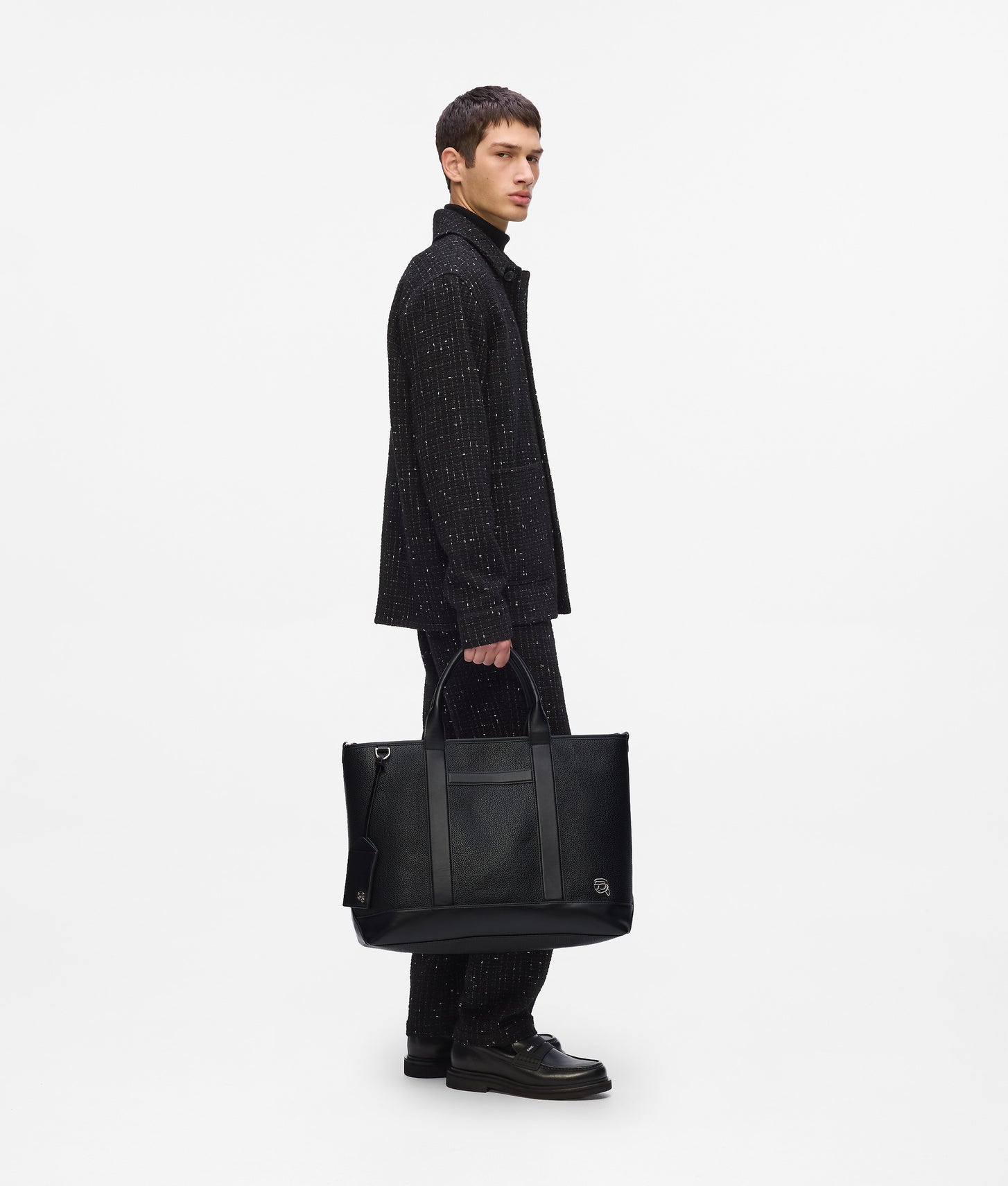 Discover this sleek tote bag, offering a spacious silhouette to accommodate daily essentials effortlessly. Featuring twin top handles and a detachable, adjustable strap, as well as a detachable tag, it brings versatility and functionality. Unique Ikon Karl hardware elevates the look.