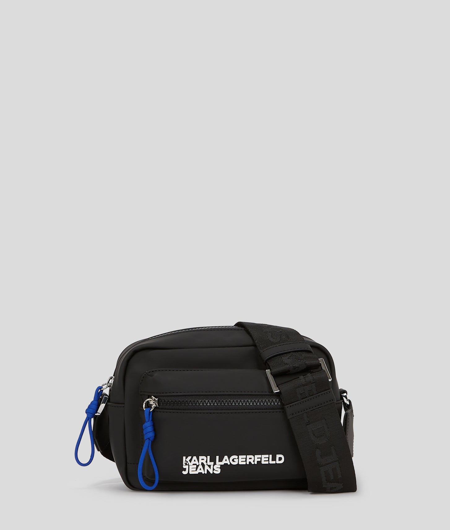 KARL LAGERFELD JEANS redefines everyday accessorizing with this crossbody bag made from coated technical leather. A zip-top closure and a front pocket with bungee cord pullers offer easy organization, perfect for on-the-go style.