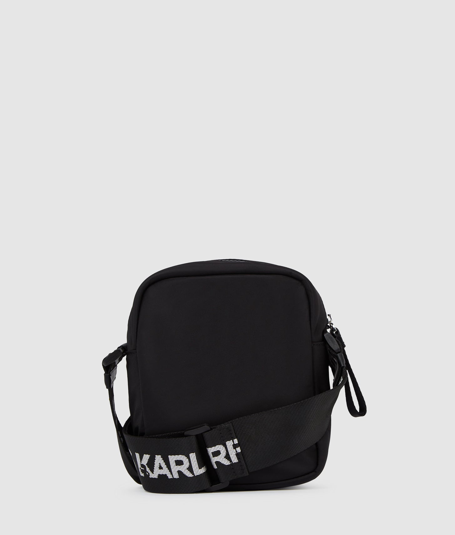 This sleek crossbody bag is an essential companion for on-the-go days. The zip-top closure and concealed front pocket keep essentials and the adjustable webbing strap showcases bold logo detailing for statement-making style.