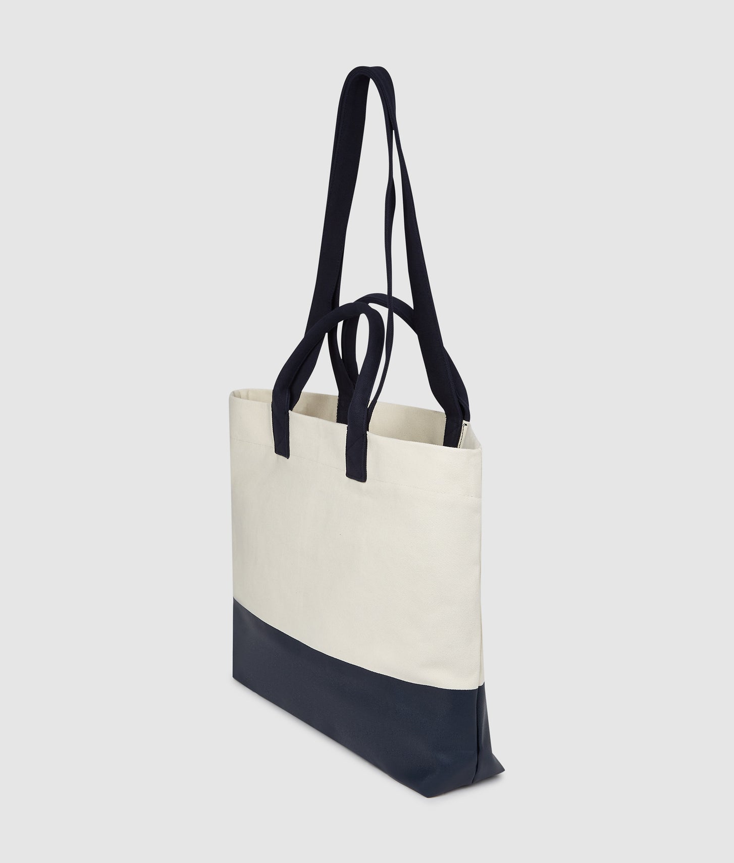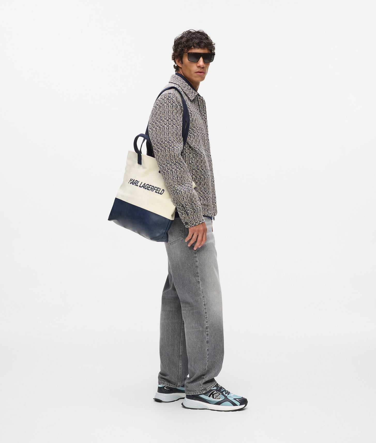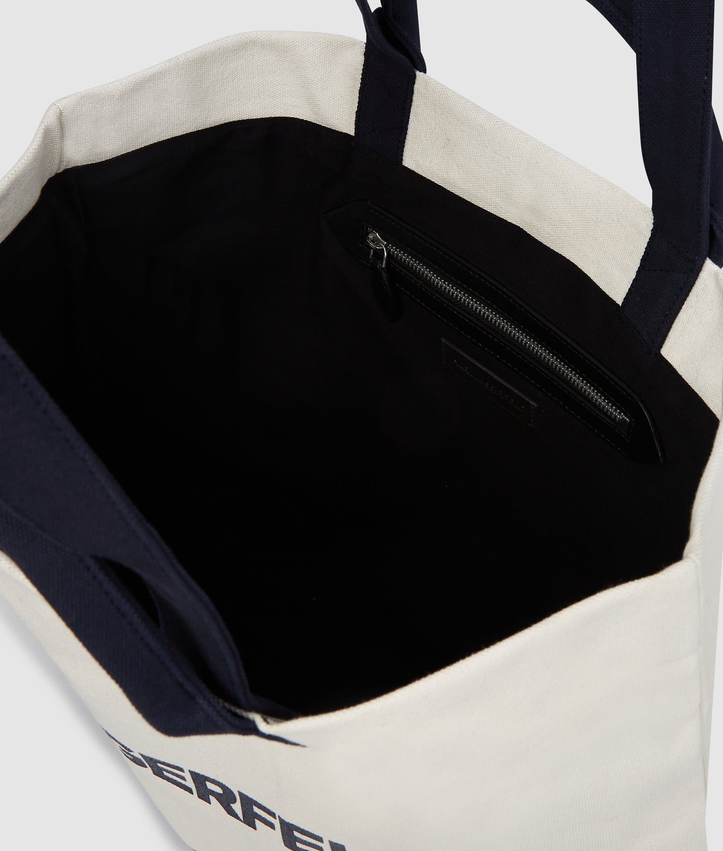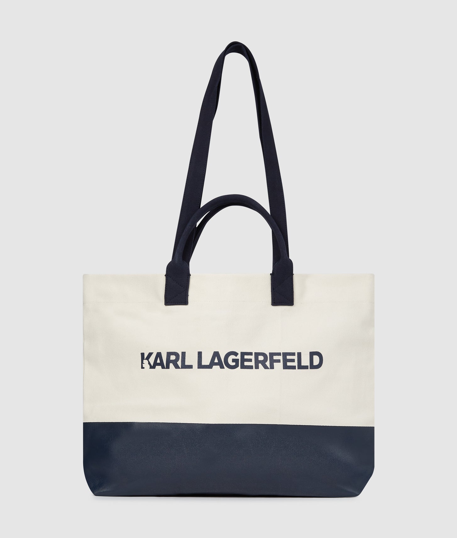 This cotton shopper offers a roomy silhouette, perfect for safely storing all daily essentials. Twin top handles and shoulder straps offer versatile carrying options, while the bold KARL LAGERFELD logo anchors the piece.
