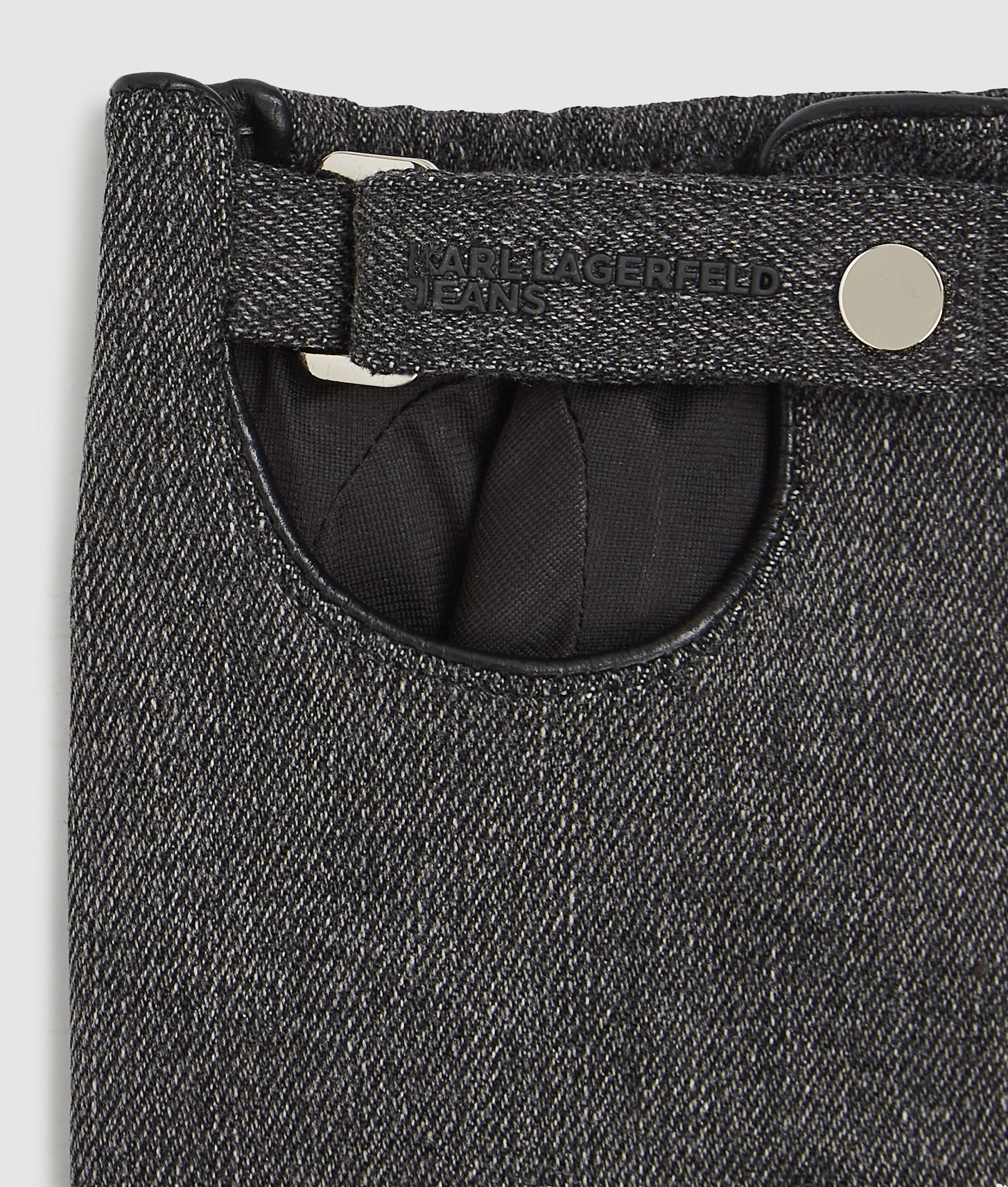 These confident fingerless gloves feature a strap closure embroidered with the KARL LAGERFELD JEANS logo. Crafted in edgy washed denim, they're perfect for layering attitude into streetwear looks.