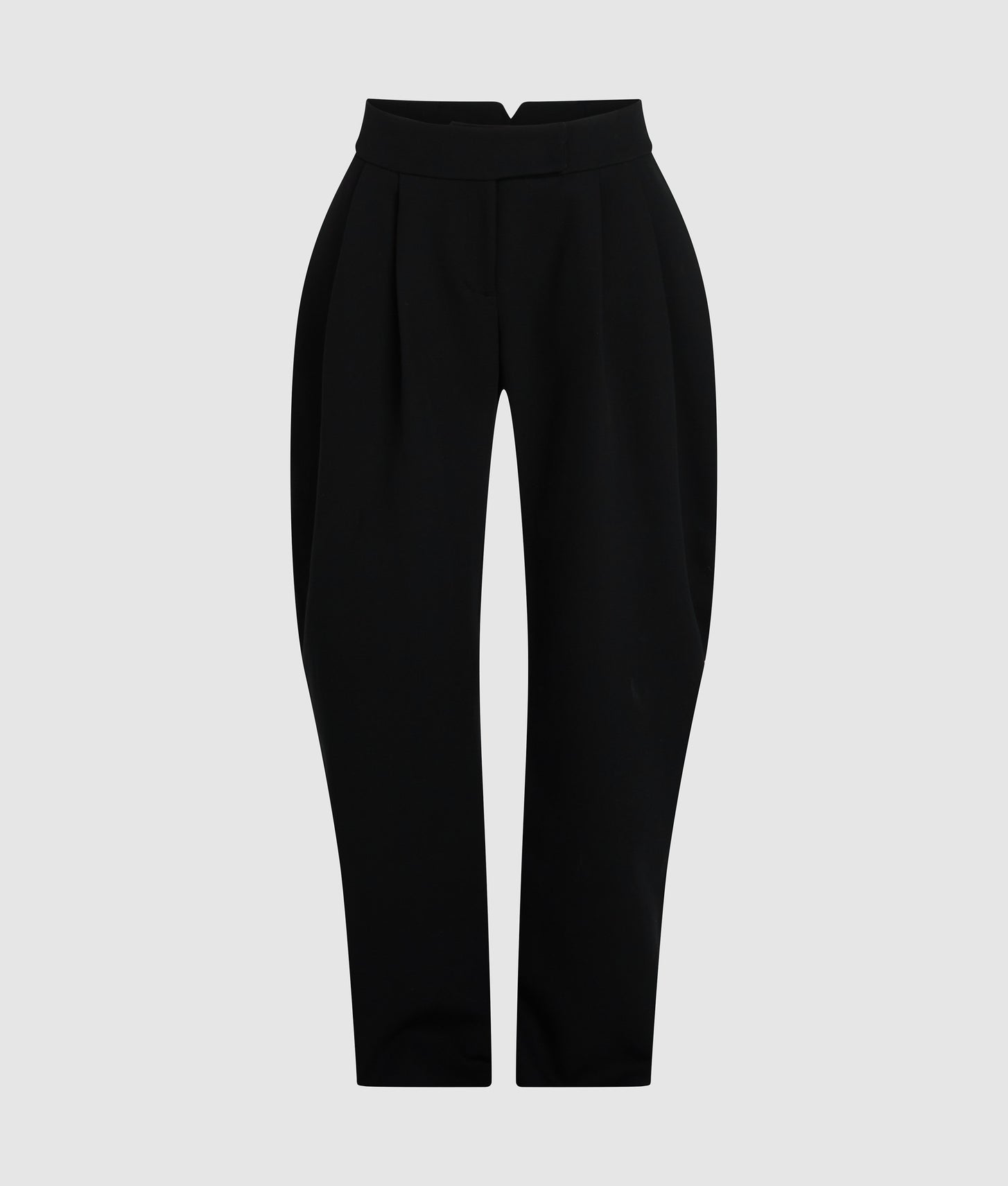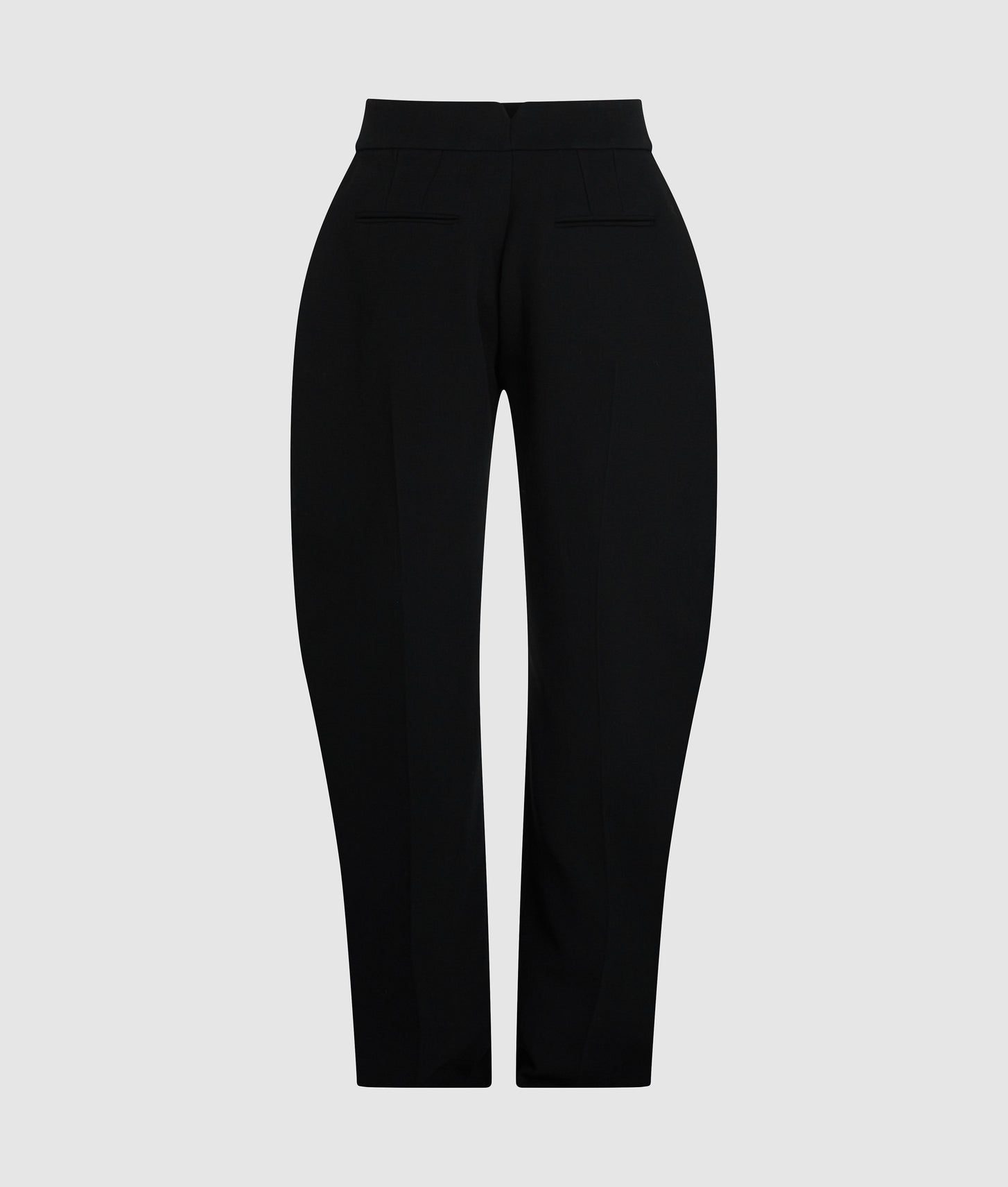 Sculptural barrel-legs and curved volume bring dimension to this high-rise silhouette. The mood? Cool and made for modern polish. Complete the set for a look that’s tailored, tonal, and effortlessly chic.