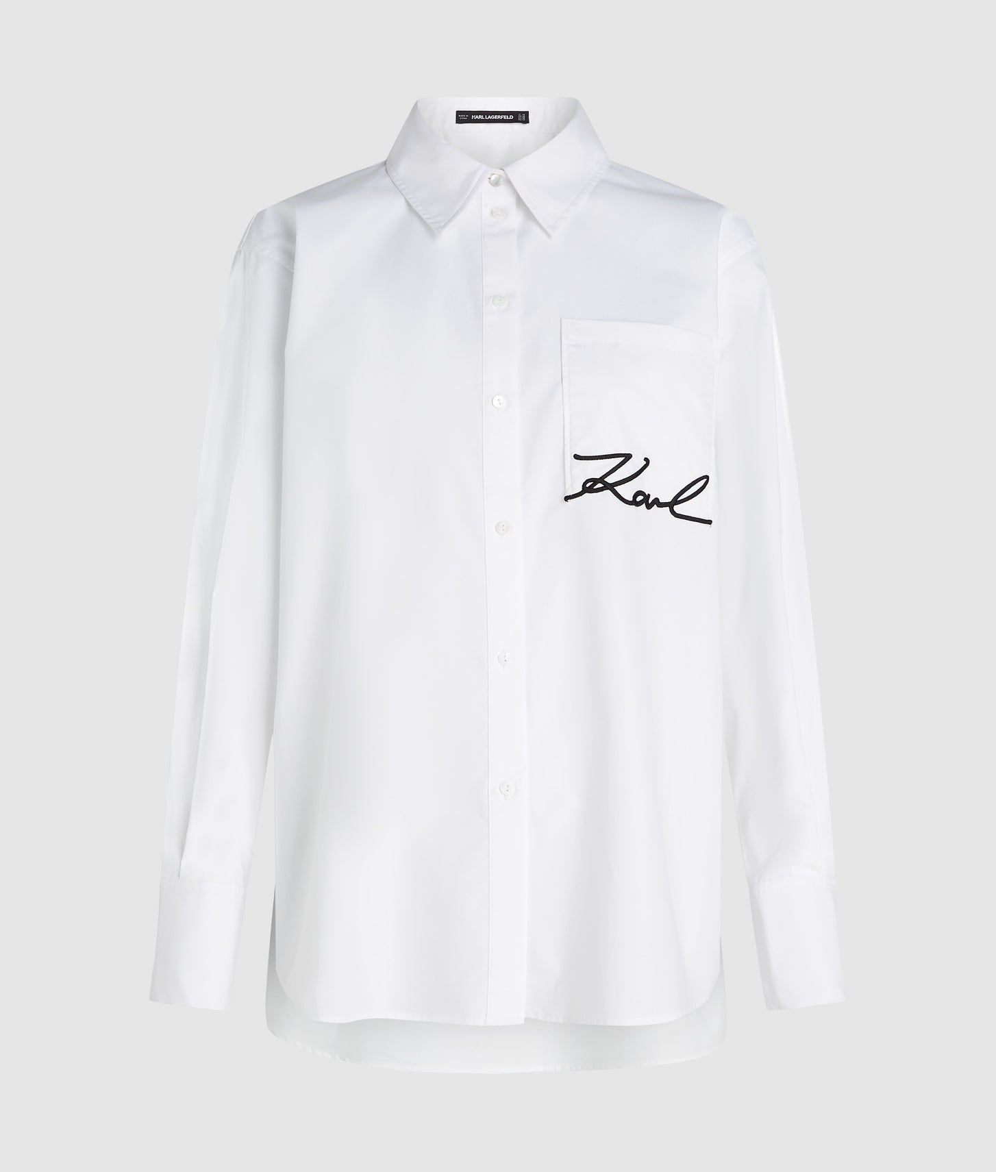 Crisp and timeless, this button-front shirt is elevated by Signature logo embroidery at the chest pocket. The sharp collar and clean lines deliver versatile styling — pair yours with tailored trousers for refined polish or denim for everyday cool.