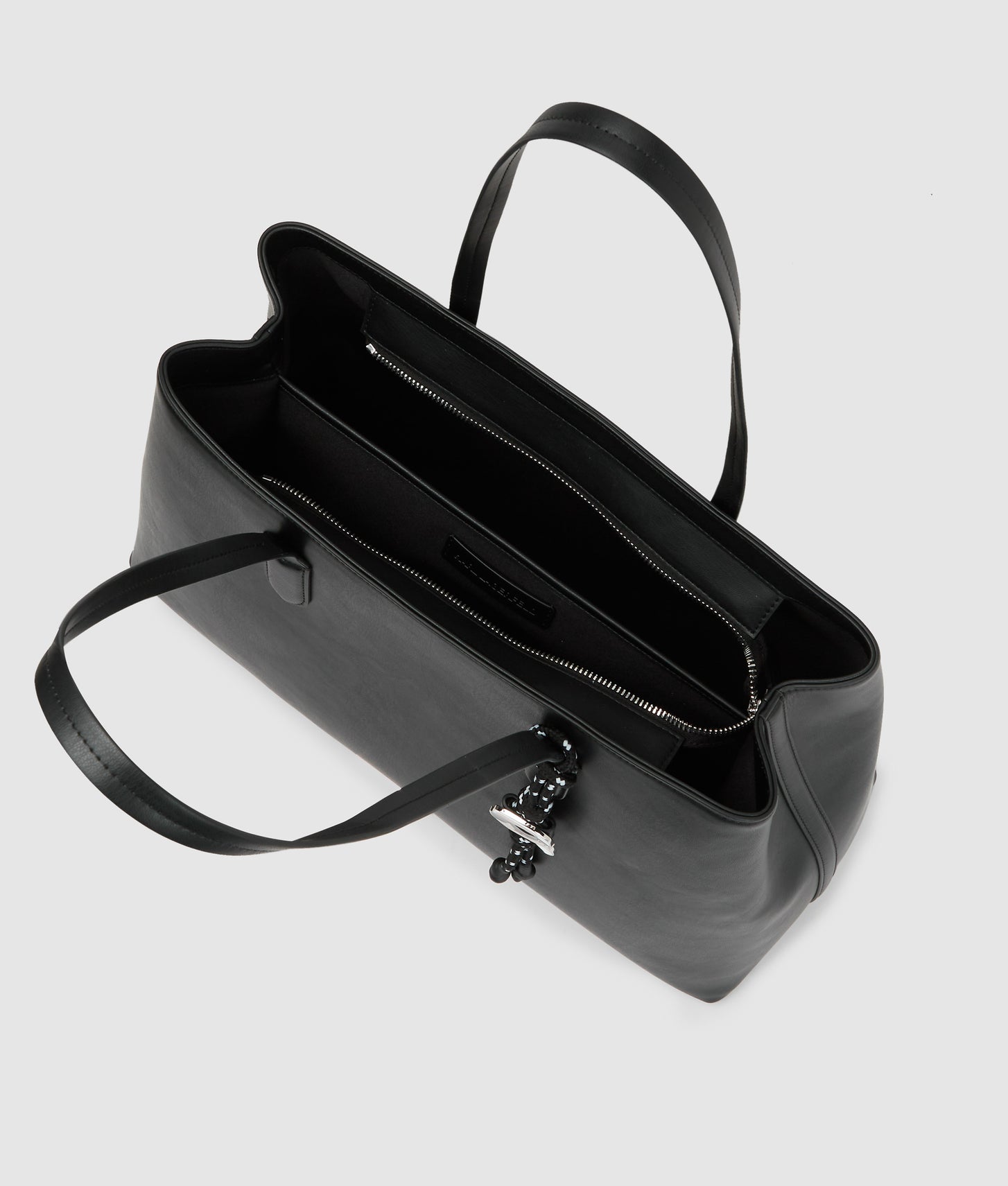 Elevate your commute with this elegant tote bag, crafted from smooth technical leather. Elongated twin handles offer versatile carrying options, while the spacious interior fits your laptop effortlessly.