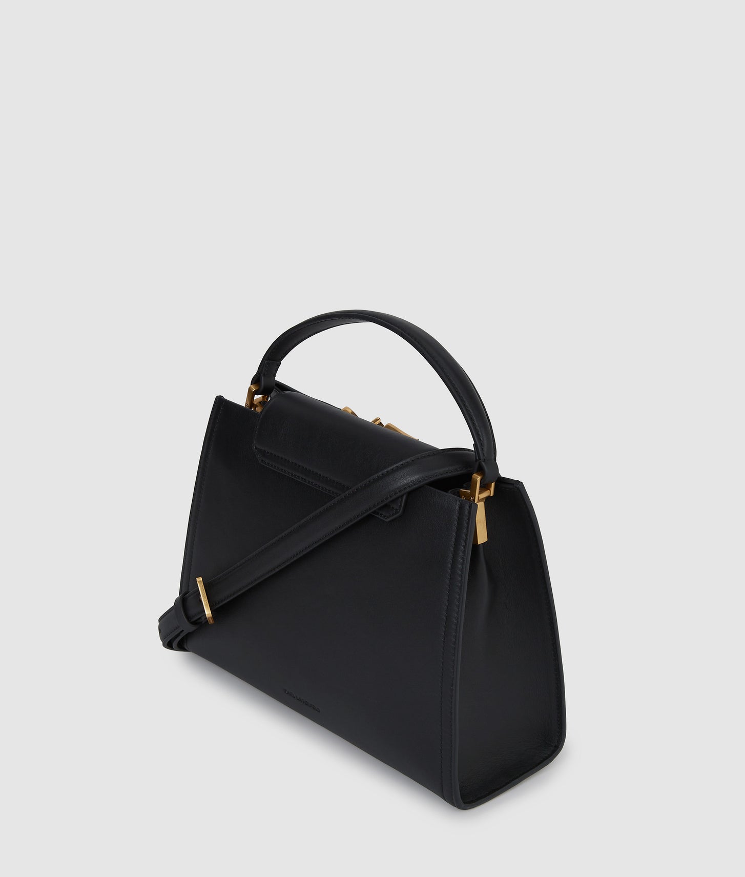 Crafted from smooth leather, this timeless top handle bag features an elegant flap closure and Karl Signature hardware. A detachable strap offers versatile styling, taking you from day to night.