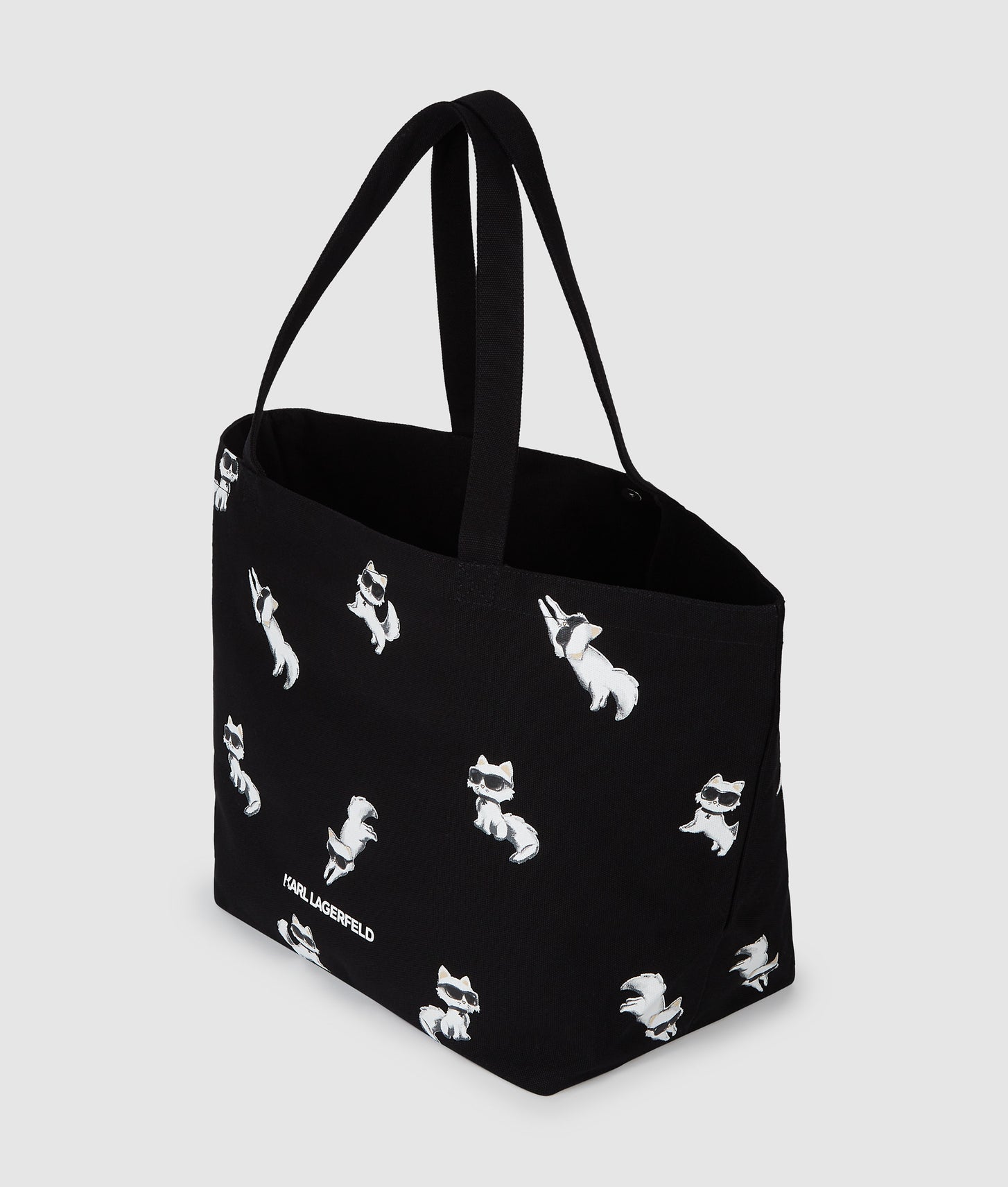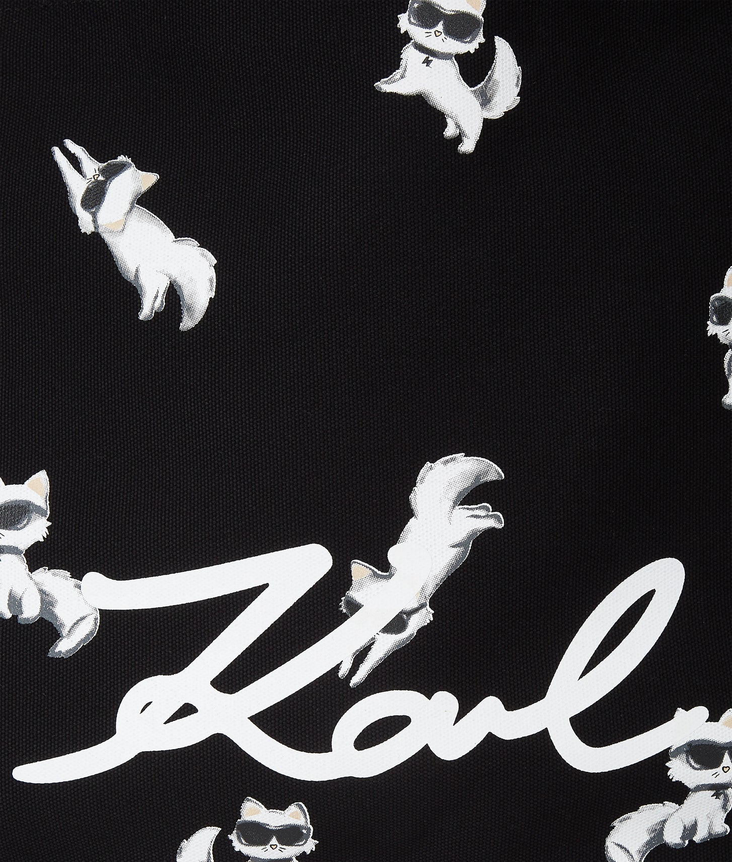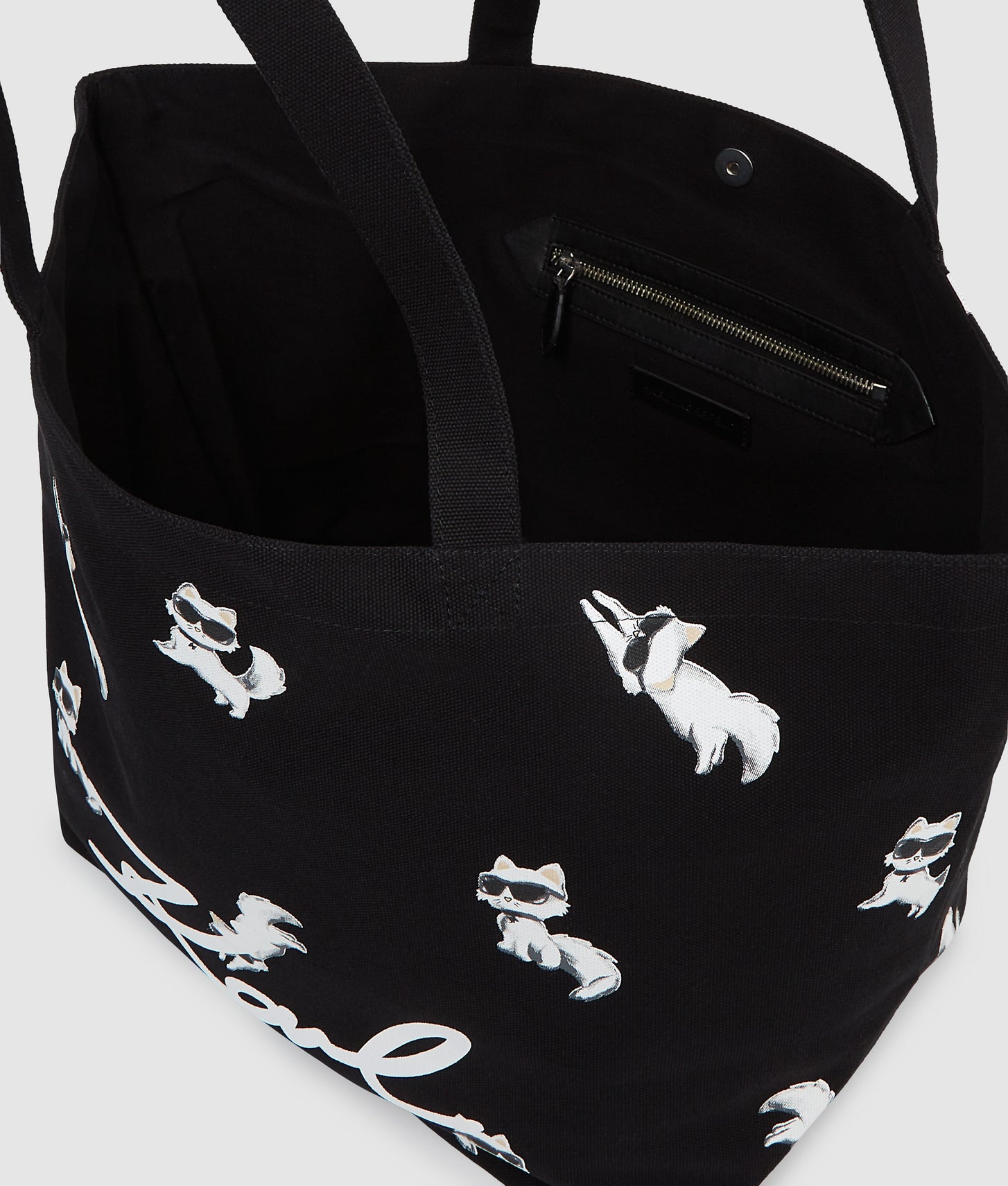 Blending statement style and practicality, this cotton shopper features a secure closure and versatile handles. The piece is anchored by a bold Karl Signature and playful Ikon Choupette artwork.