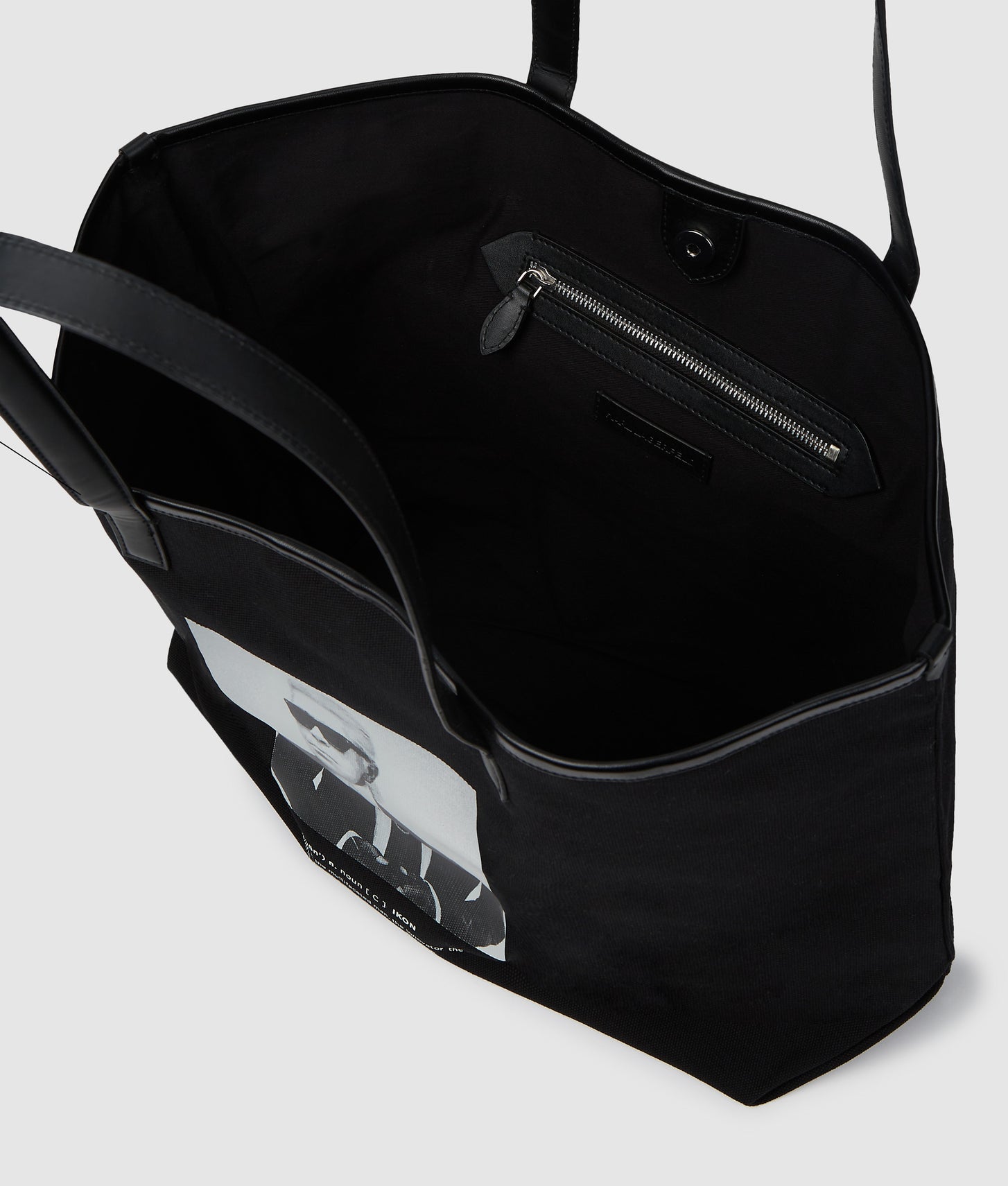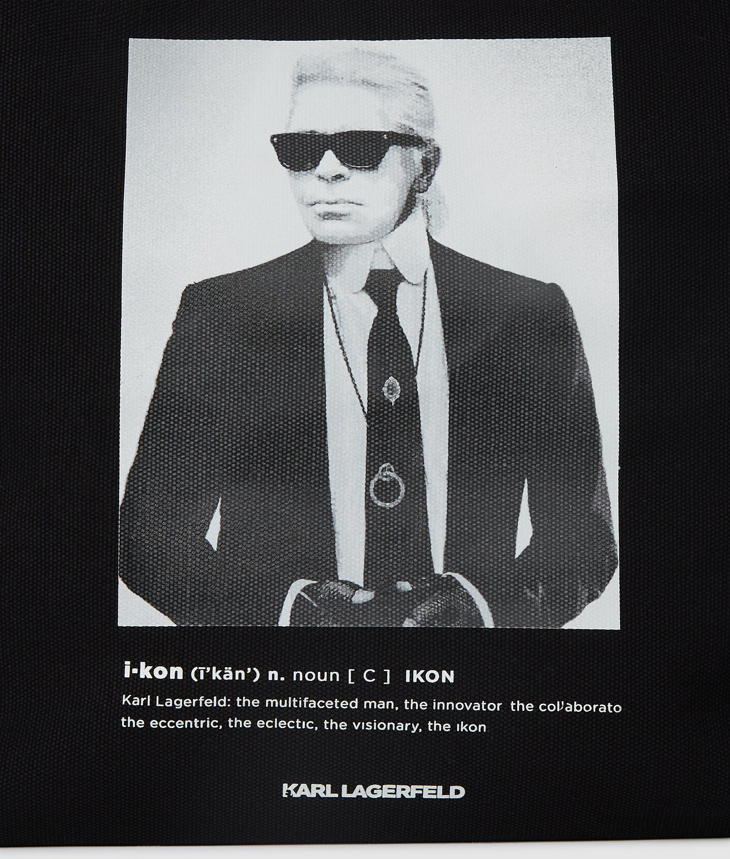 Paying homage to Karl Lagerfeld, this cotton shopper features a statement photo print of the celebrated designer. With multiple carrying options and a secure fastening, it blends style and function.