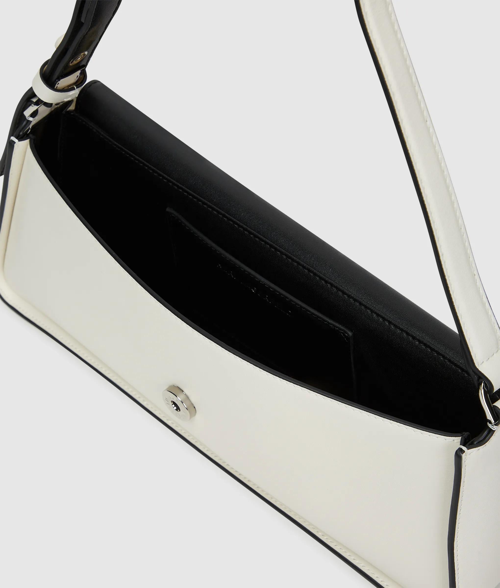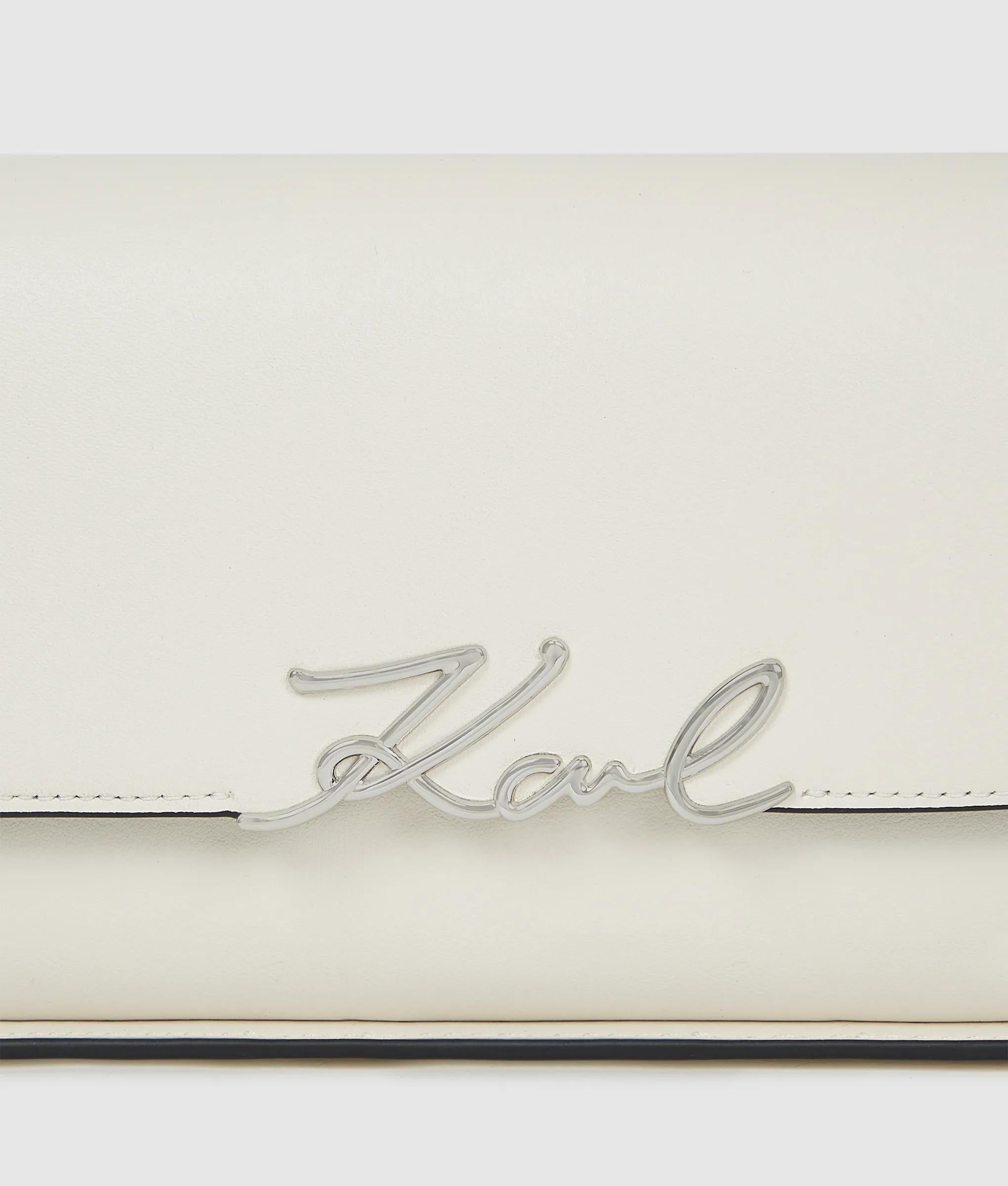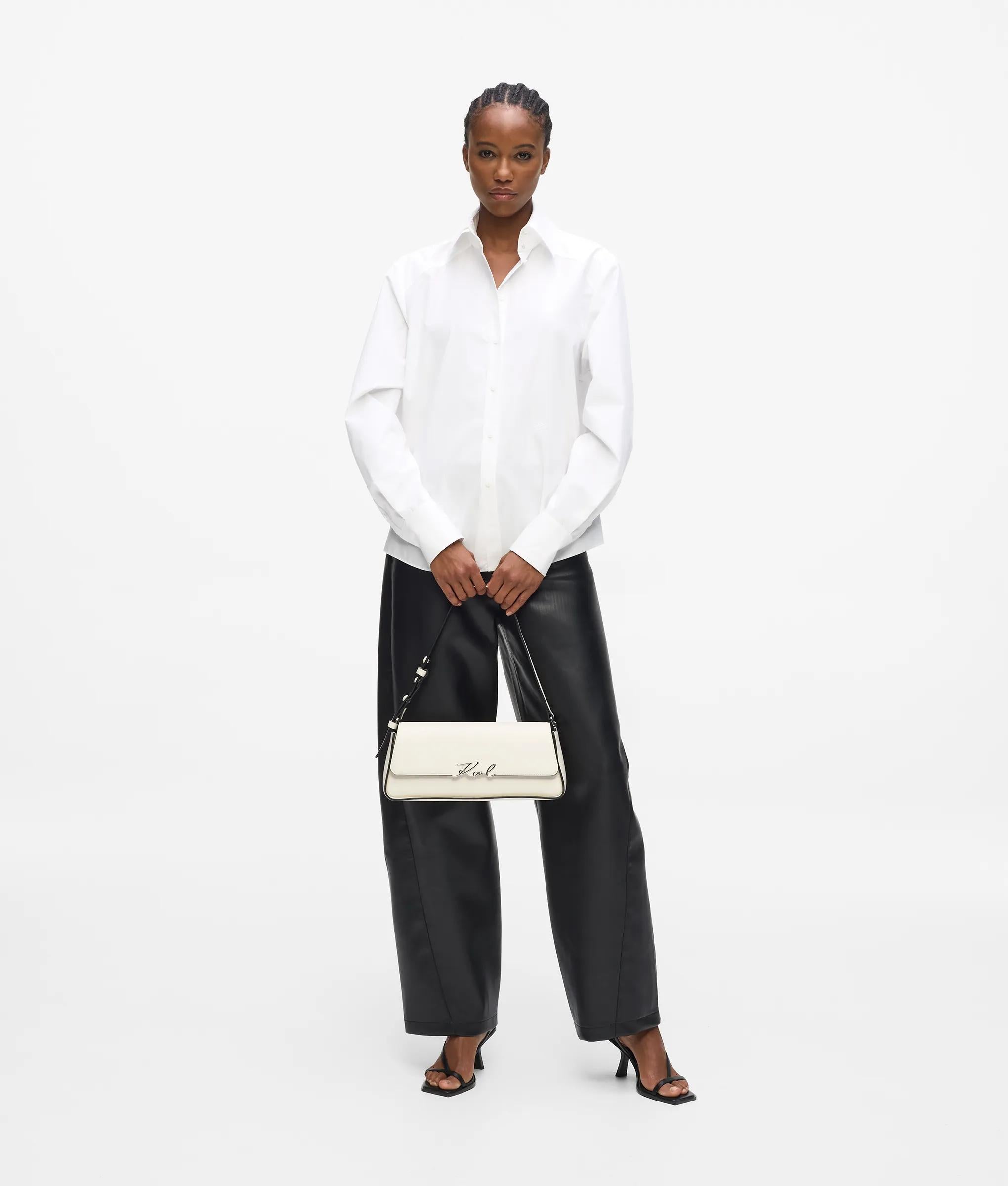Blending functionality and refinement, this leather shoulder bag features a sleek elongated silhouette and an adjustable strap to ensure comfortable wear. Delicate Karl Signature hardware elevates the look.