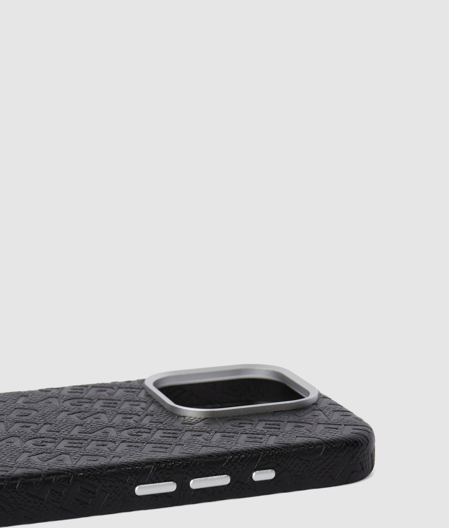 A textured technical leather finish and all-over logo design create a bold, modern phone case that protects your device with style and function.