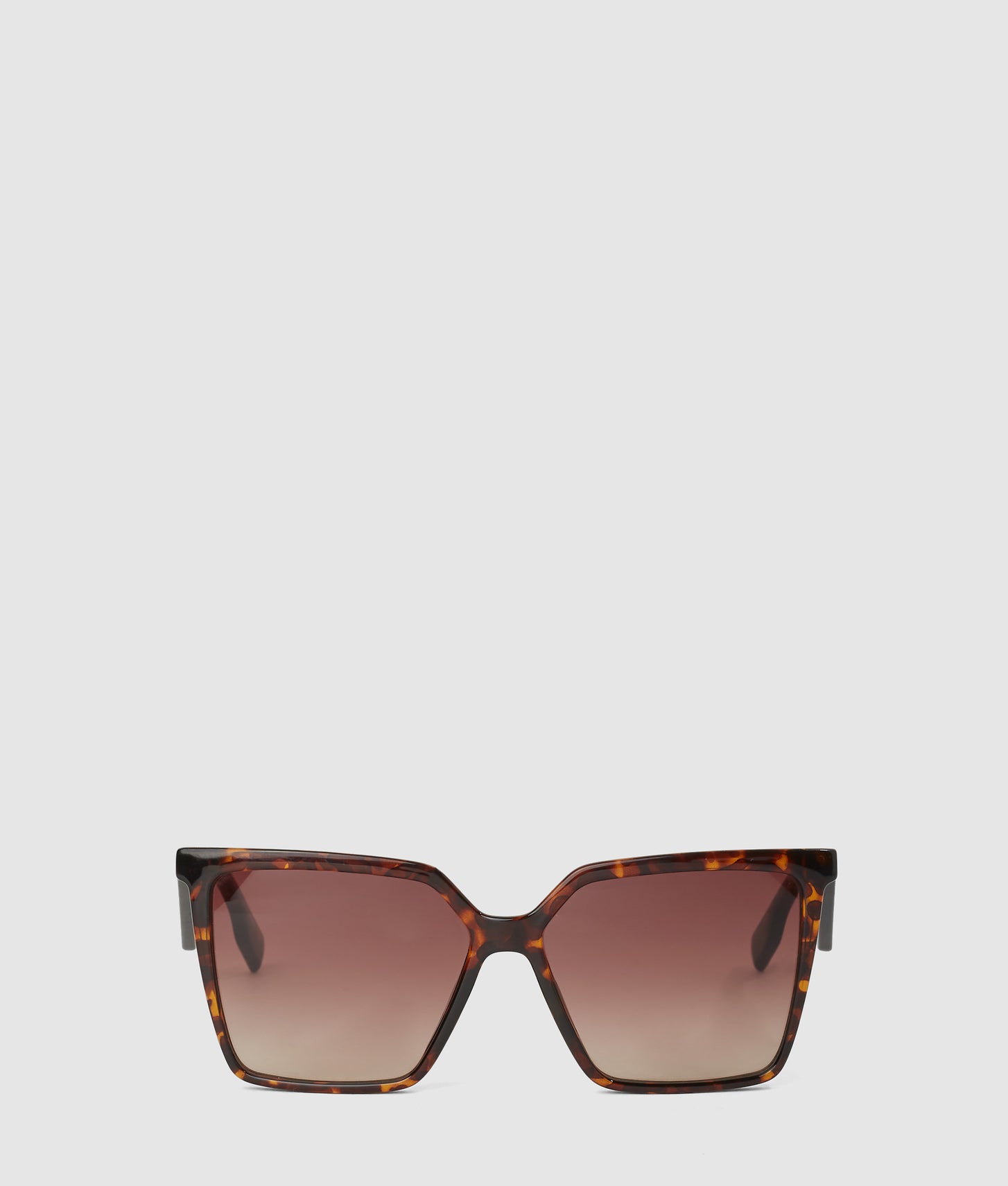 Geometric arms add edge to these sleek rectangular sunglasses, perfect for dialing up the attitude on any look. Featuring refined dark lenses and a molded nose stand for all-day ease.