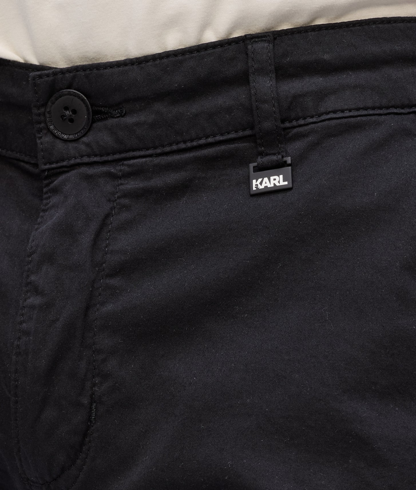 Step into effortless style with these chic chino pants, featuring a branded button and zip-fly fastening. Practical side pockets and welt pockets at the back offer functionality, while the unique KARL LAGERFELD logo piping adds a distinctive touch.