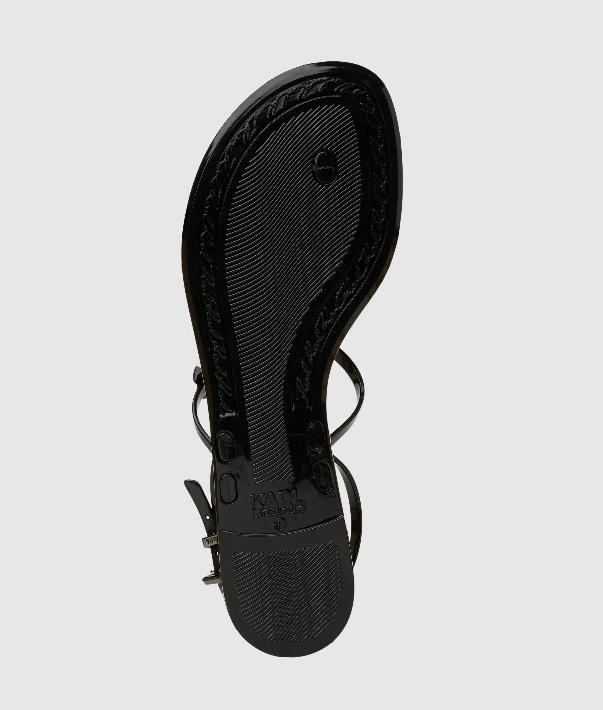 Embrace modernity with KARL LAGERFELD's jelly sandals, featuring secure buckle fastening and a distinctive NFT rubber patch for a touch of digital-age luxury. Perfect for the discerning individual looking for a blend of fashion-forward styling and day-long comfort.