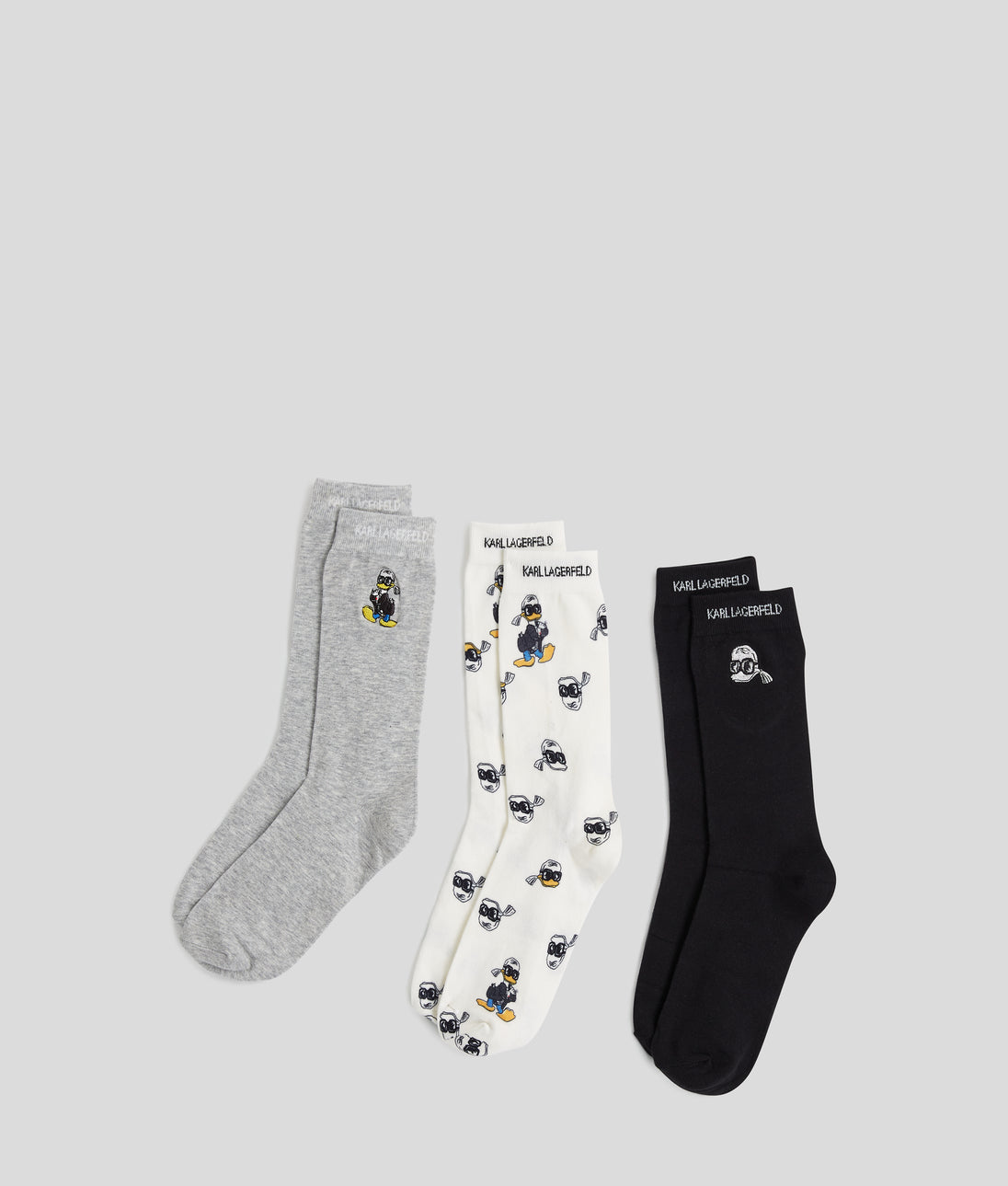 Discover these limited-edition high-top sneakers from the Disney capsule collection, showcasing a playful reimagining of Donald Duck in the style of Karl Lagerfeld. They feature a classic lace-up design with a rubber toe cap, while a playful charm and contrasting collaboration embroidery add a unique, modern twist.