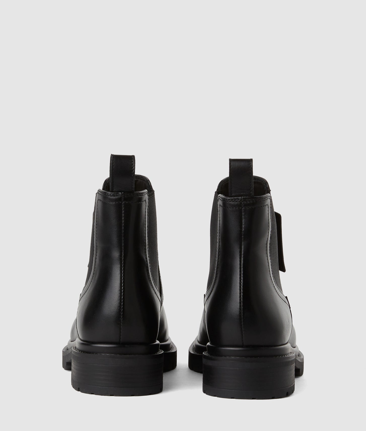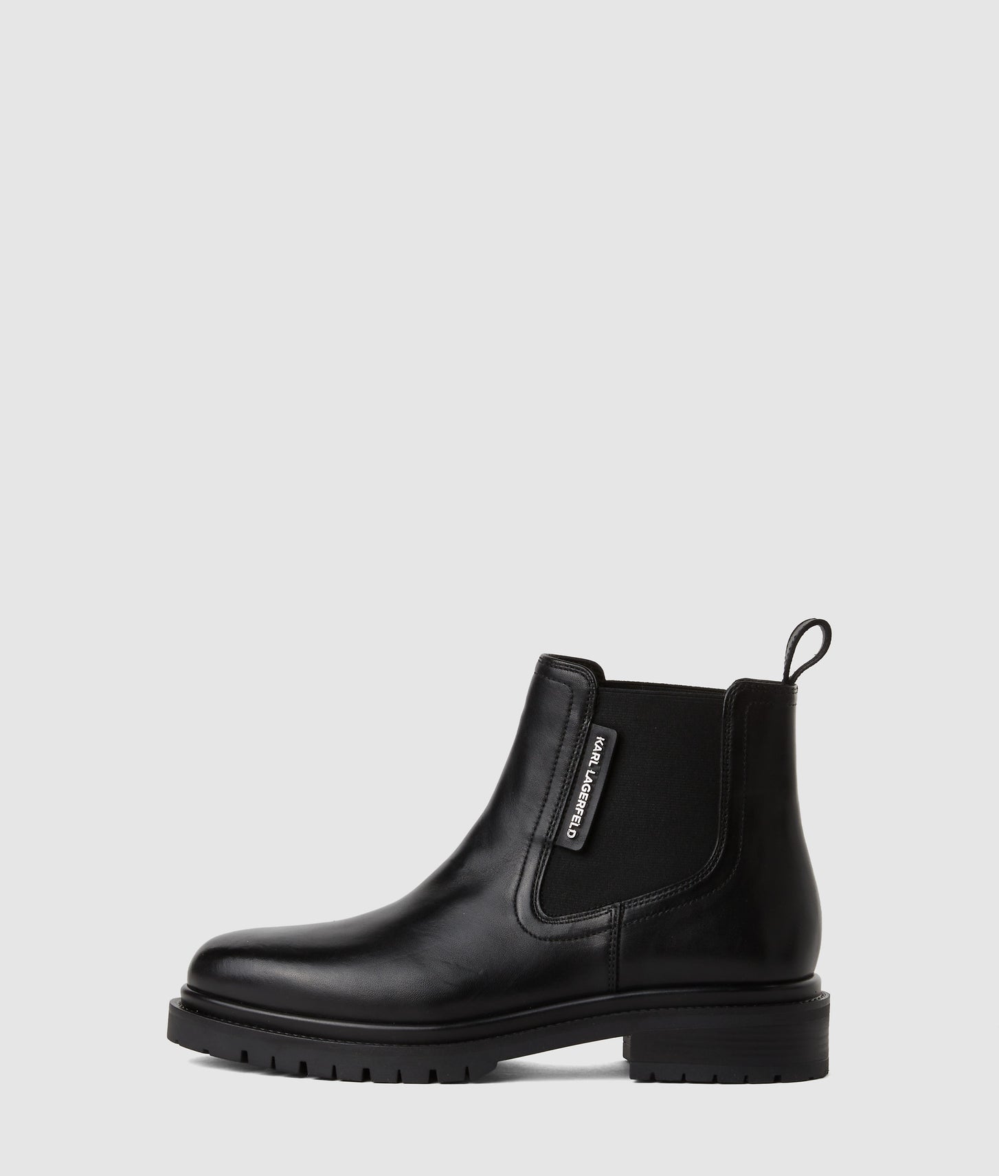 Crafted from leather with a polished finish, these classic ankle boots add a touch of timeless style to any look. An elasticated gusset and low block heel ensure easy wear, accented by a subtle KARL LAGERFELD logo tab.