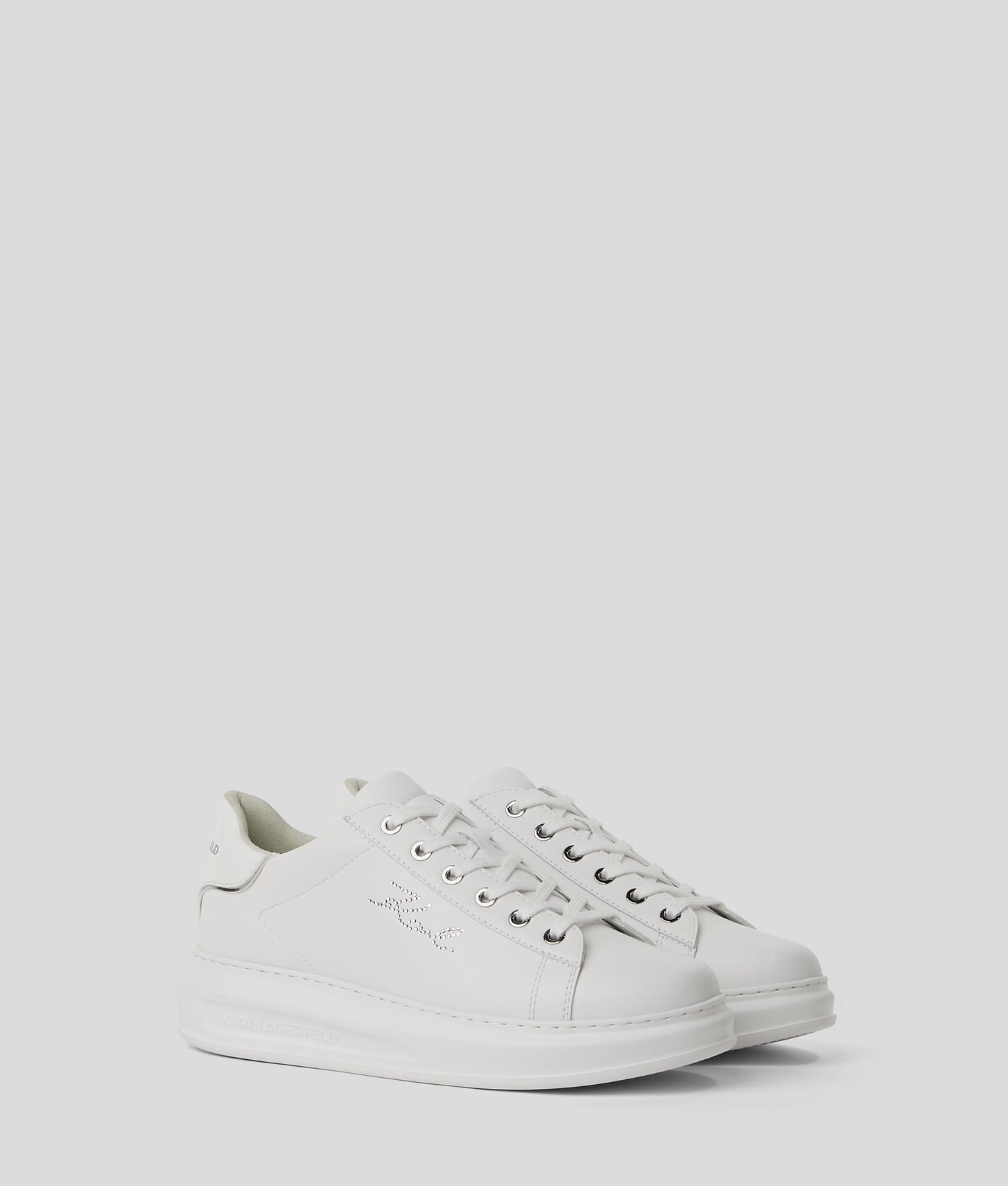 Infused with a playful spirit, these sneakers redefine casual footwear. The lace-up design ensures a secure fit, while the tonal heel counter subtly showcases the KARL LAGERFELD logo. An eye-catching Karl Signature in shimmering rhinestones adds a touch of fun.