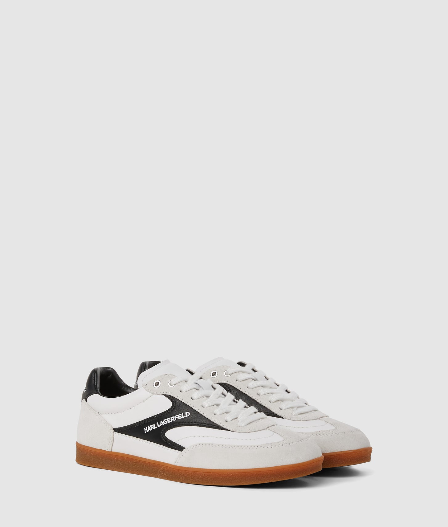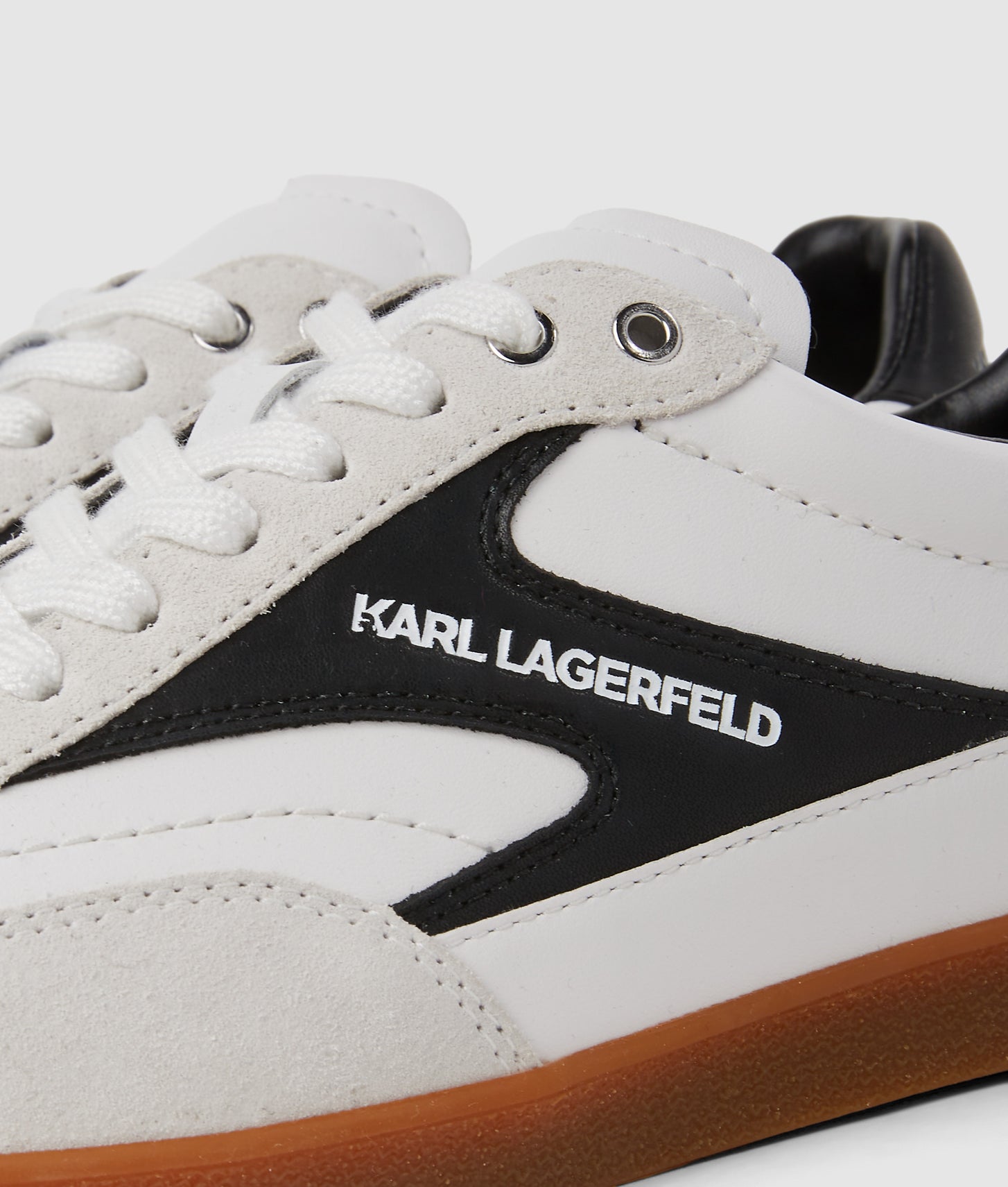 Crafted from sophisticated leather and suede paneling, these lace-up sneakers are the perfect blend of luxury and comfort. A contrasting heel counter and statement KARL LAGERFELD logos complete the standout footwear.