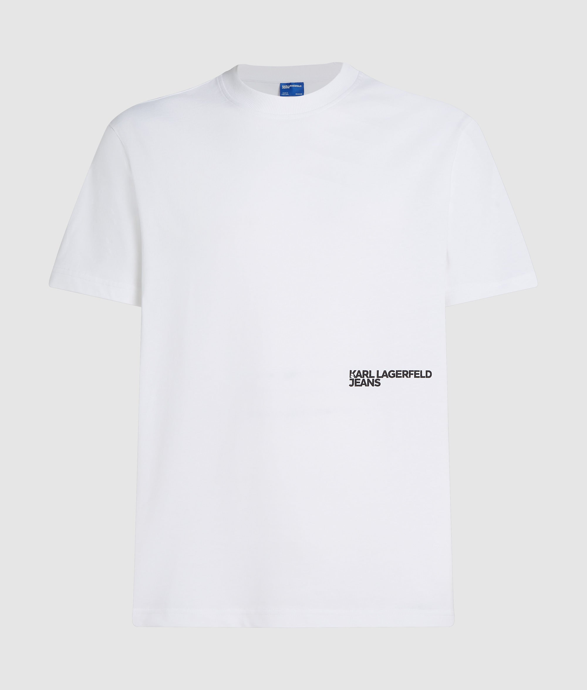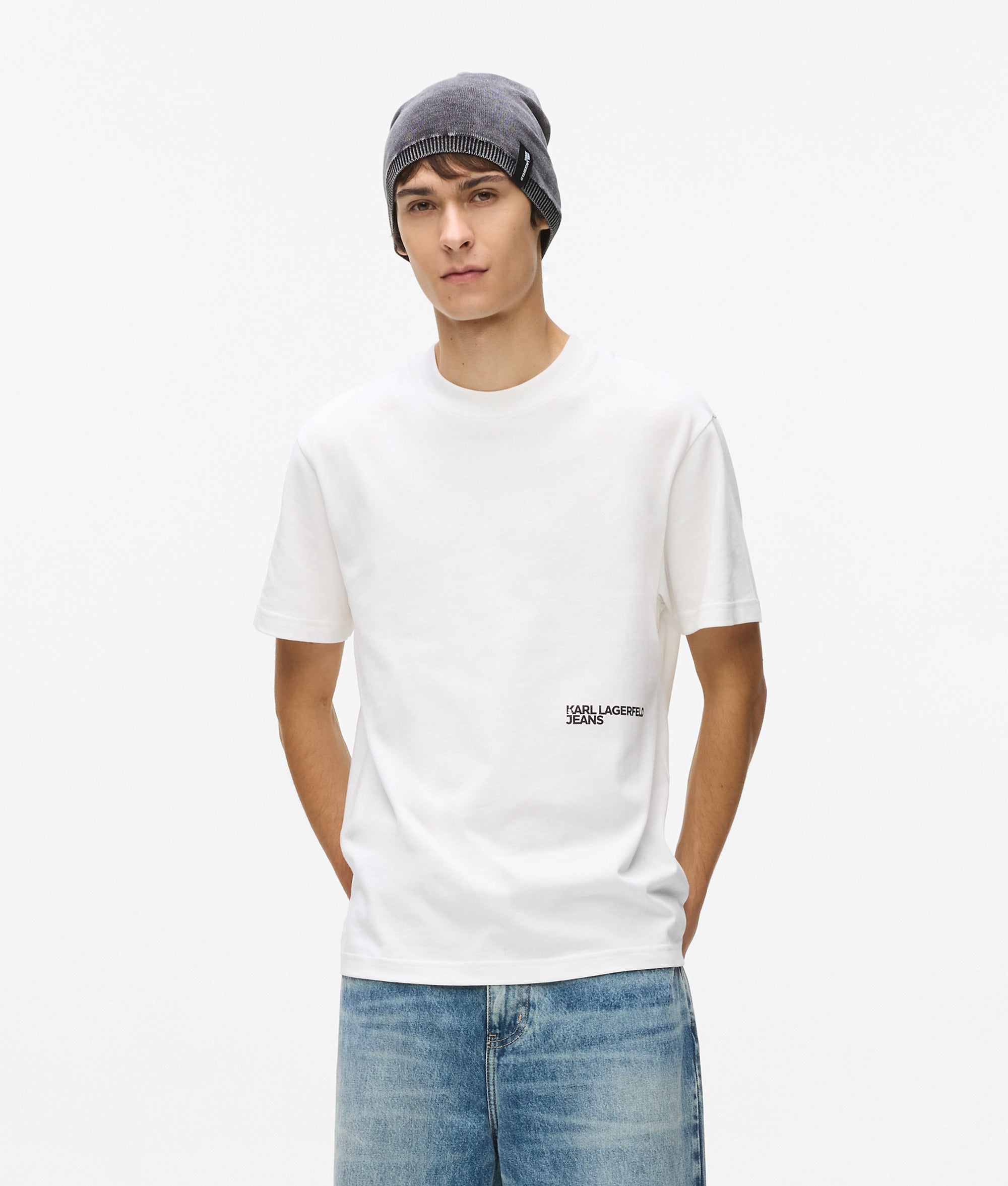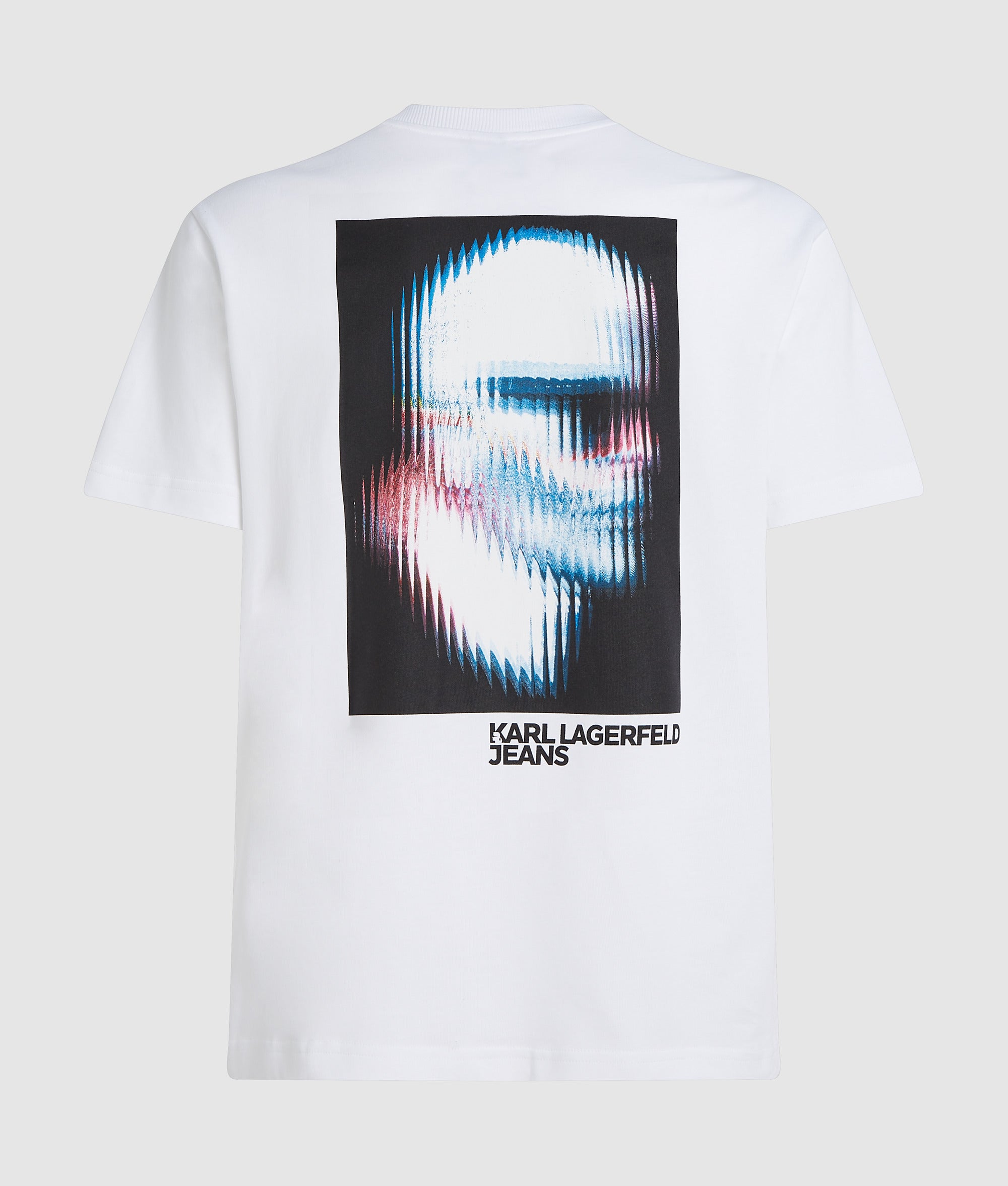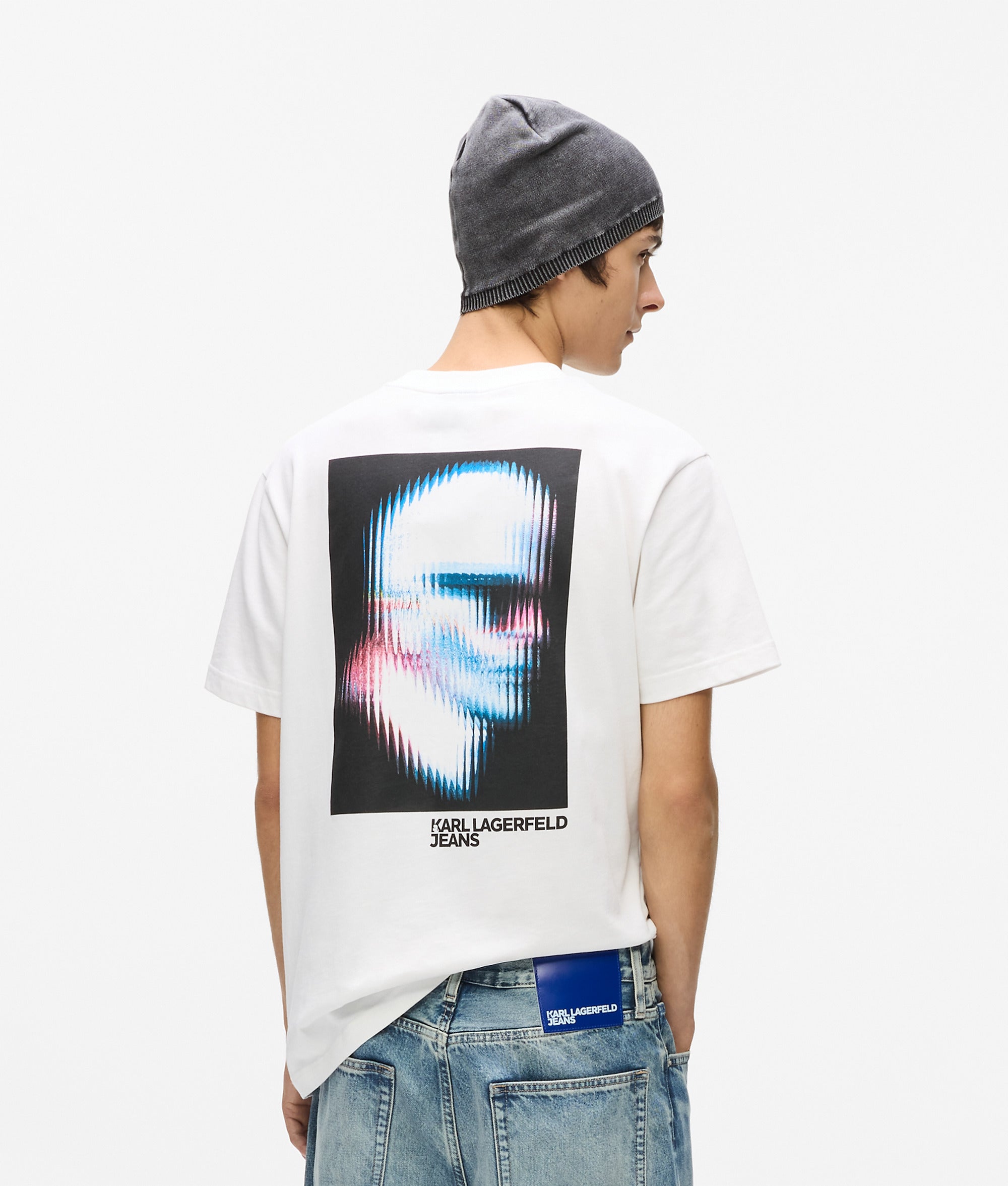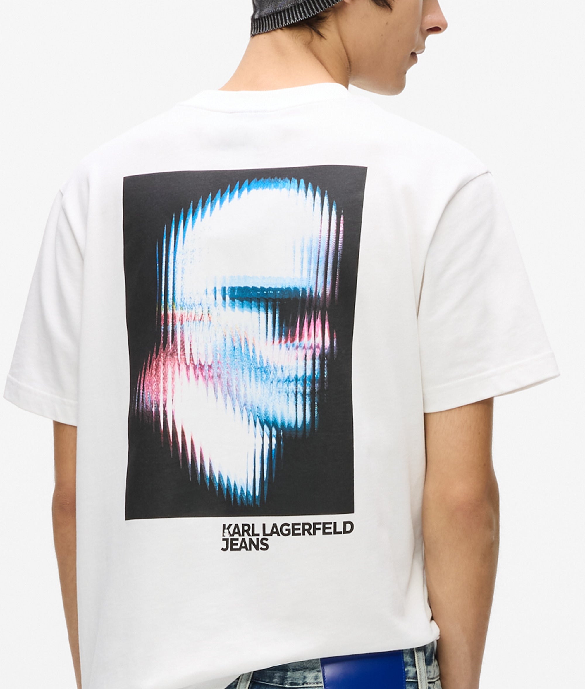 Clean at the front, bold at the back. This crew-neck T-shirt features digitized photographic artwork of the legendary Karl Lagerfeld emblazoned across the back.