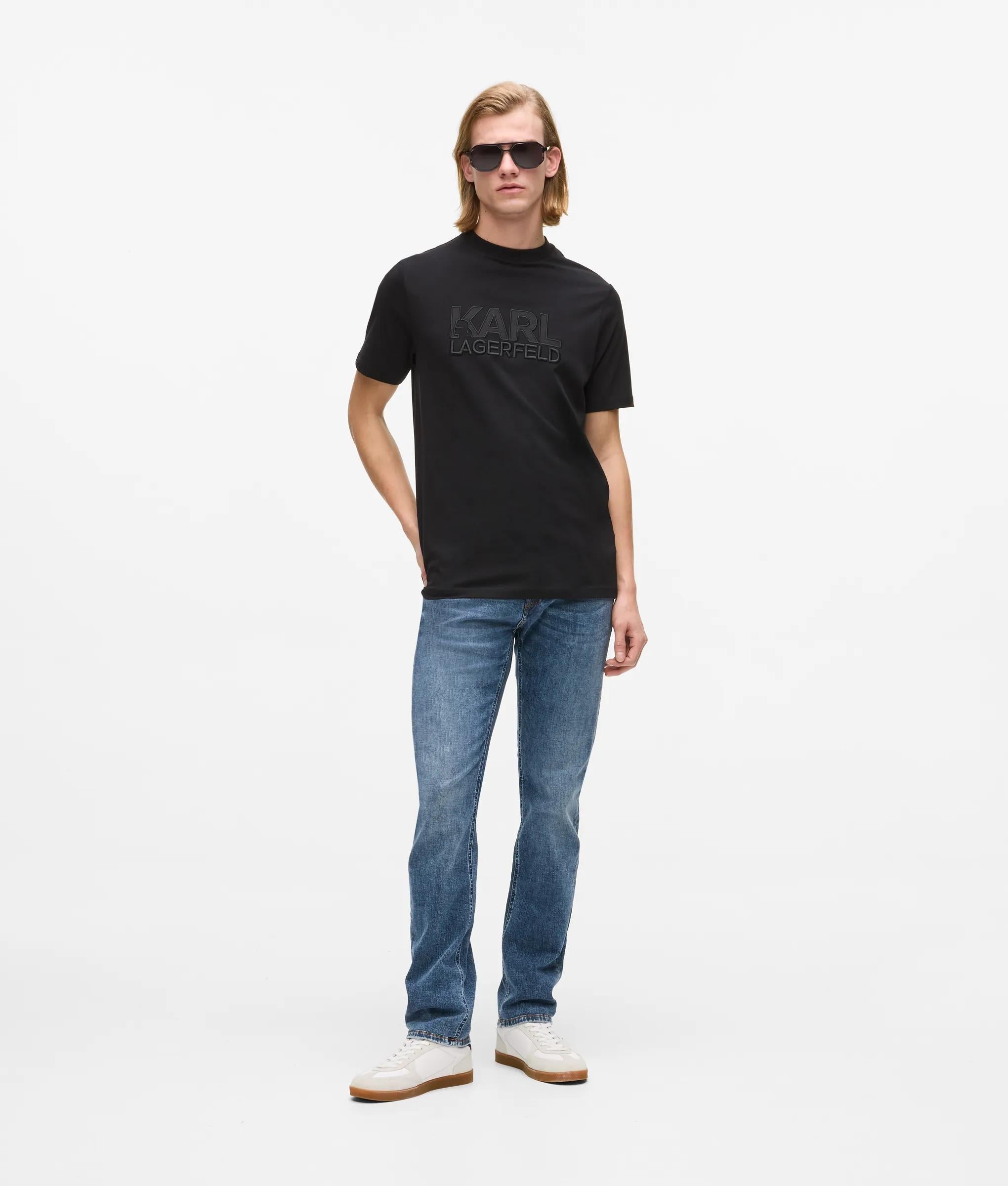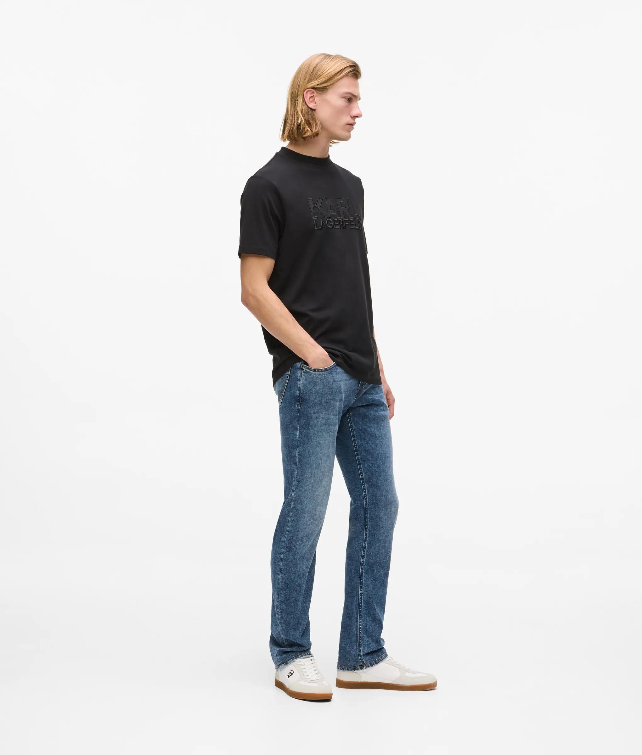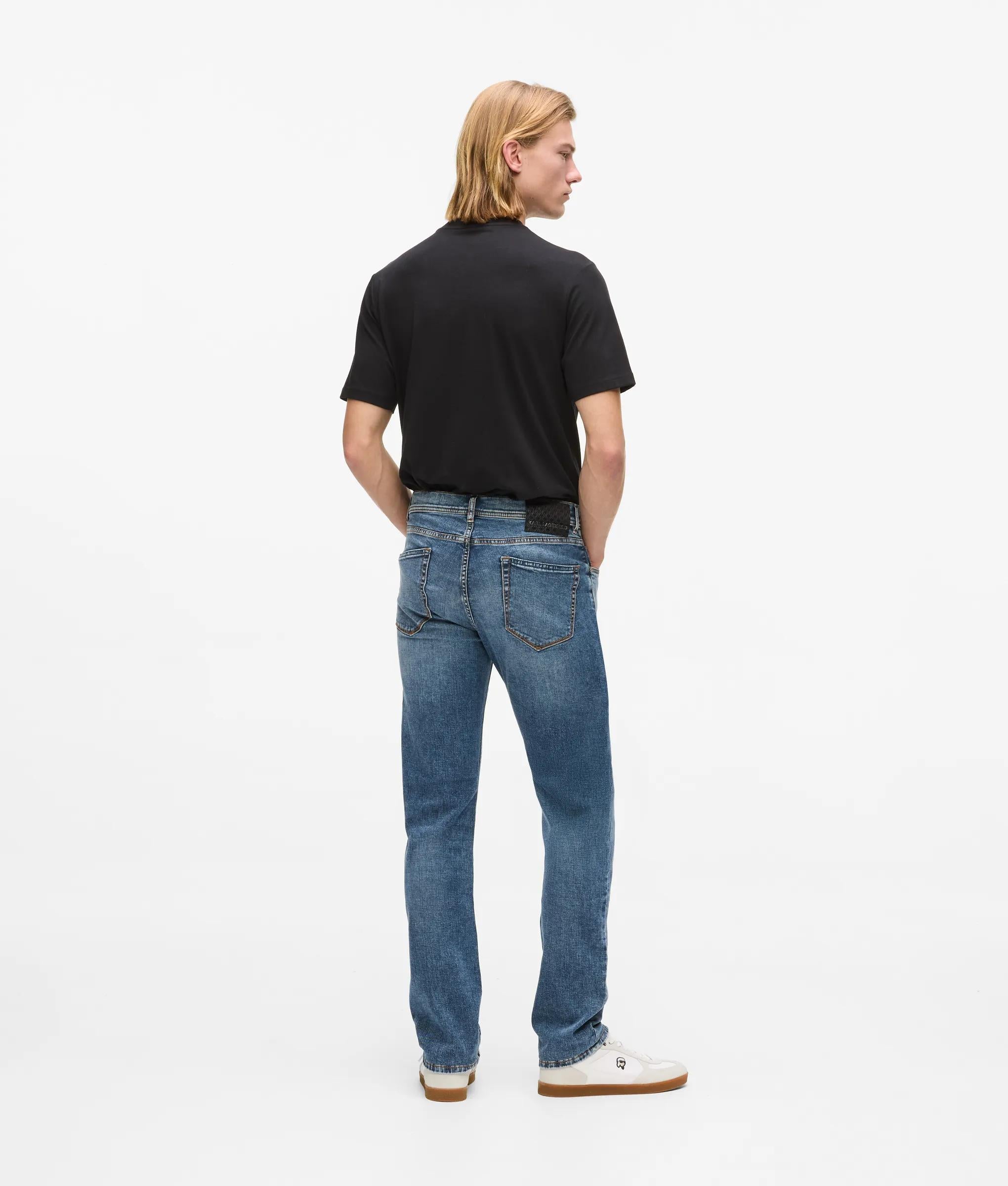 Timeless five-pocket styling meets subtle luxury in these classic jeans. Designed for versatile wear, they feature polished branded hardware and a leather patch for an elevated take on everyday ease.