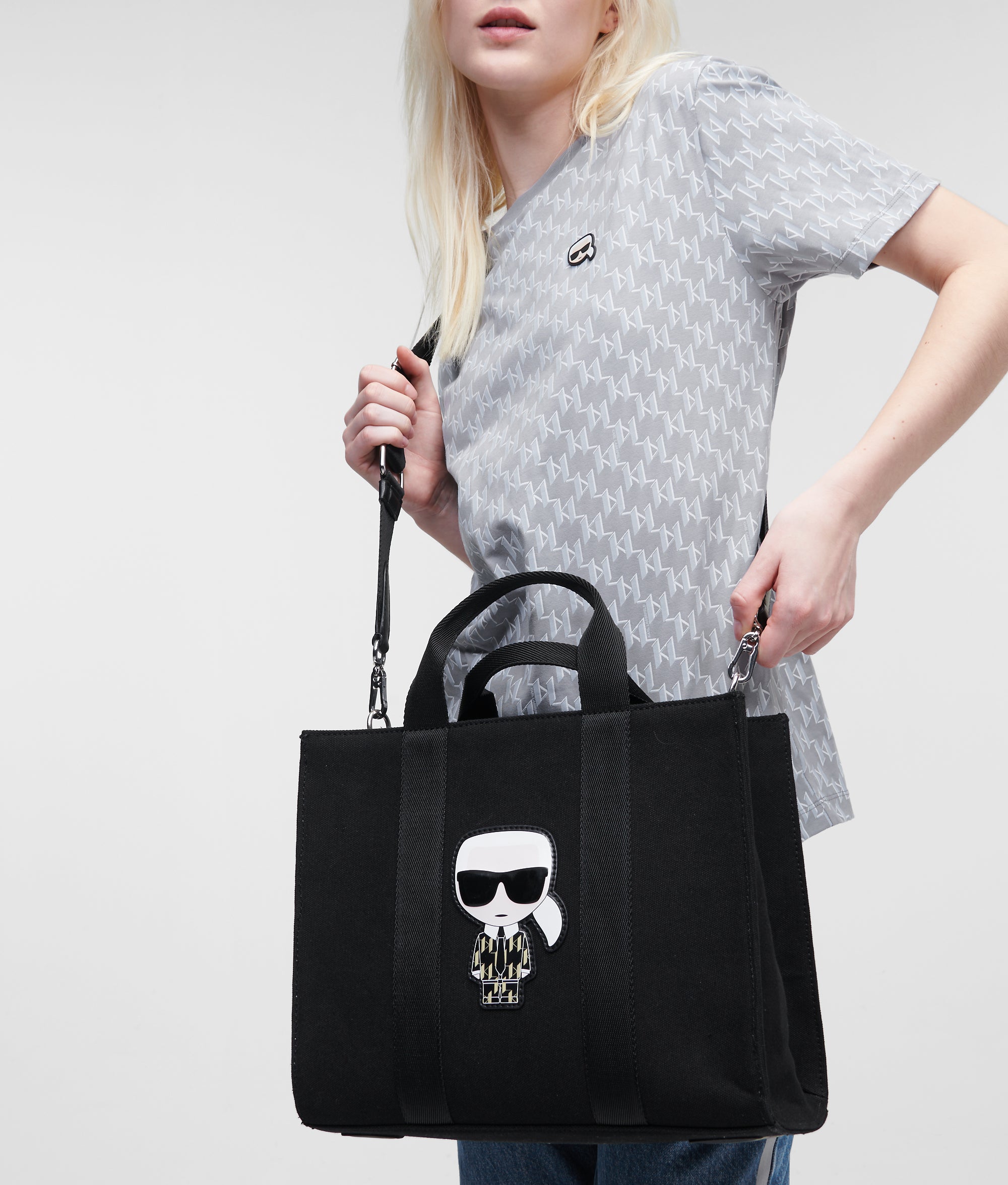 Reinforced handles and a square silhouette give this recycled cotton tote bag a sturdy, structured shape for elevated functionality. IKON Karl, dressed in monogram-embellished attire, brings a playful touch to this everyday must-have.