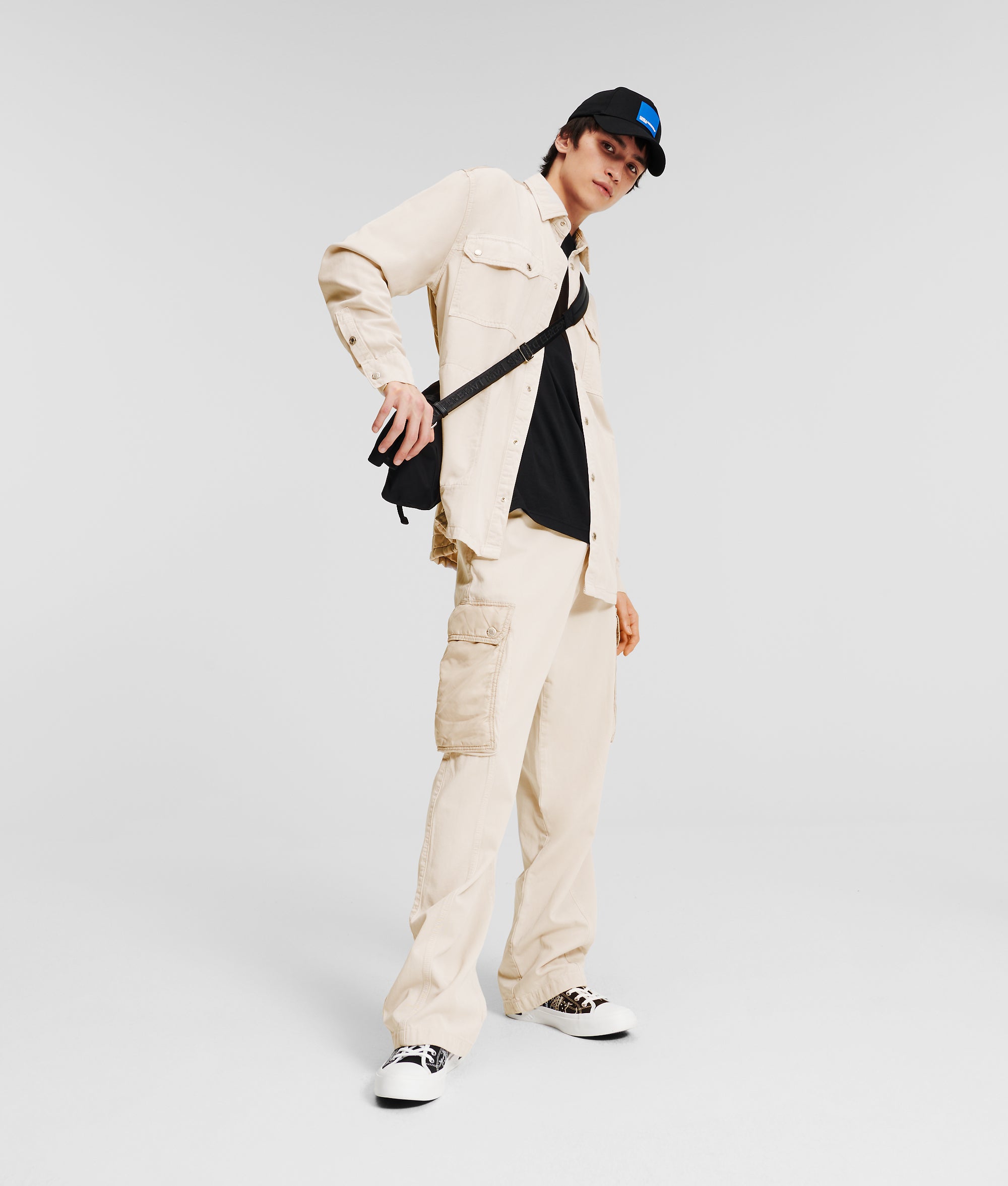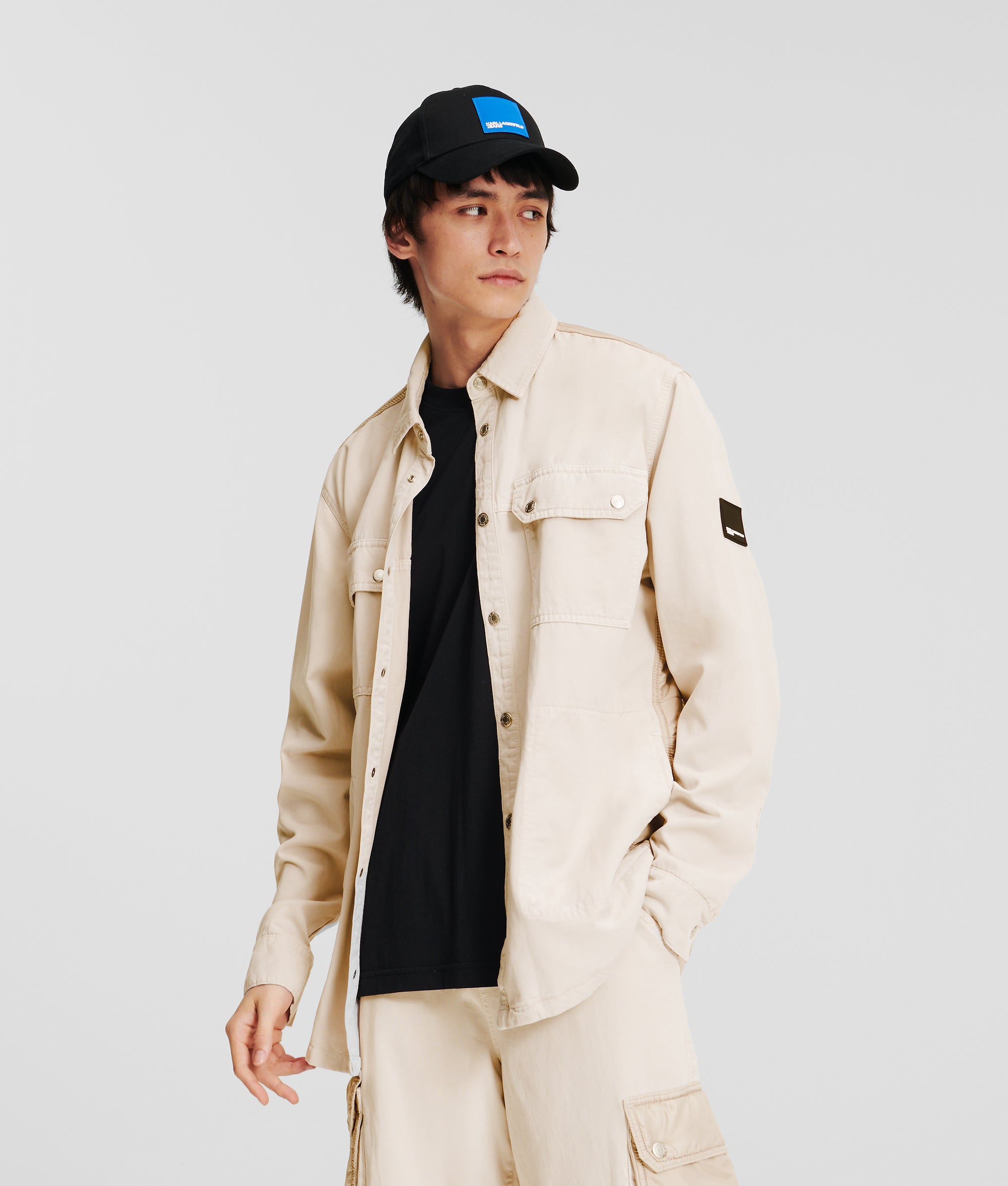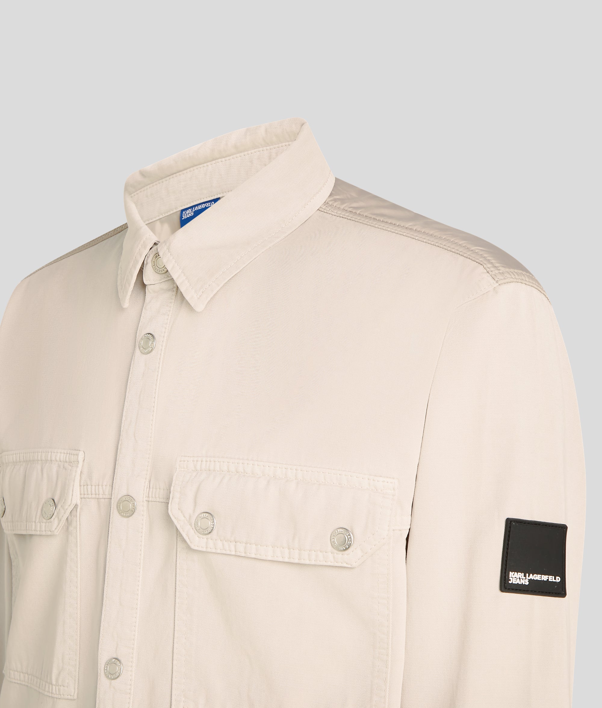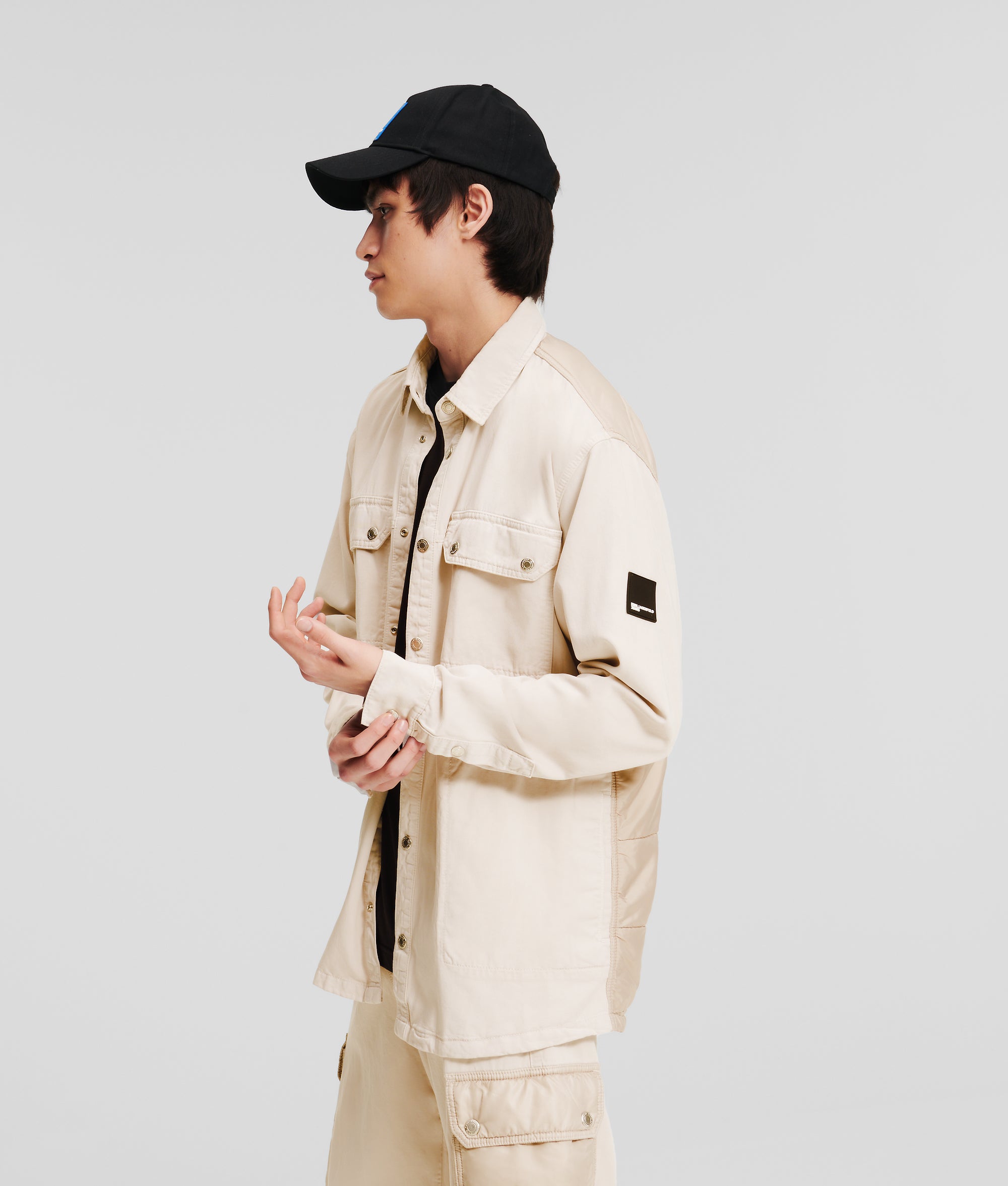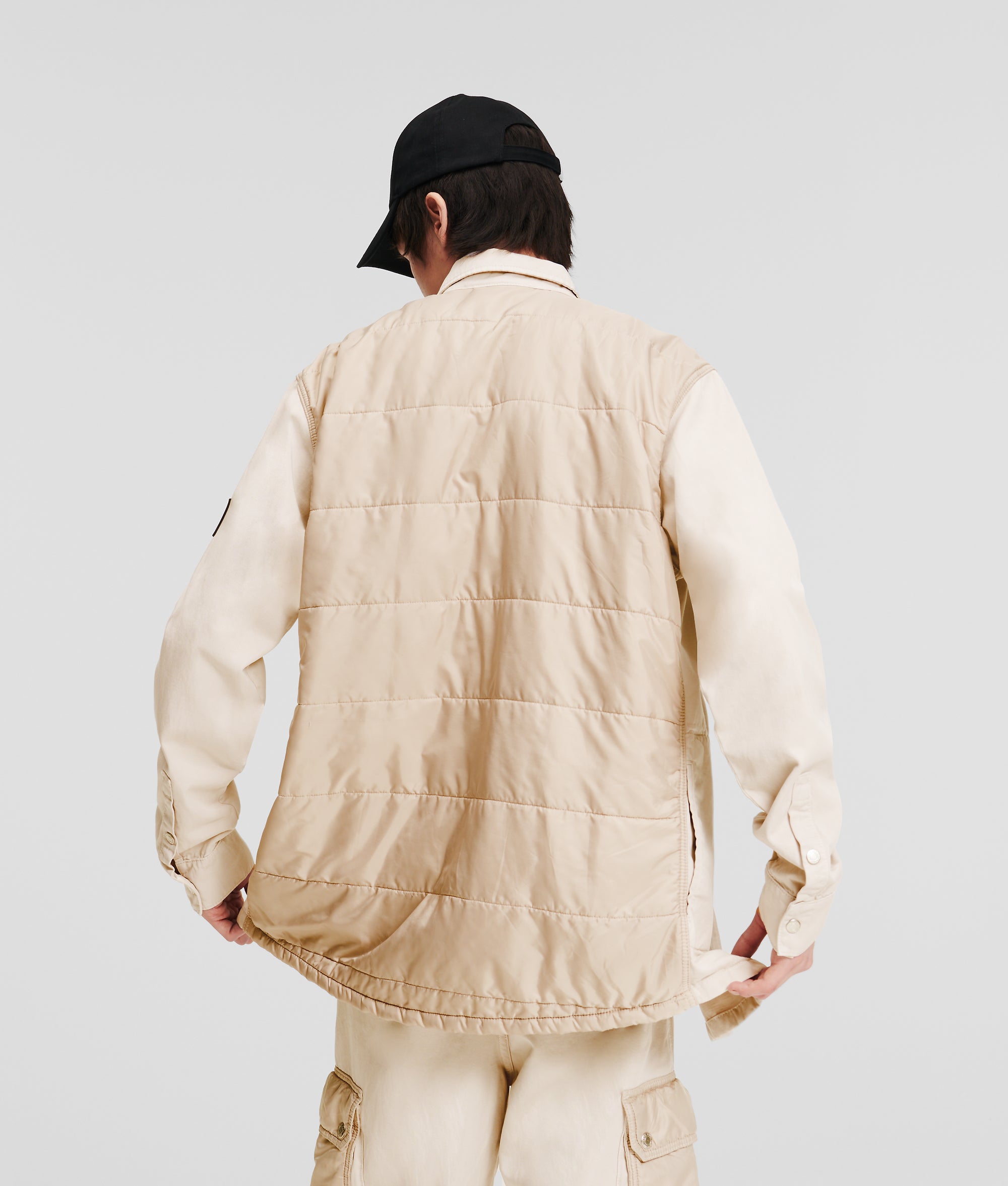 Discover a fusion of textures with this KARL LAGERFELD JEANS Overshirt, featuring line-quilting down the back. Branded snap buttons and a distinct rubber patch on the sleeve complete the modern statement piece.
