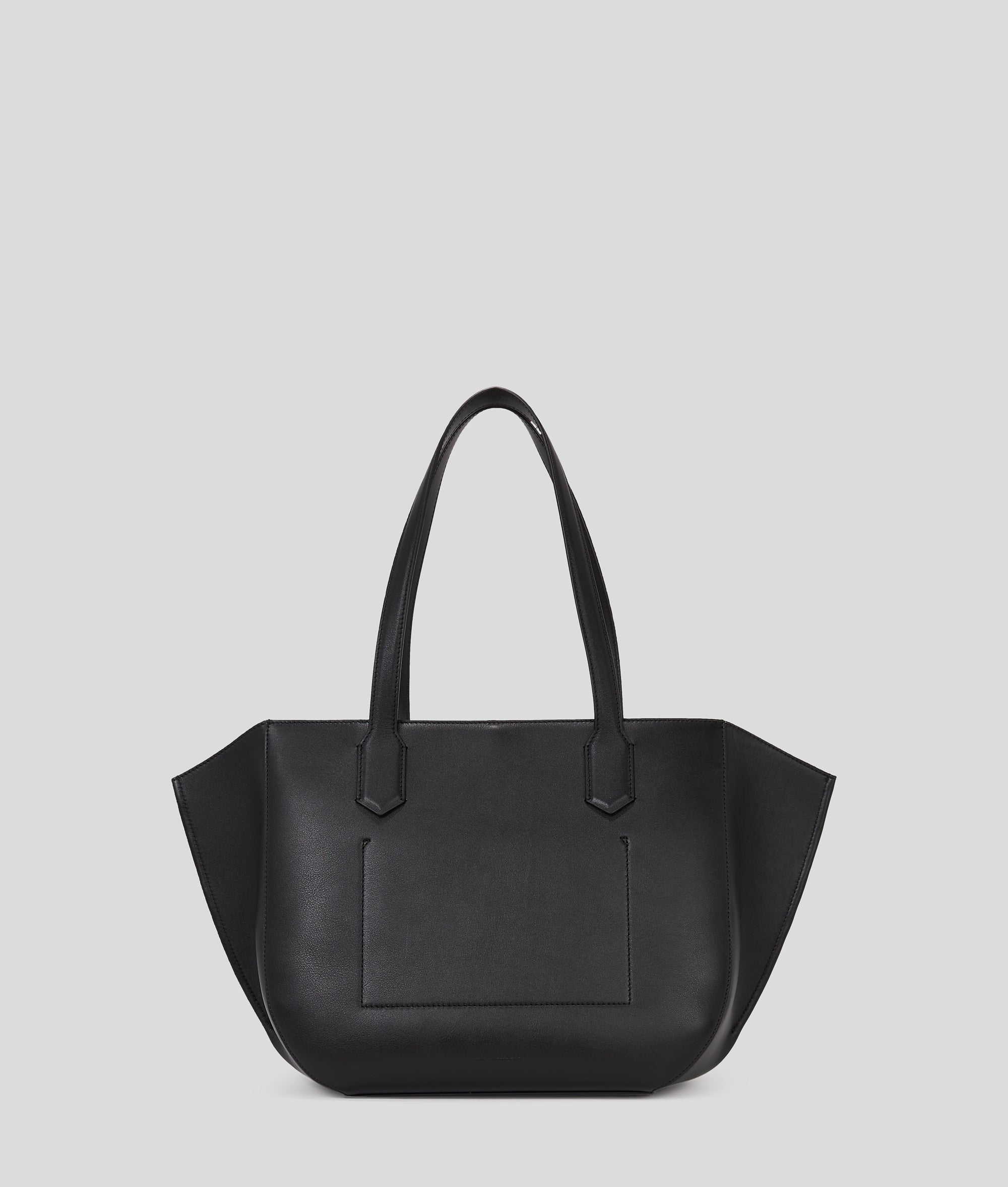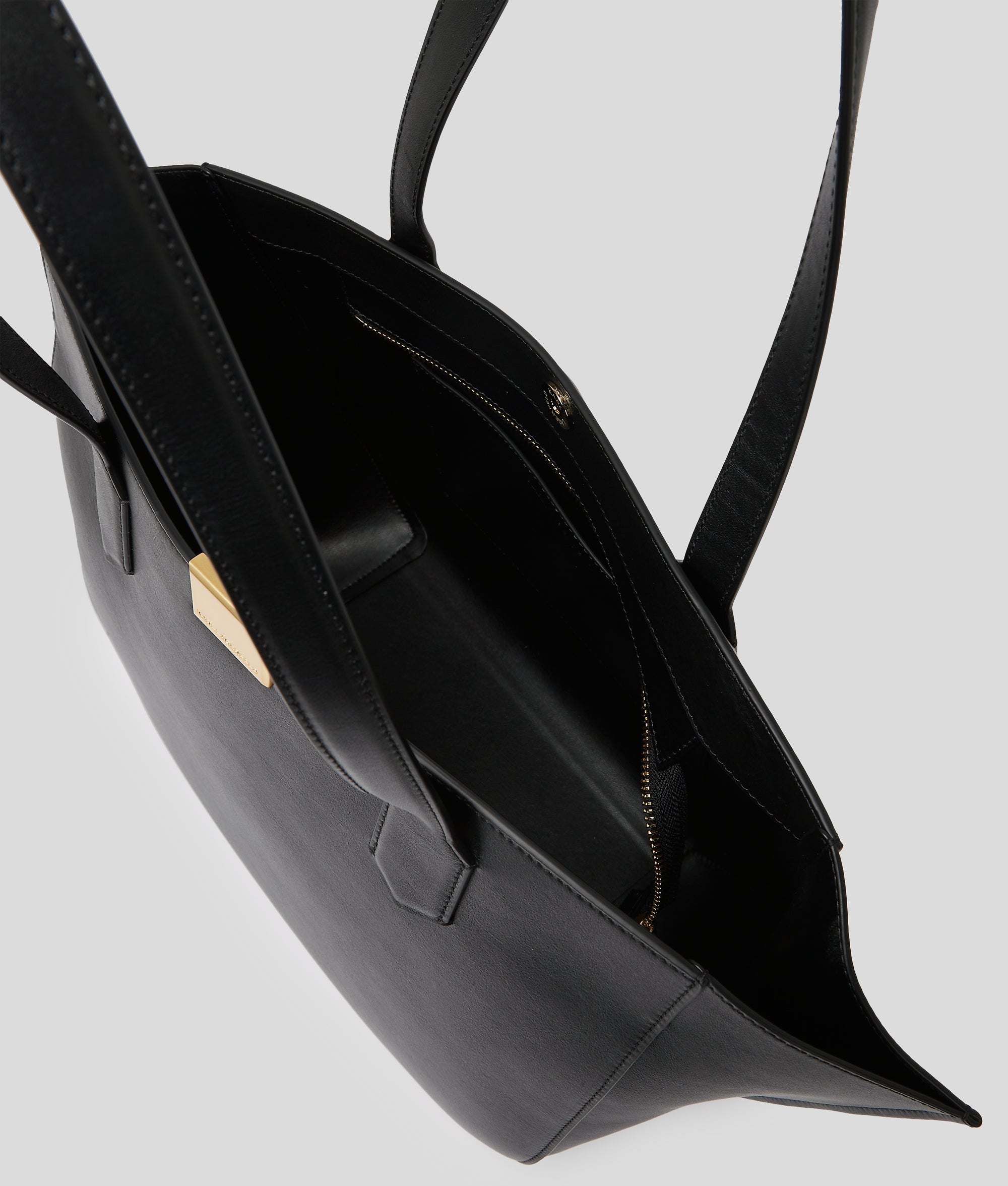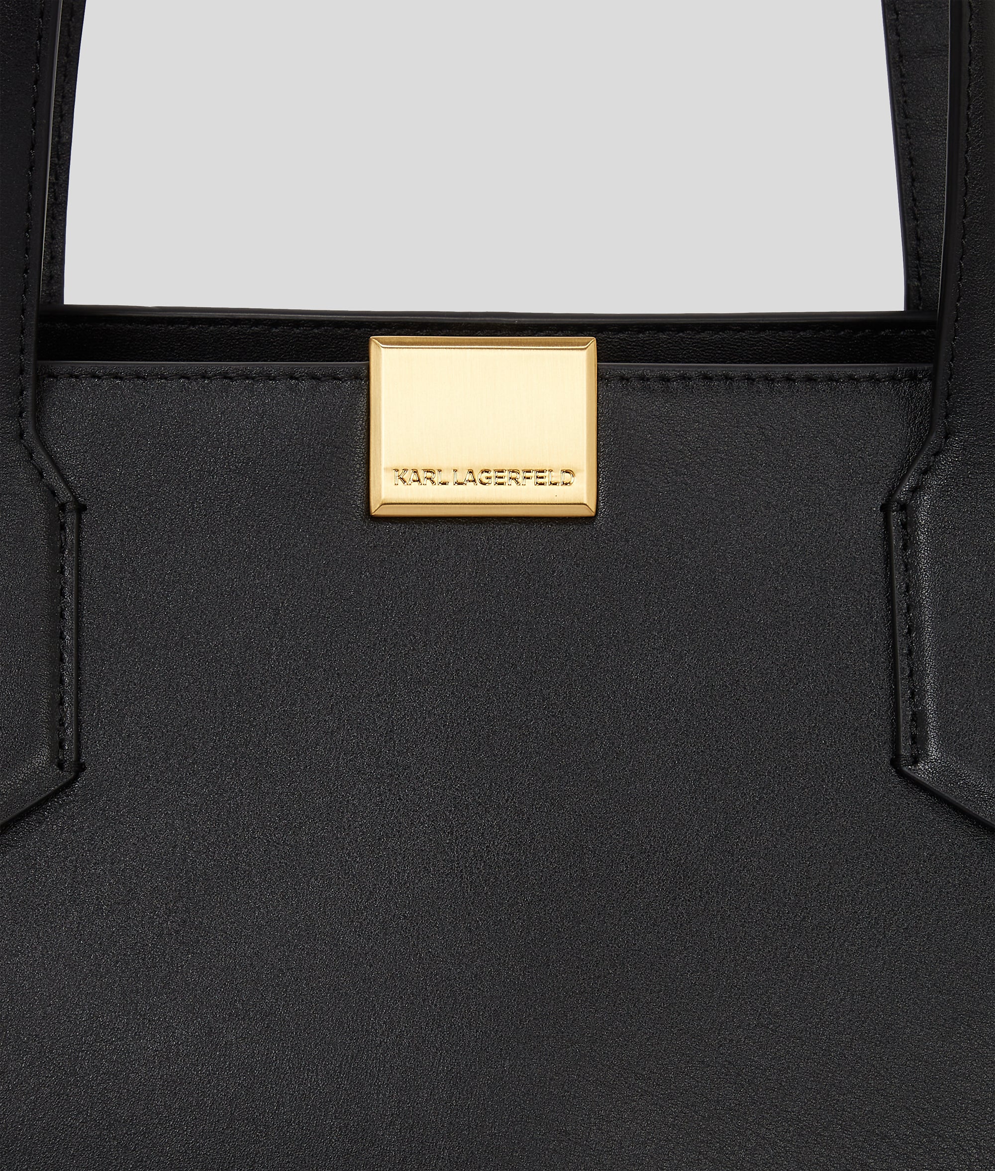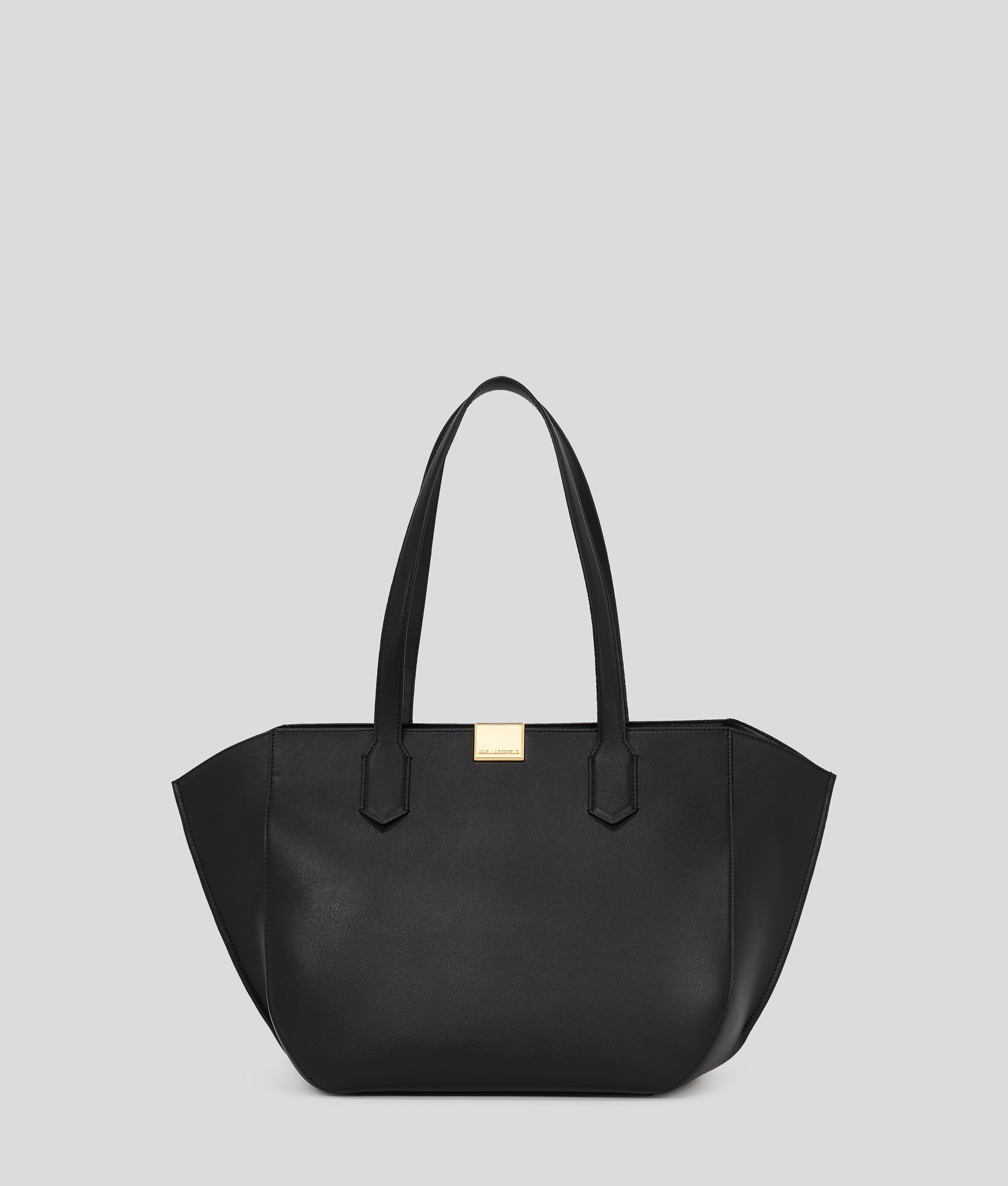 This tote bag features a spacious east-west silhouette, perfect for daily essentials and even your laptop. Twin straps offer versatile carrying options, while a chic square metal plaque showcasing the KARL LAGERFELD logo adds a touch of iconic style.