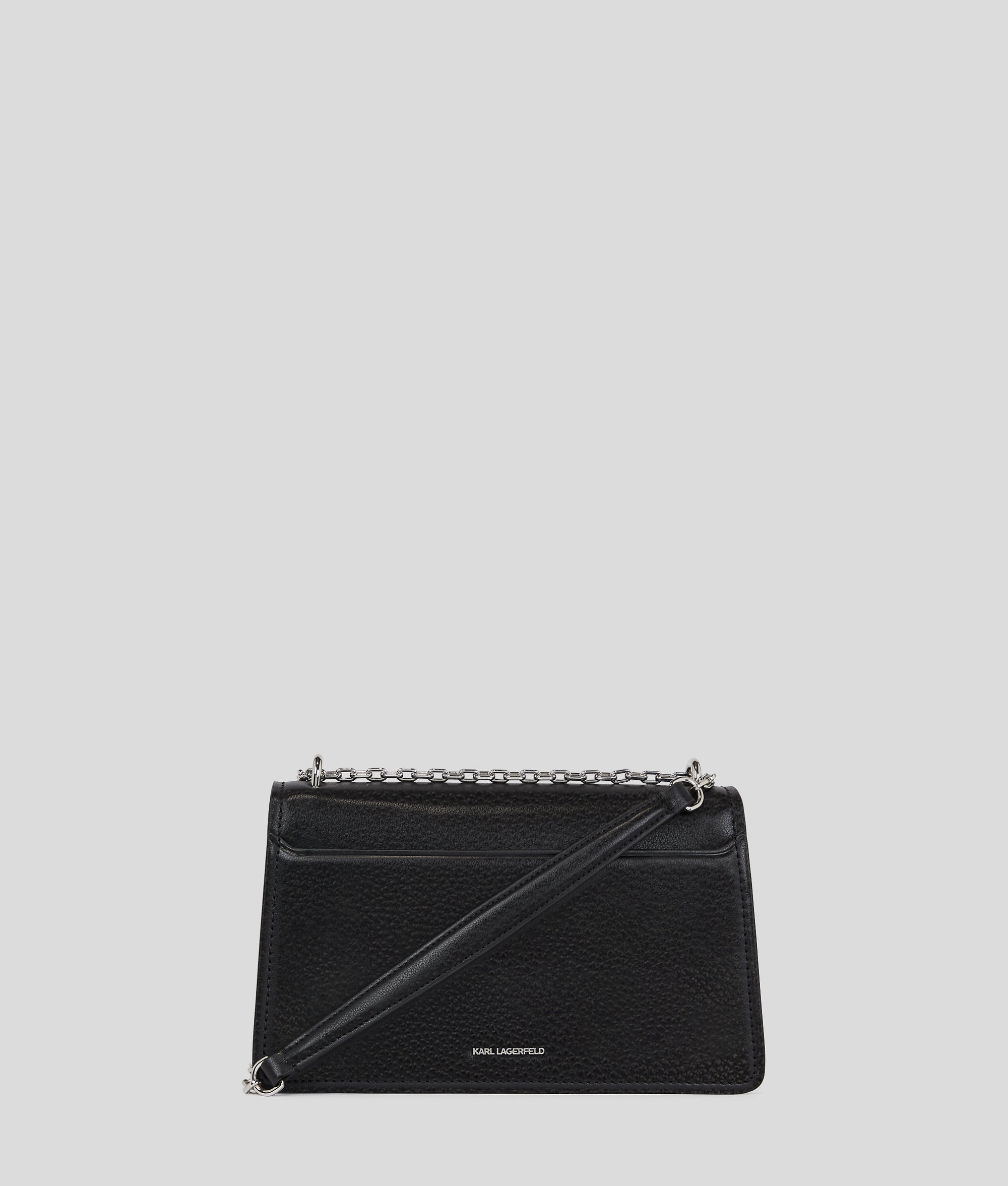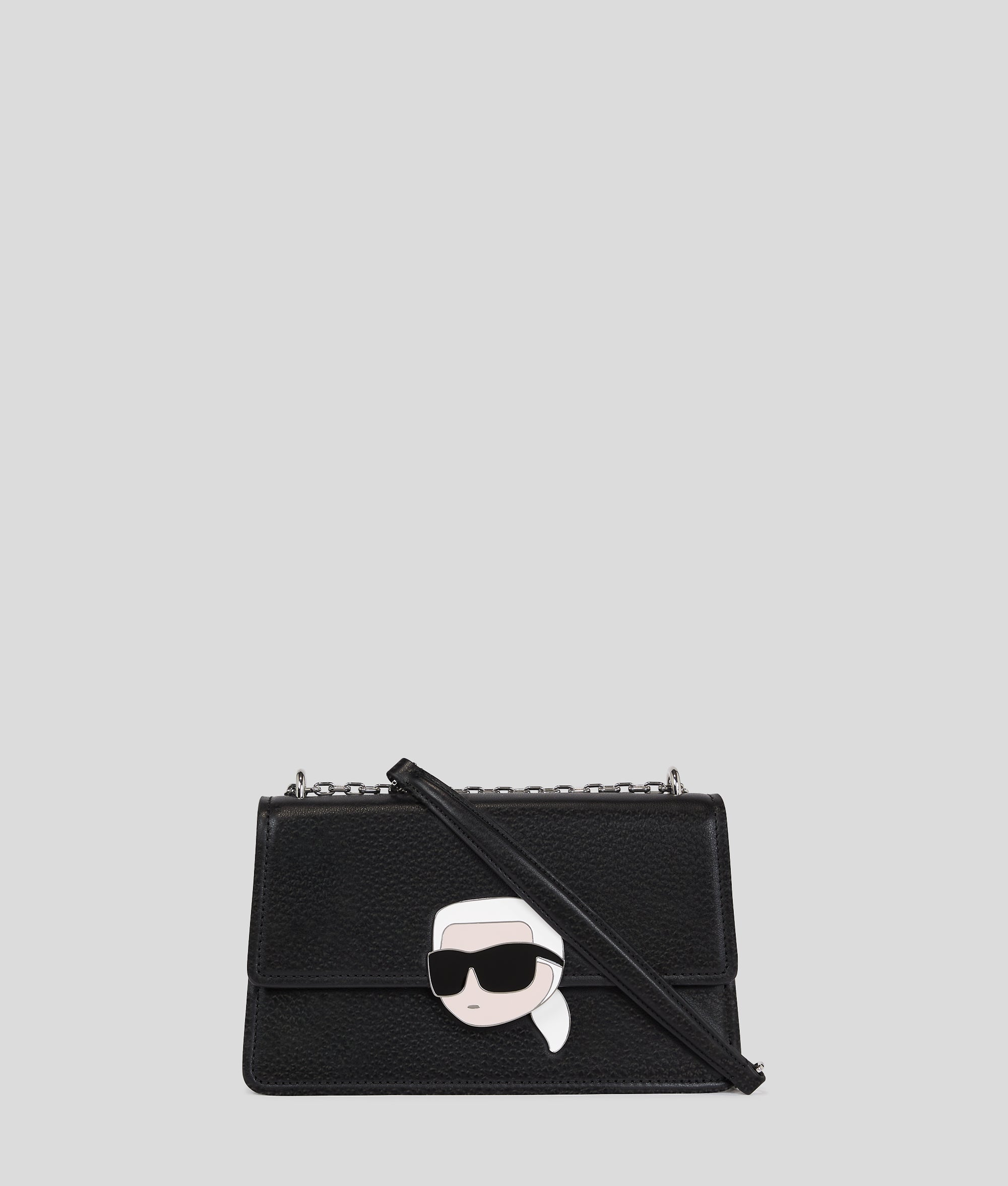 Showcasing a unique IKON motif lock closure, this shoulder bag adds a touch of individuality to everyday accessorizing. The technical leather and chain strap enhance its chic appeal, while the distinctive pebble finish elevates any ensemble.