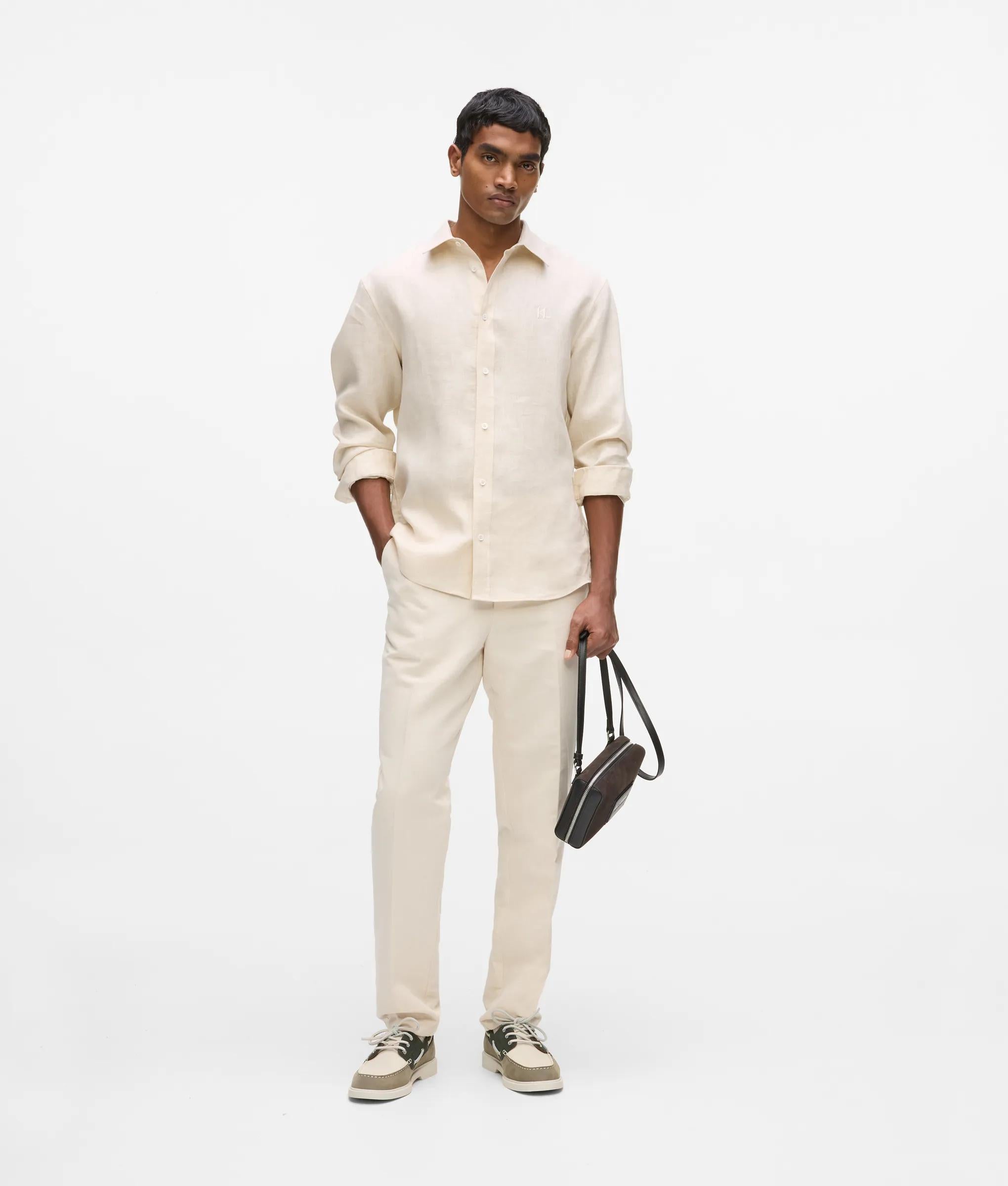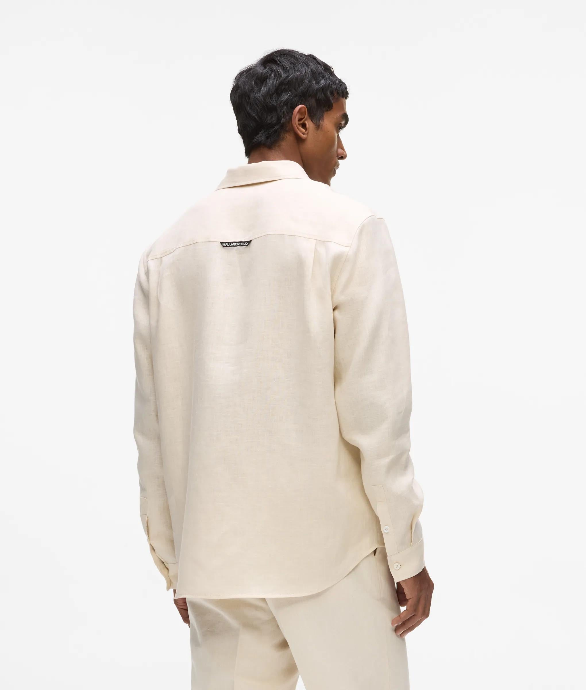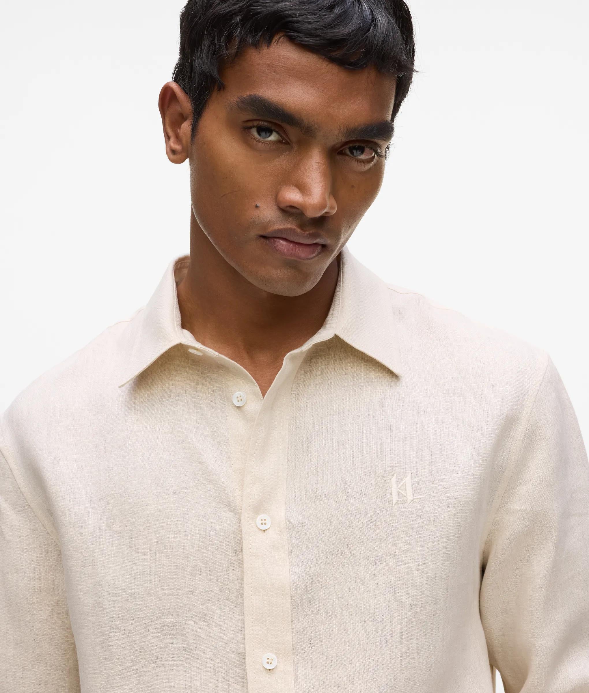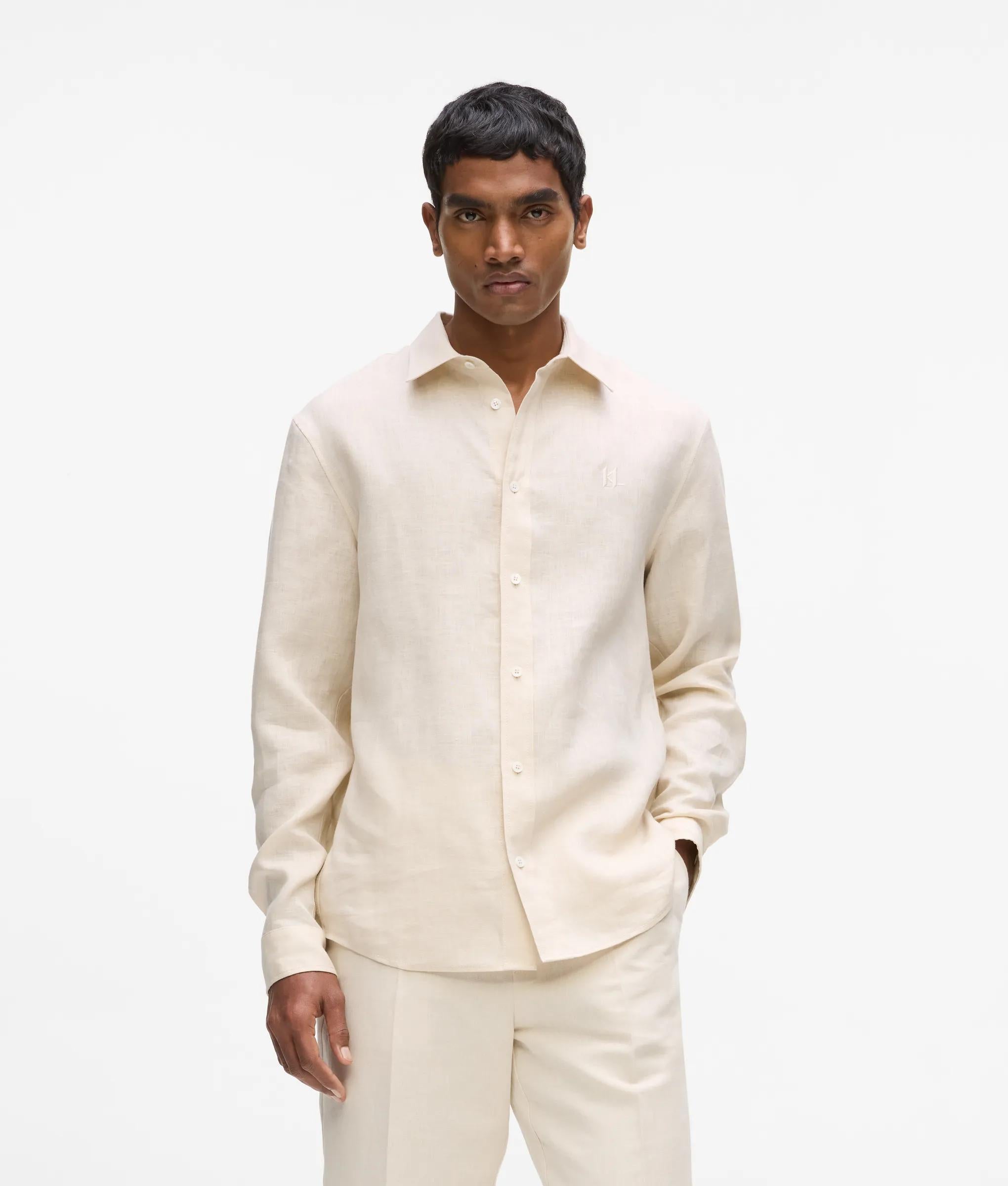 Crafted in lightweight, breathable linen, this classic long-sleeved shirt embodies a refined-yet-breezy aesthetic. Featuring a pointed collar and button fastenings, complemented by subtle KARL Monogram embroidery at the chest.