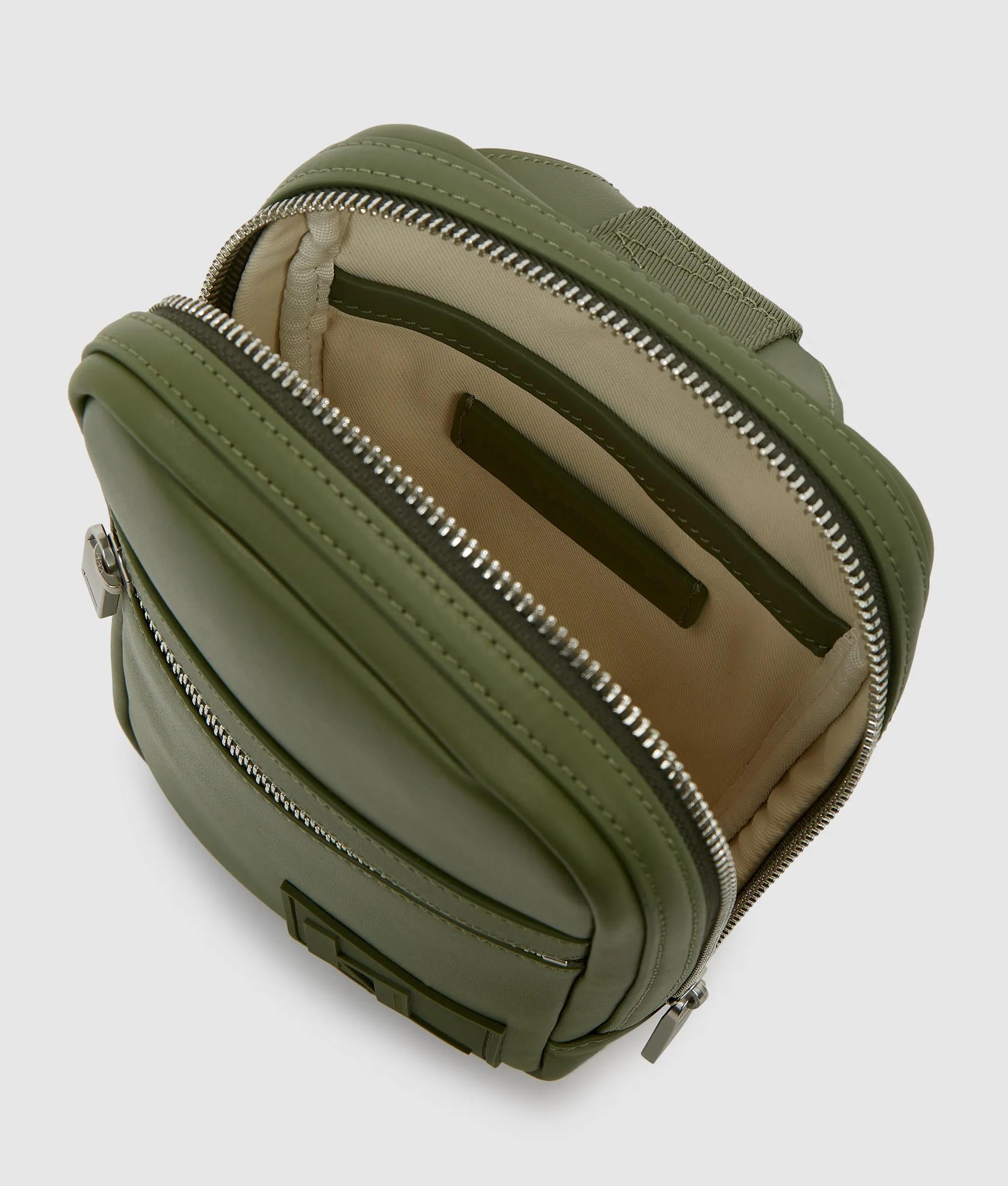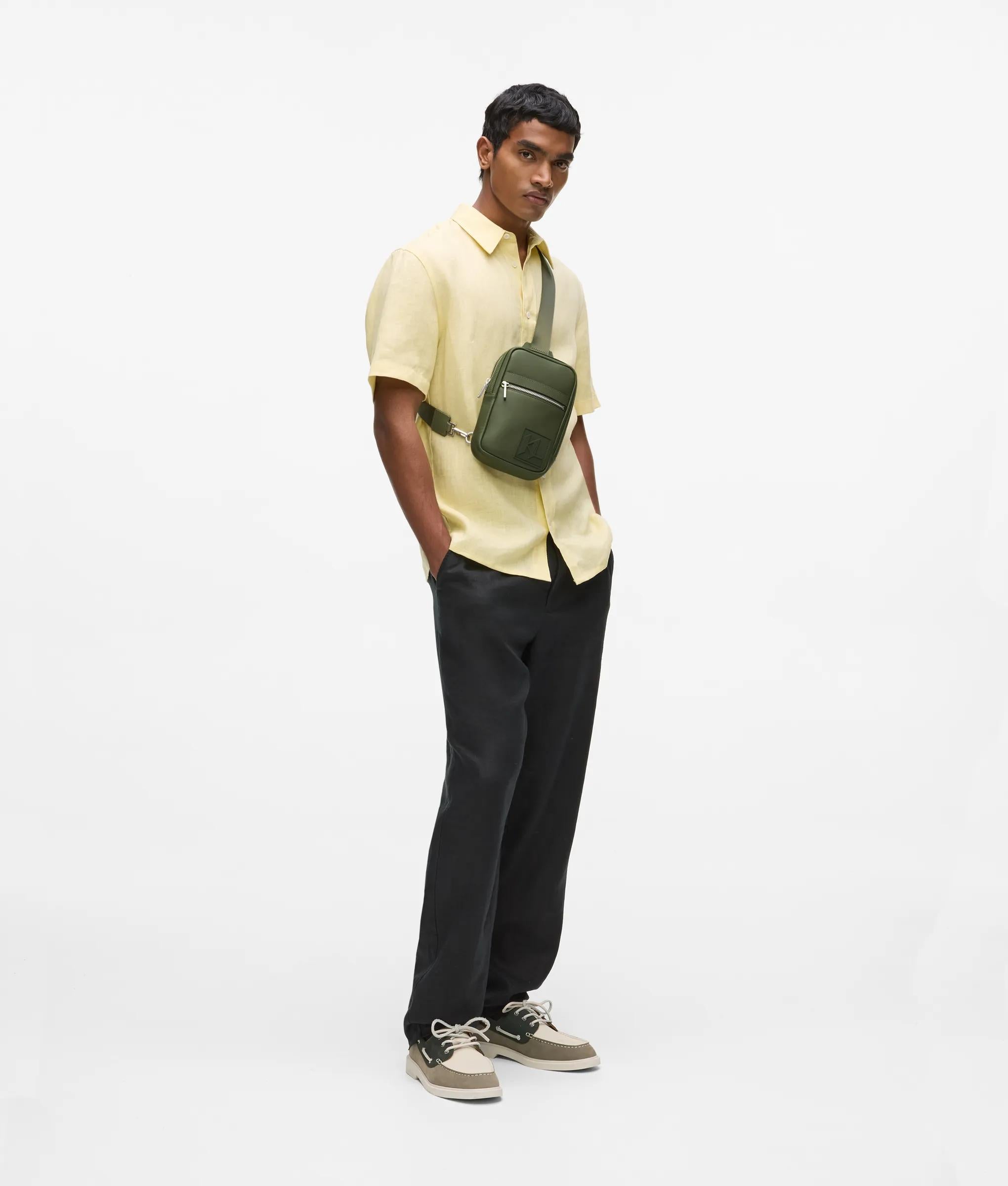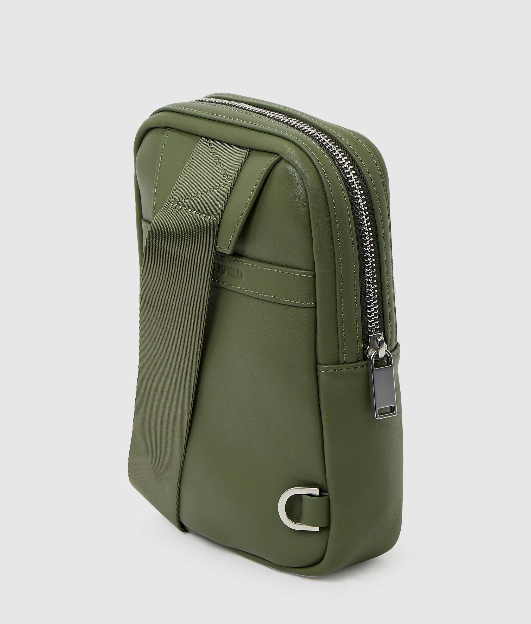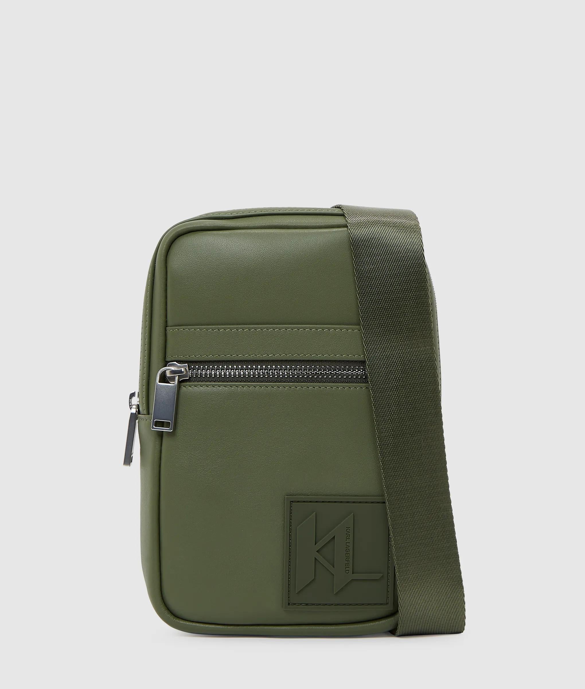 This sling bag blends faux-leather softness with a silver zip closure for a refined touch. The adjustable strap ensures a perfect fit, while the KL monogram patch adds iconic style. Ideal for effortless days and nights.