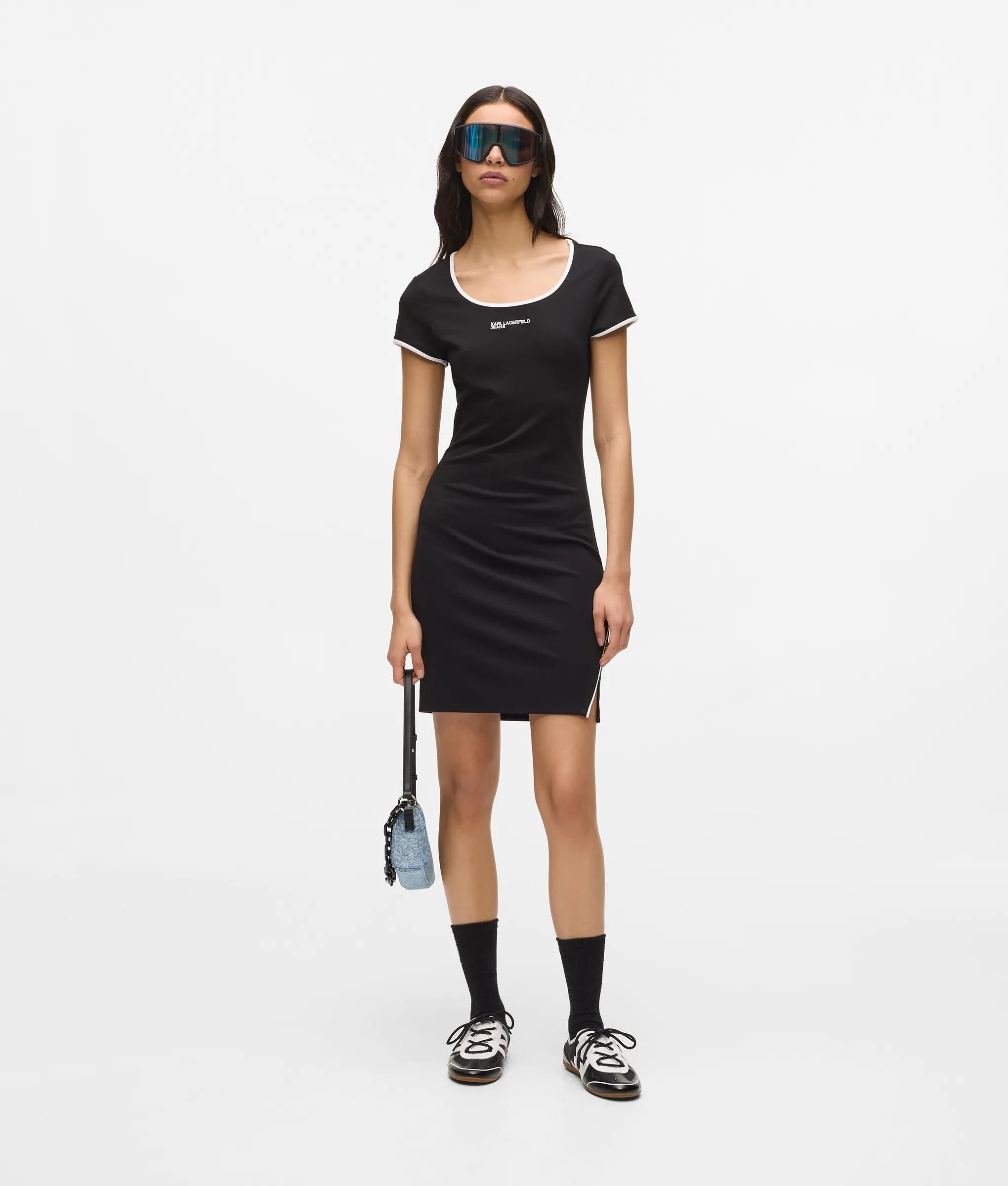 This short-sleeved mini dress will be forever in rotation. Made from comfortable jersey, the summer staple is finished with contrasting piping at the neckline for a touch of Y2K attitude.