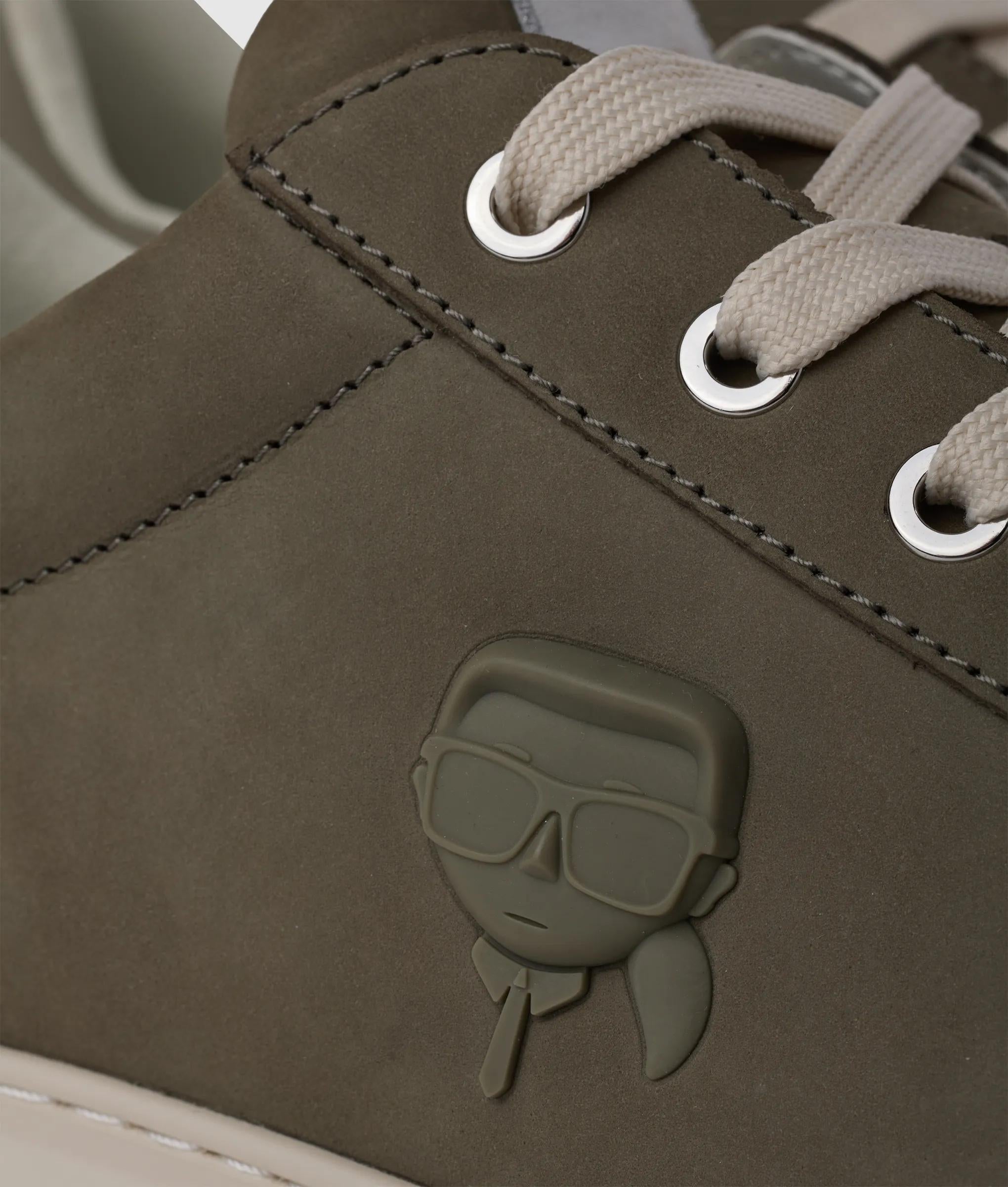 Elevate everyday style with these lace-up sneakers, anchored by an Ikon Karl motif for a playful touch. A classic contrasting heel counter and outsole offer a timeless look.
