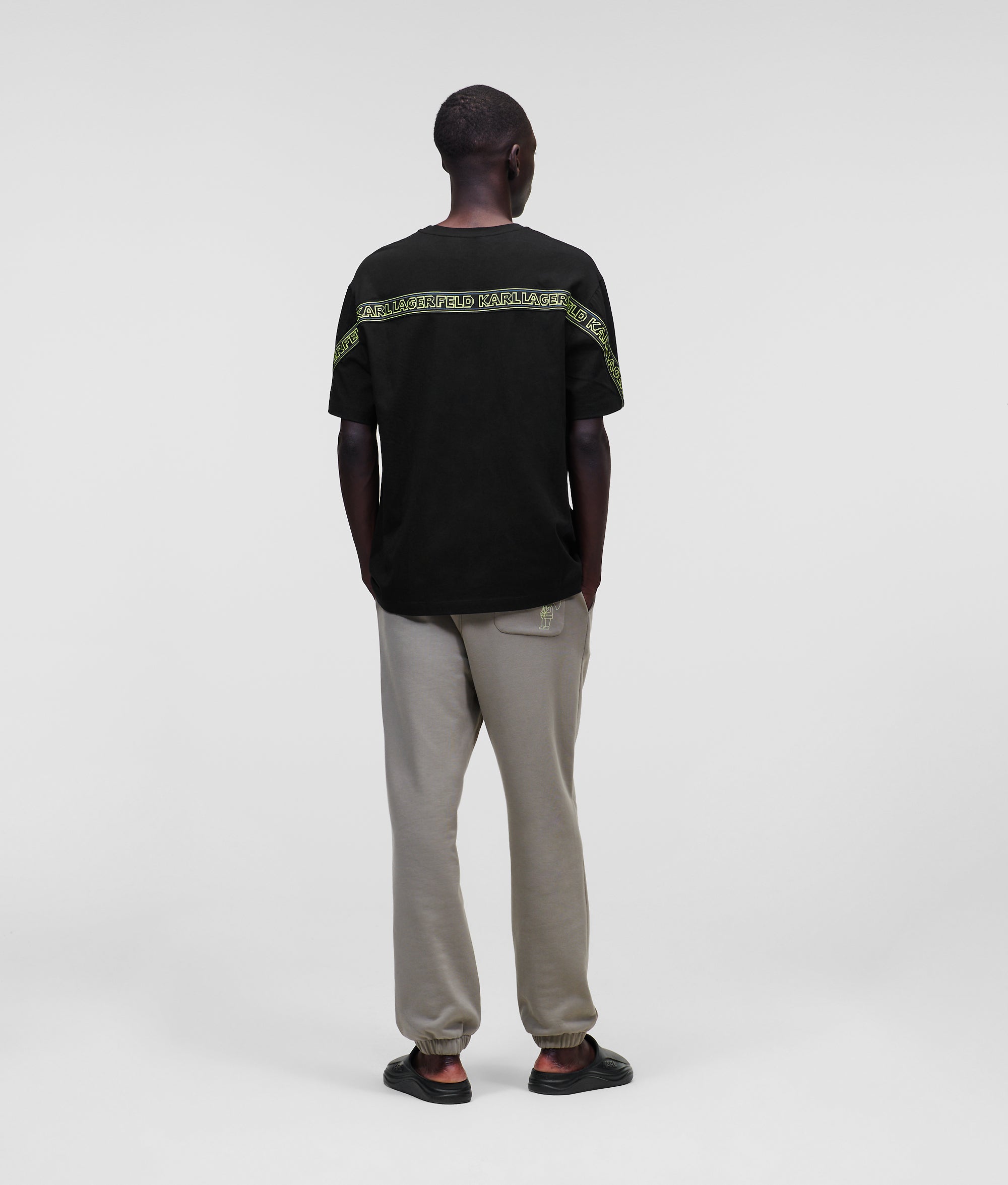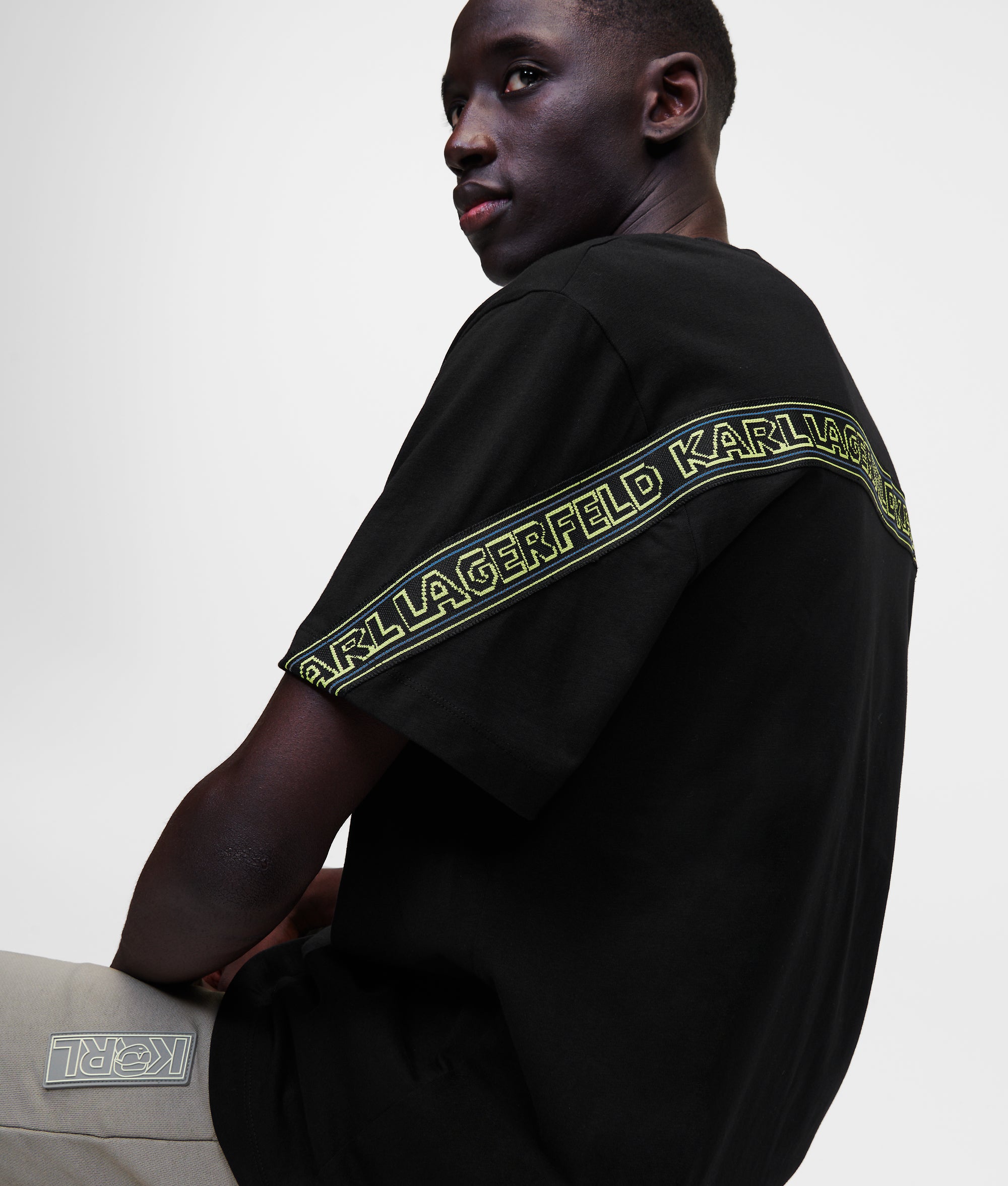 Statement KARL logo tape running across the back shoulders and sleeves gives the casual crew-neck T-shirt a bold refresh. This elevated tee is cut from organic cotton and features an oversized fit for contemporary-cool styling.