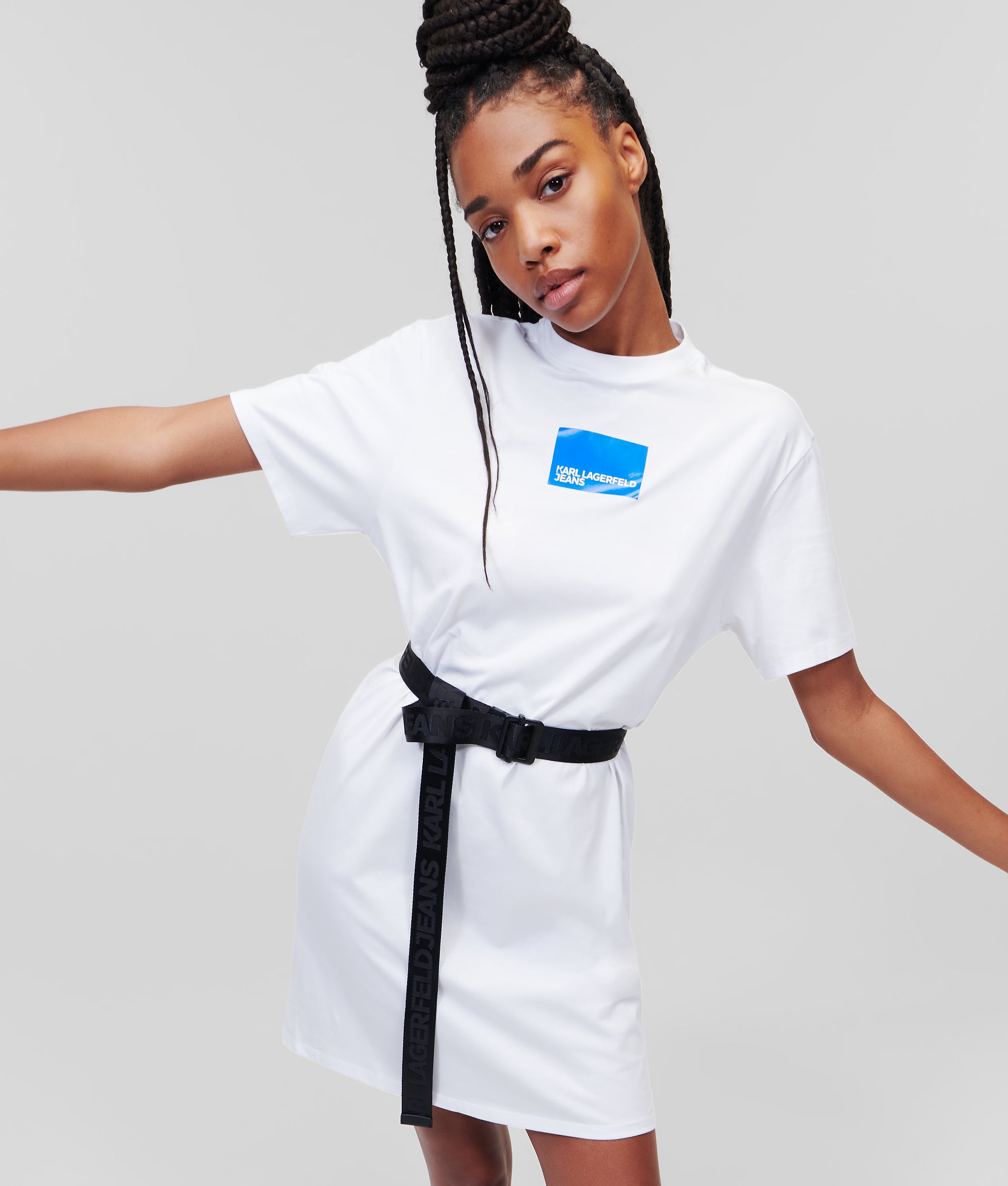 A must-have for off-duty days. This straight-fit T-shirt dress is made from ultra-soft organic cotton. High-shine KLJ artwork printed at the chest adds a vibrant finish to the casual classic.