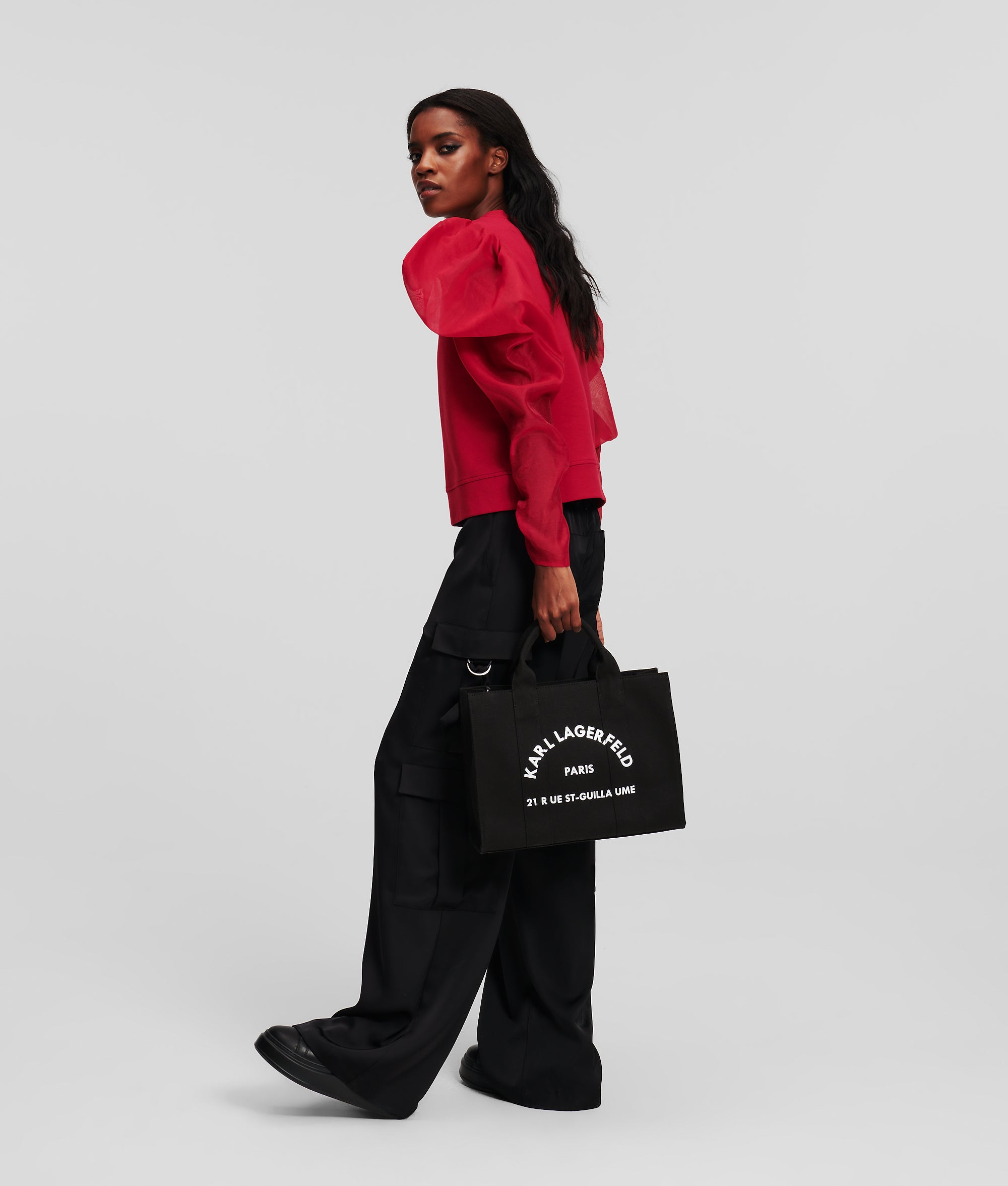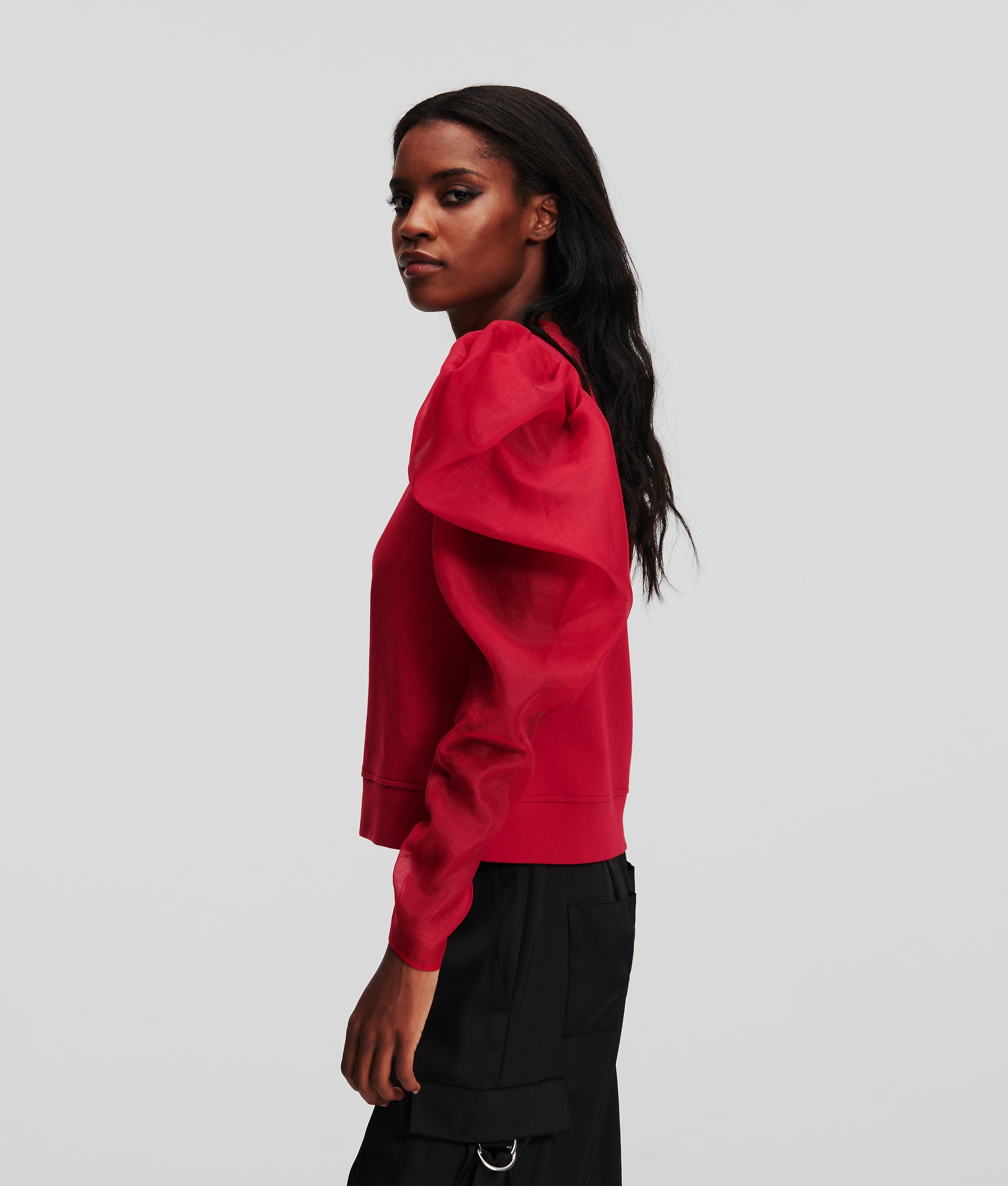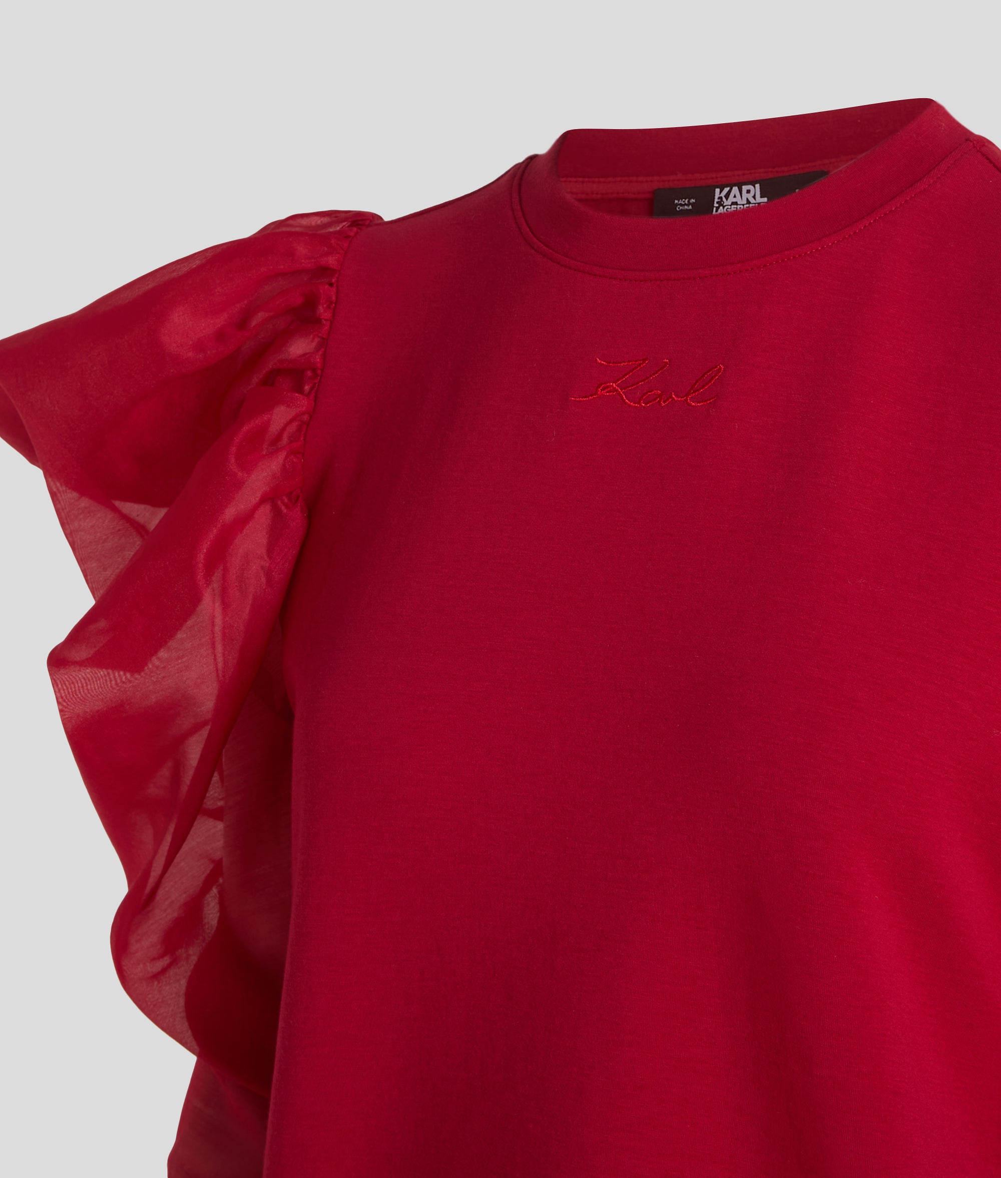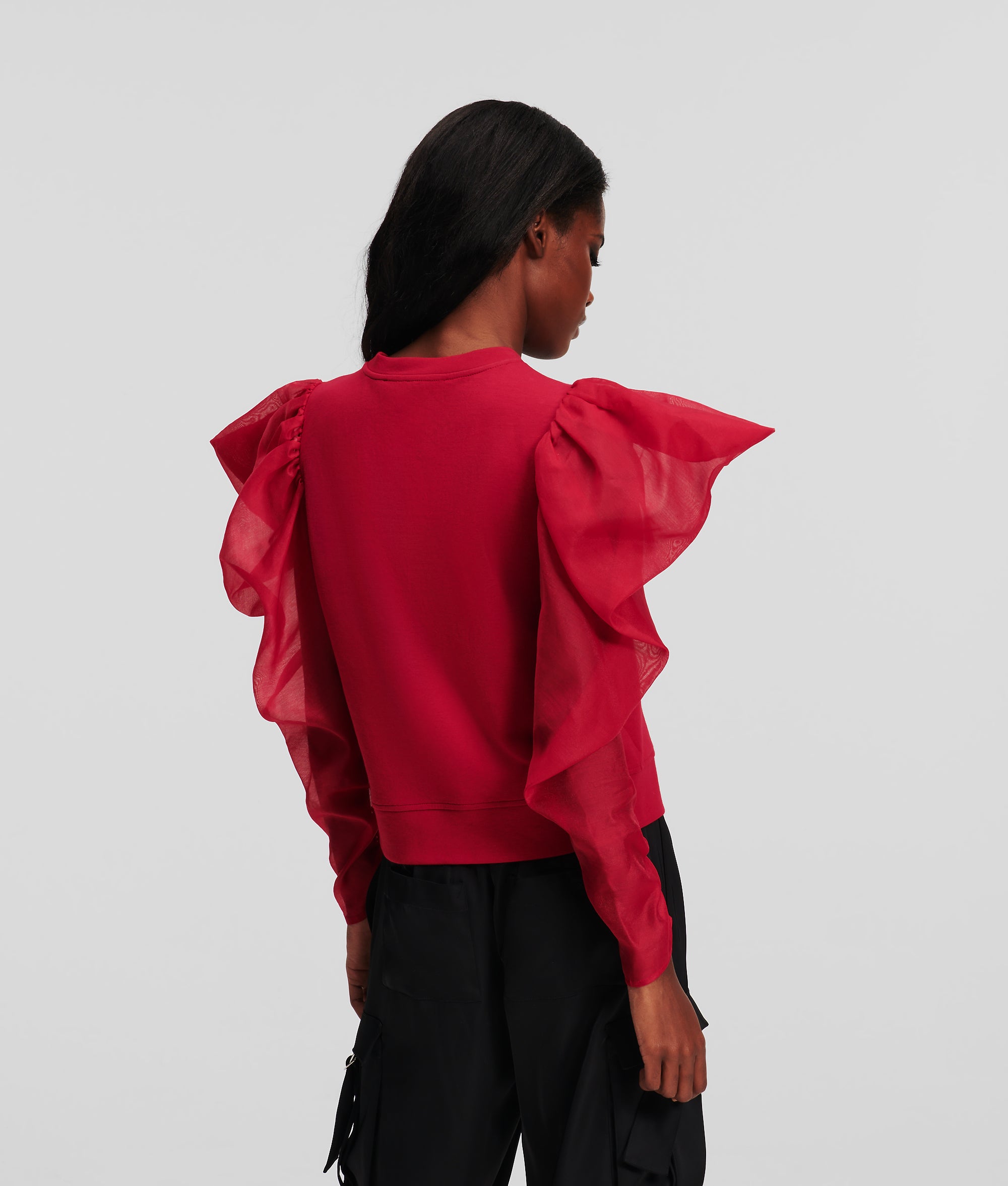Sheer, voluminous ruffled sleeves bring a romantic flourish to this fashion-forward sweatshirt. Pair with your favorite KARL jeans for casual styling or dress up with leather leggings.