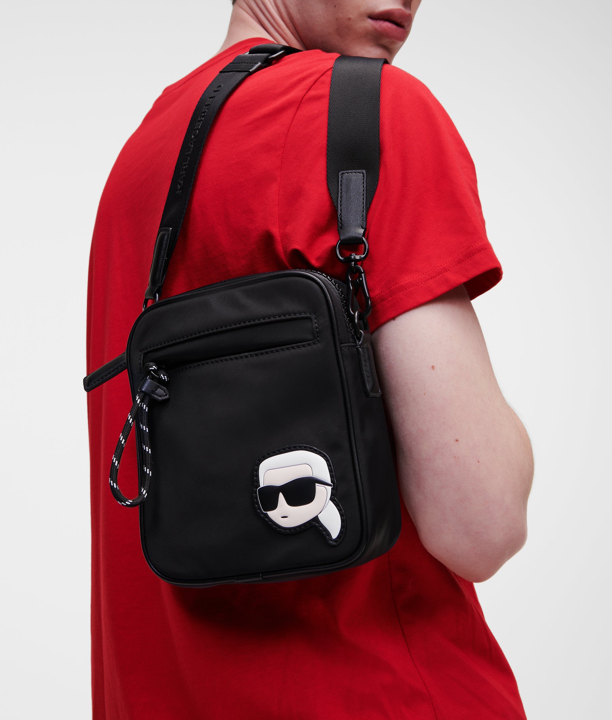 A classic silhouette, clean lines, and functional detailing make this crossbody bag an everyday accessory essential. Made from durable nylon, this casual-cool staple is adorned with a KARL logo webbing strap and leather IKON Karl artwork patch.