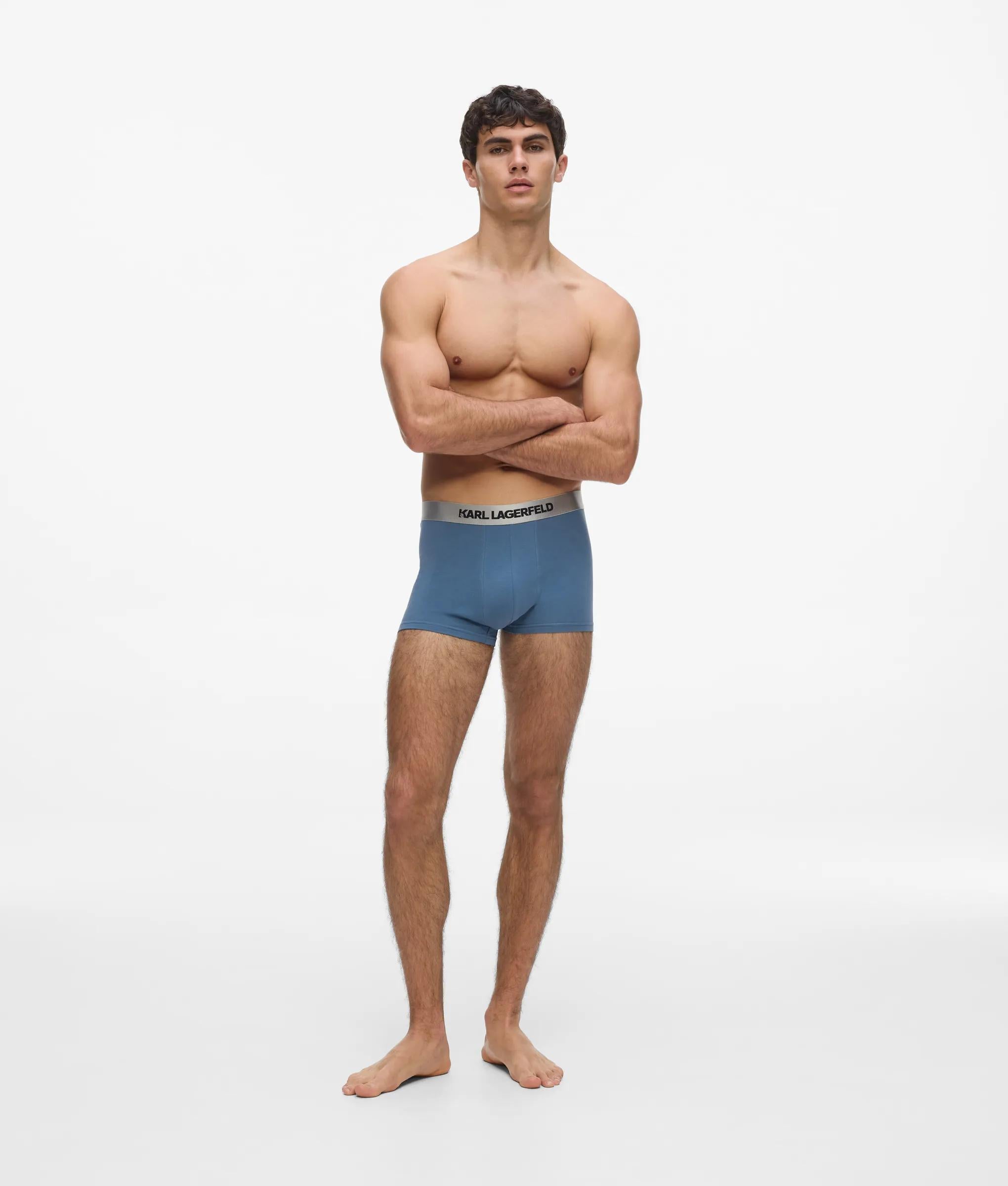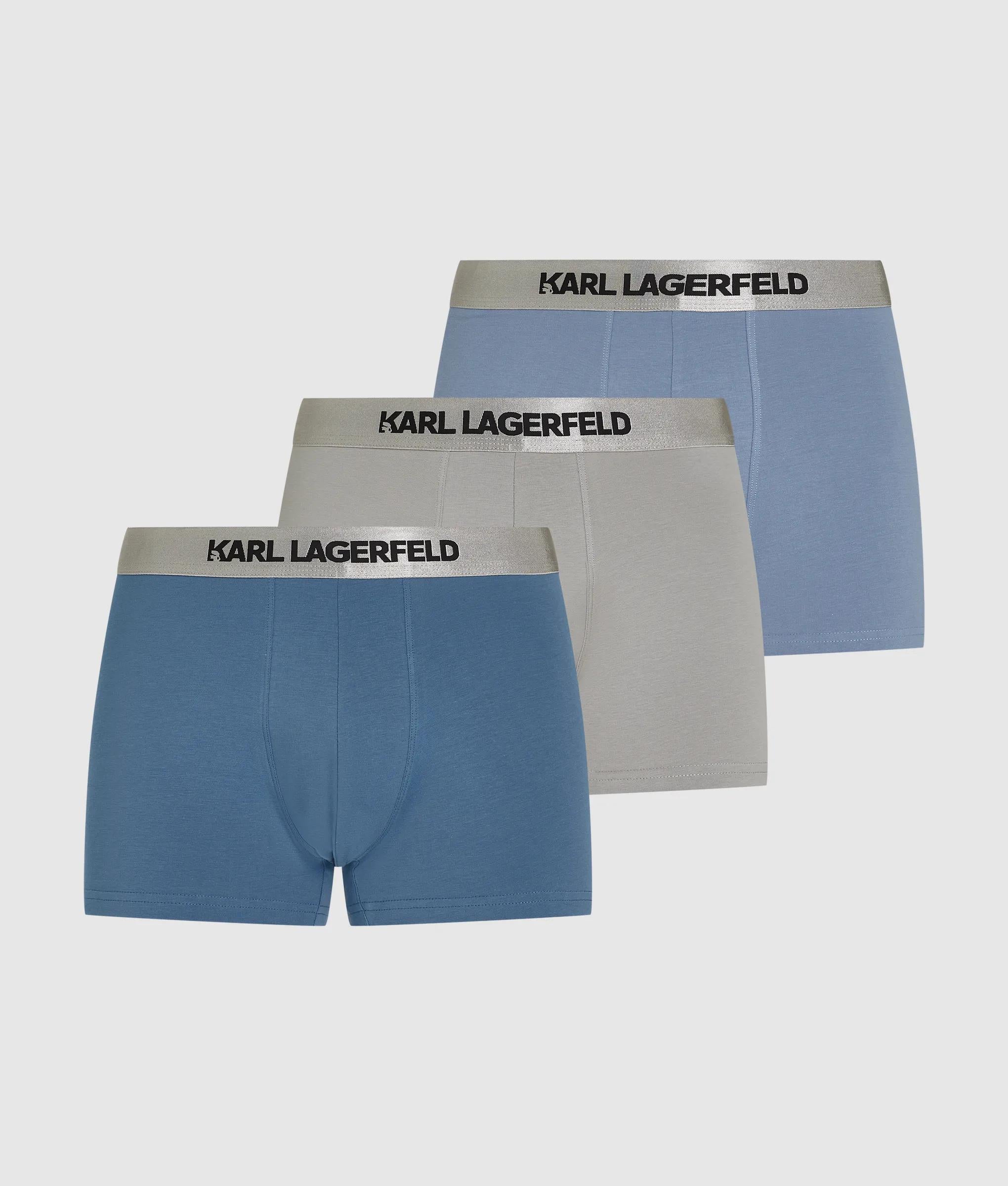 This set of three classic trunks combines comfort and style, featuring a metallic elasticated waistband adorned with the KARL LAGERFELD logo. Perfect for everyday wear, they ensure a sleek fit.