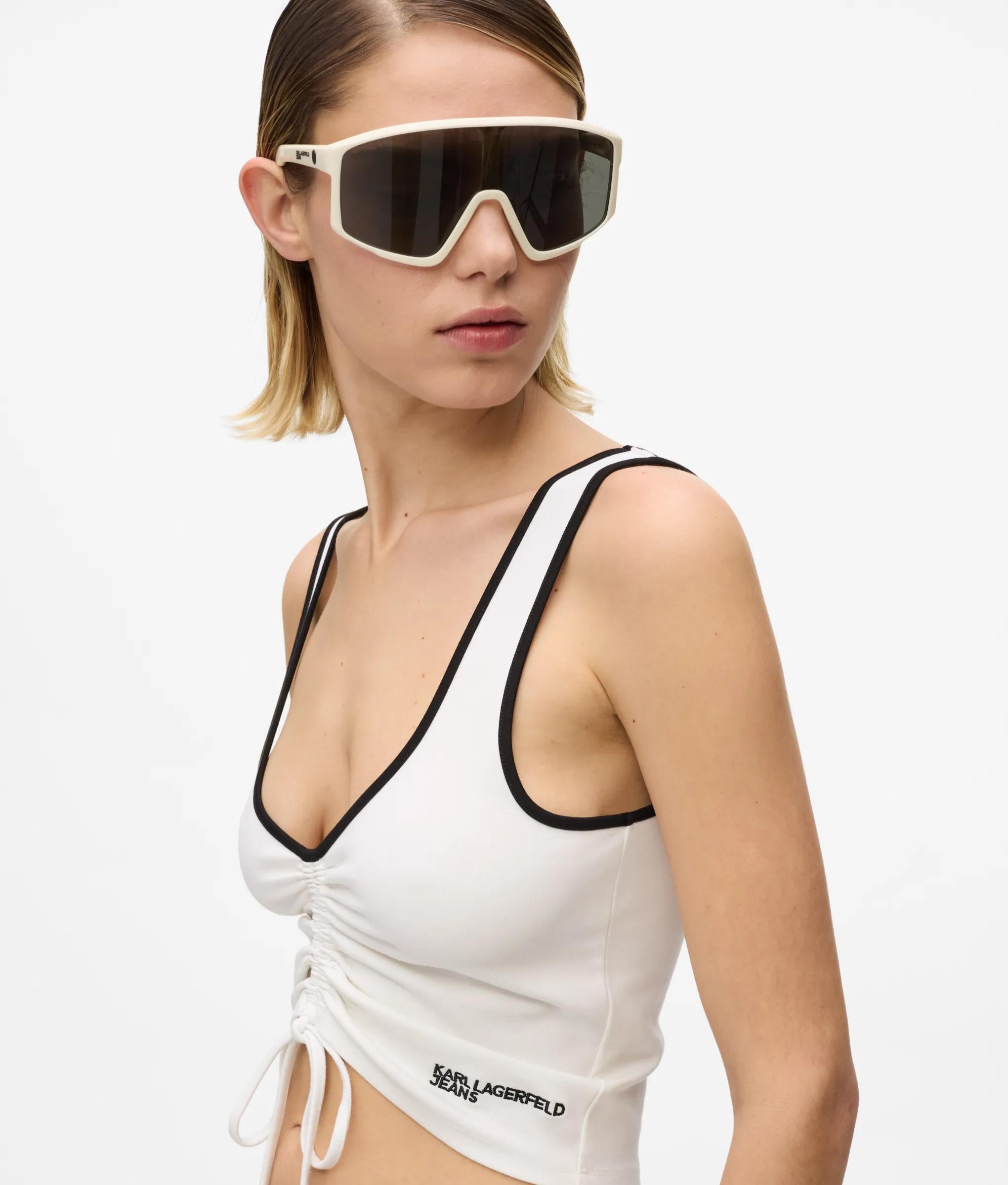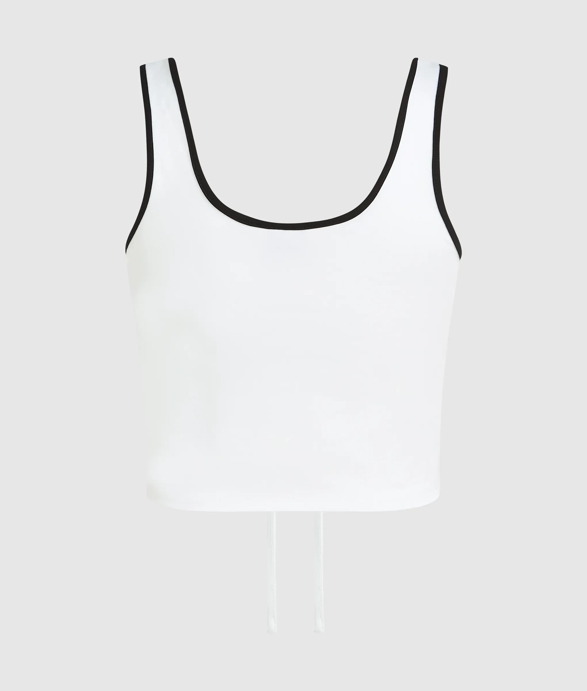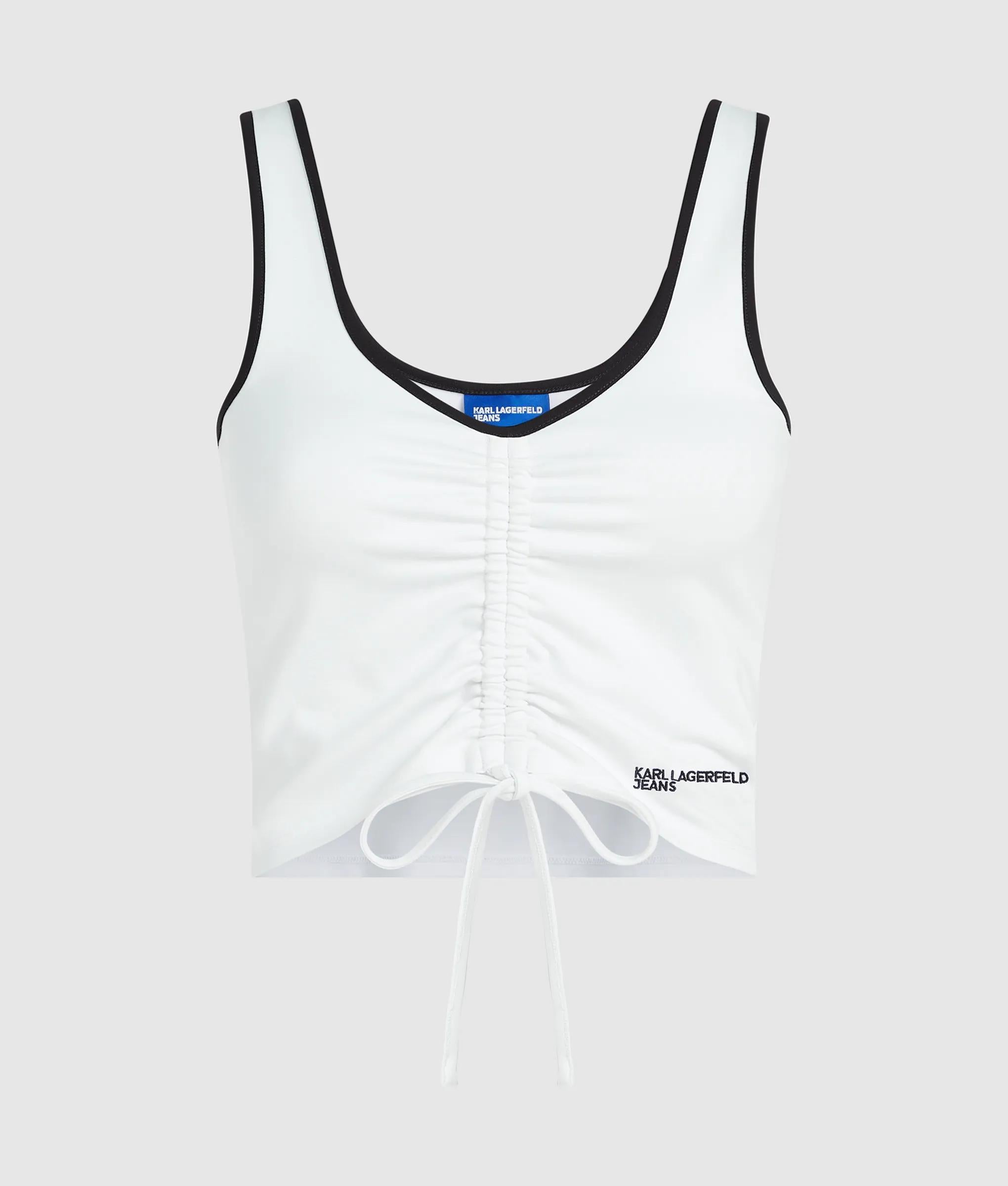 Softly ruched and cropped, this V-neck tank top blends sleek jersey with adjustable drawcords for a look that's fresh and effortless.