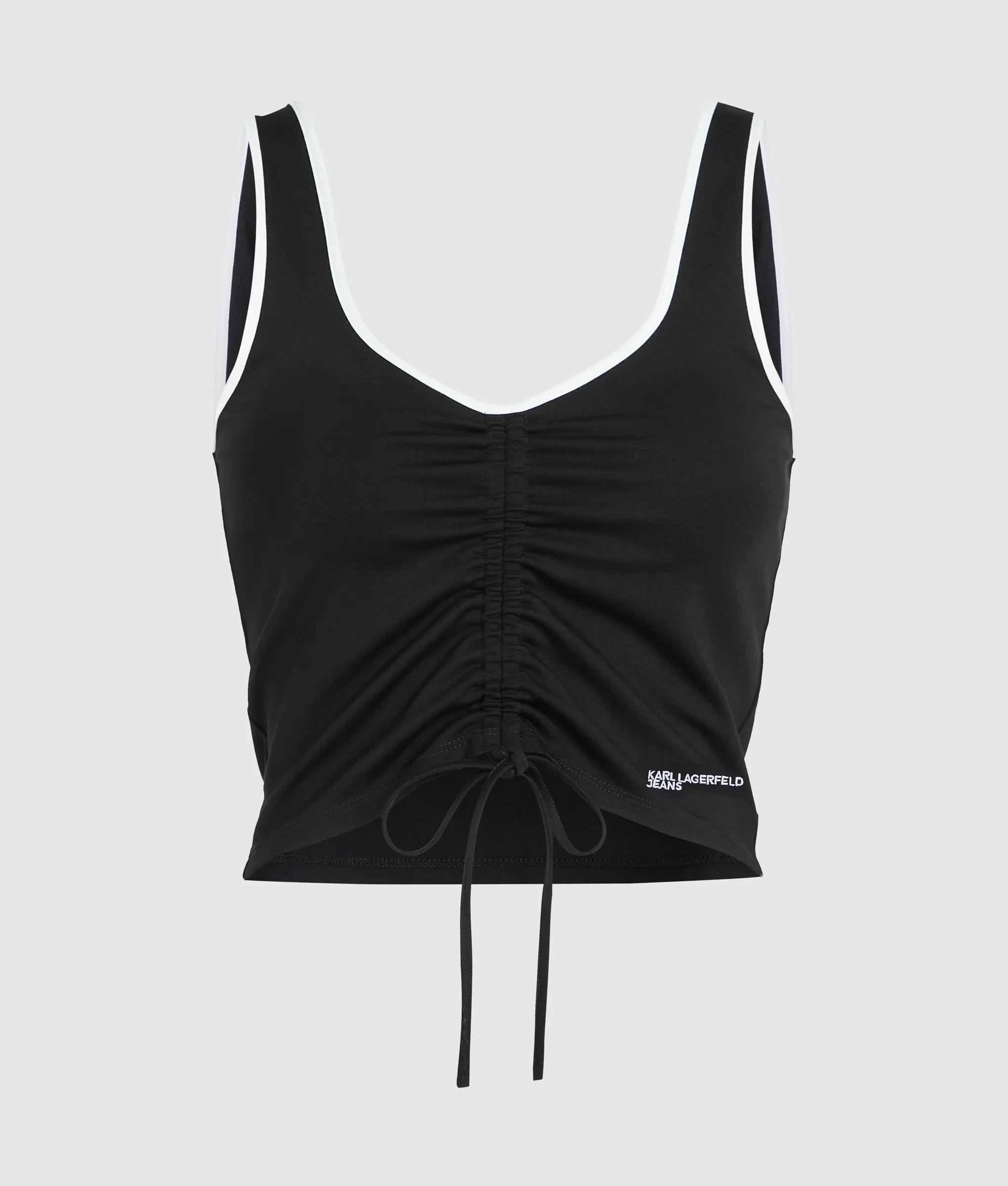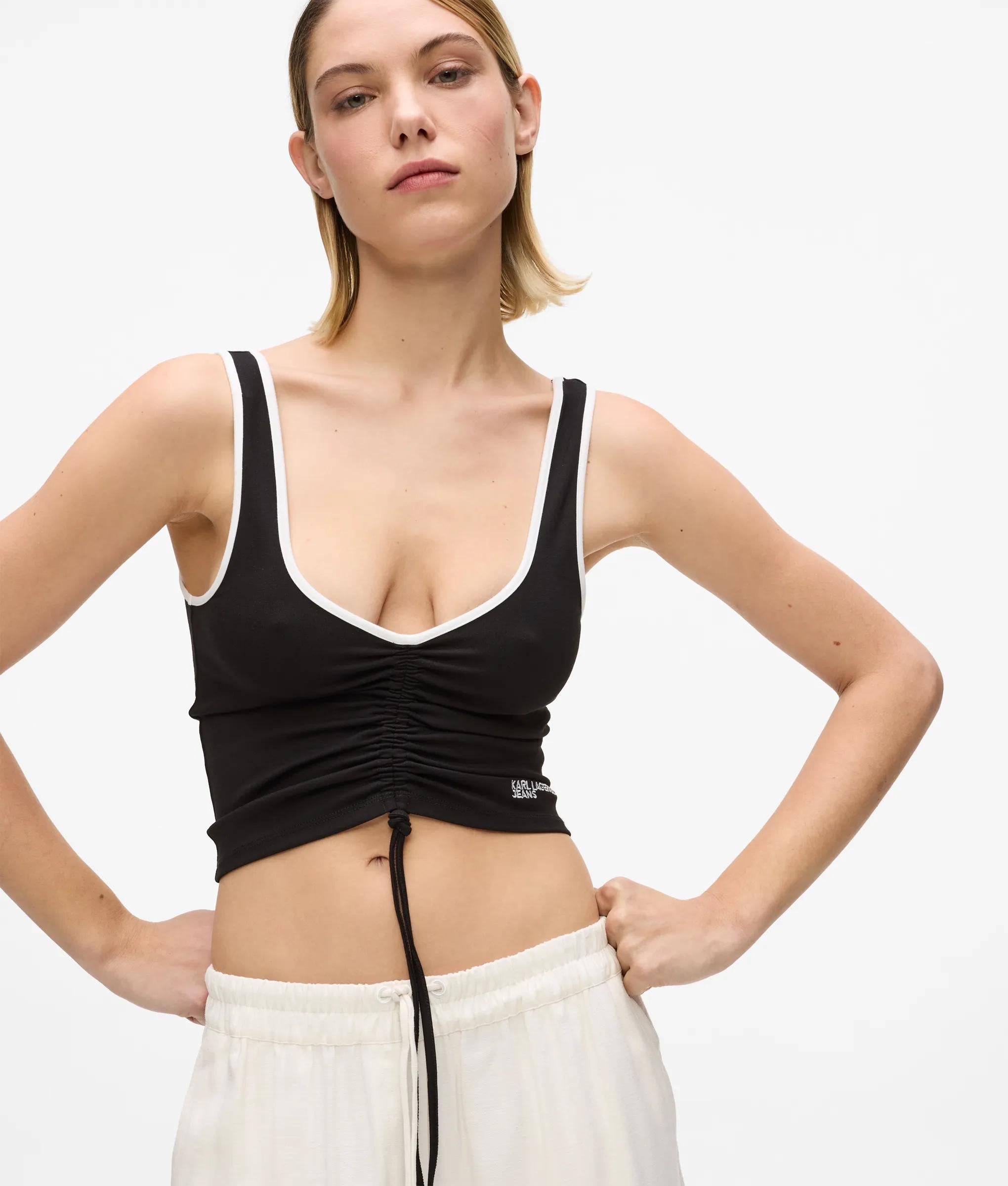 Softly ruched and cropped, this V-neck tank top blends sleek jersey with adjustable drawcords for a look that's fresh and effortless.