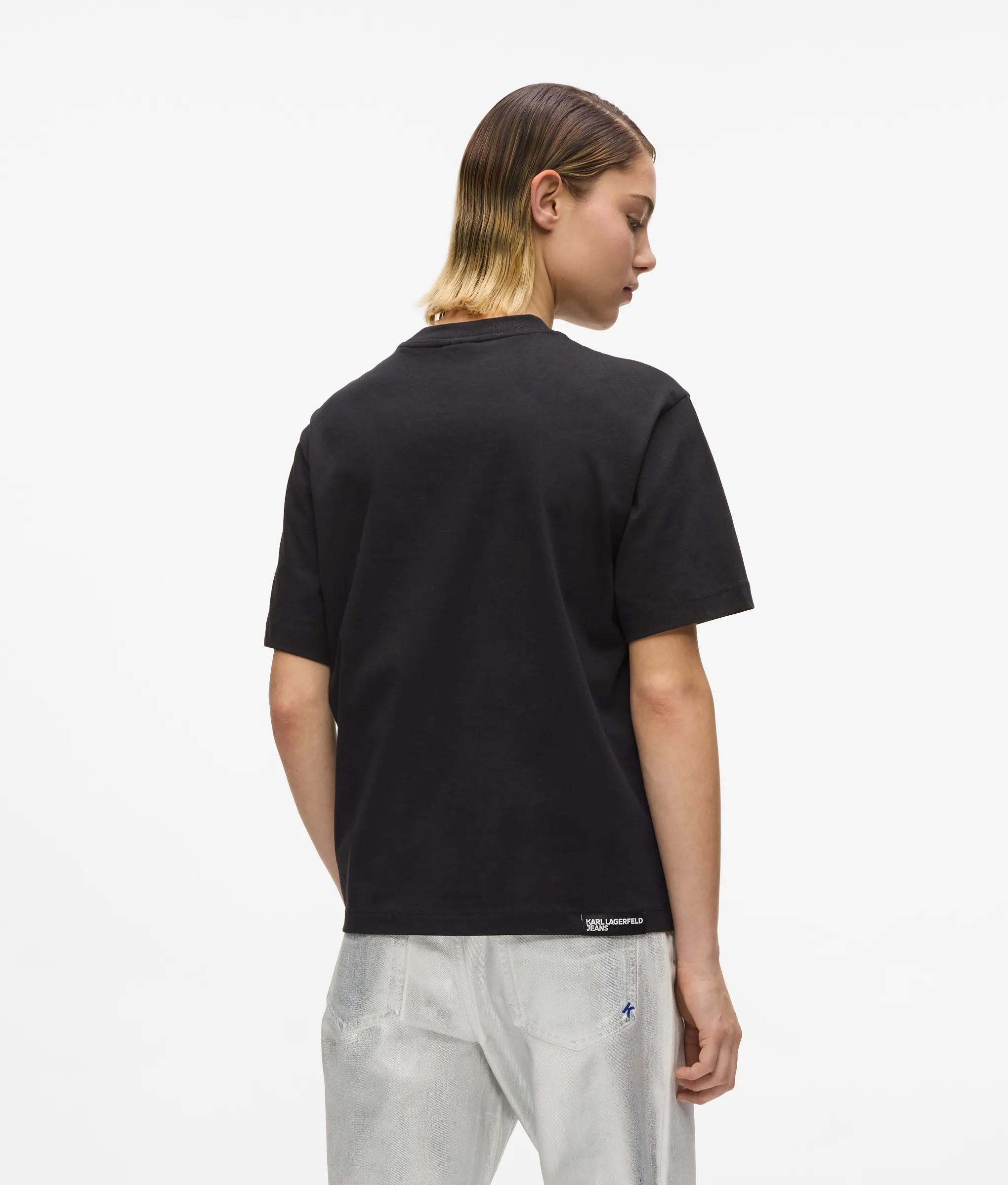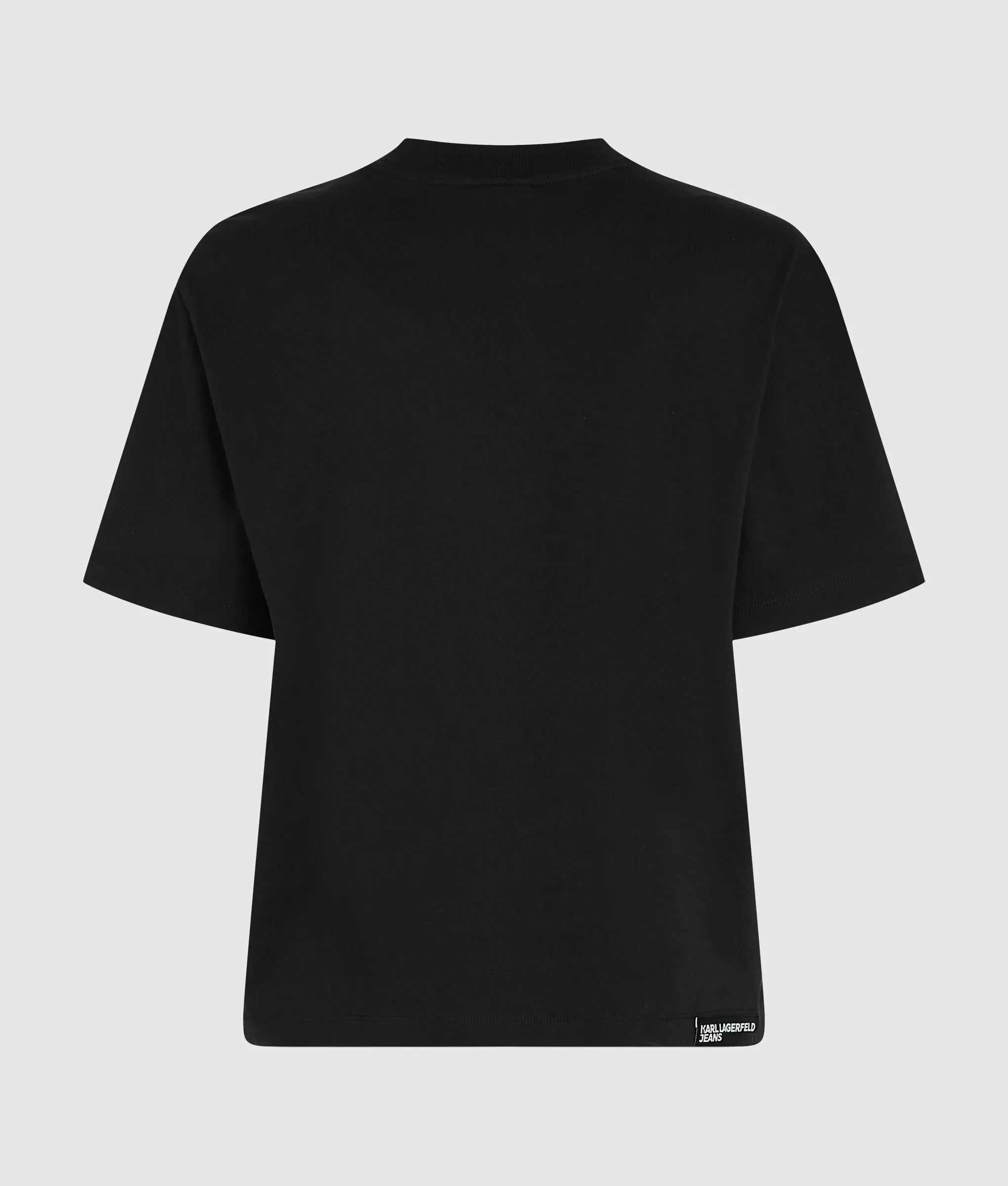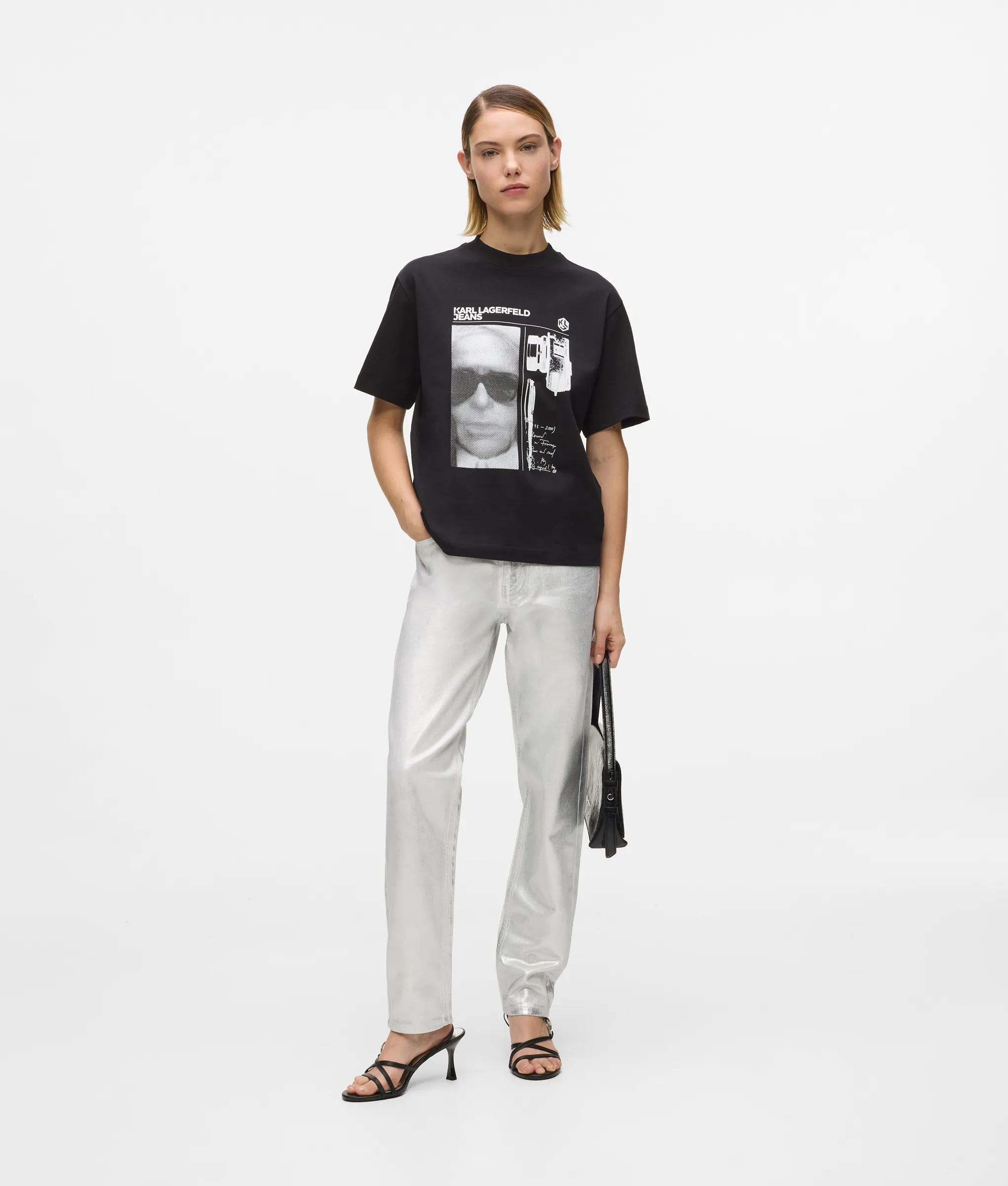 A fresh staple with iconic impact. Soft organic cotton shapes this classic crew-neck T-shirt, topped with bold artwork inspired by the legendary Karl Lagerfeld.